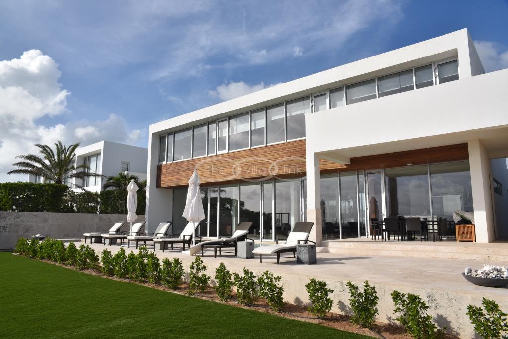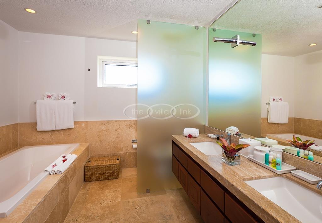 This is a private oceanfront estate exquisitely designed to embrace the captivating island surroundings. With expansive windows and stunning views of the Caribbean and mountains of St. Martin, guests experience exhilarating indoor/outdoor living. The two-story villa offers 5 bedrooms, a private pool, and a deck overlooking the shimmering Caribbean sea.