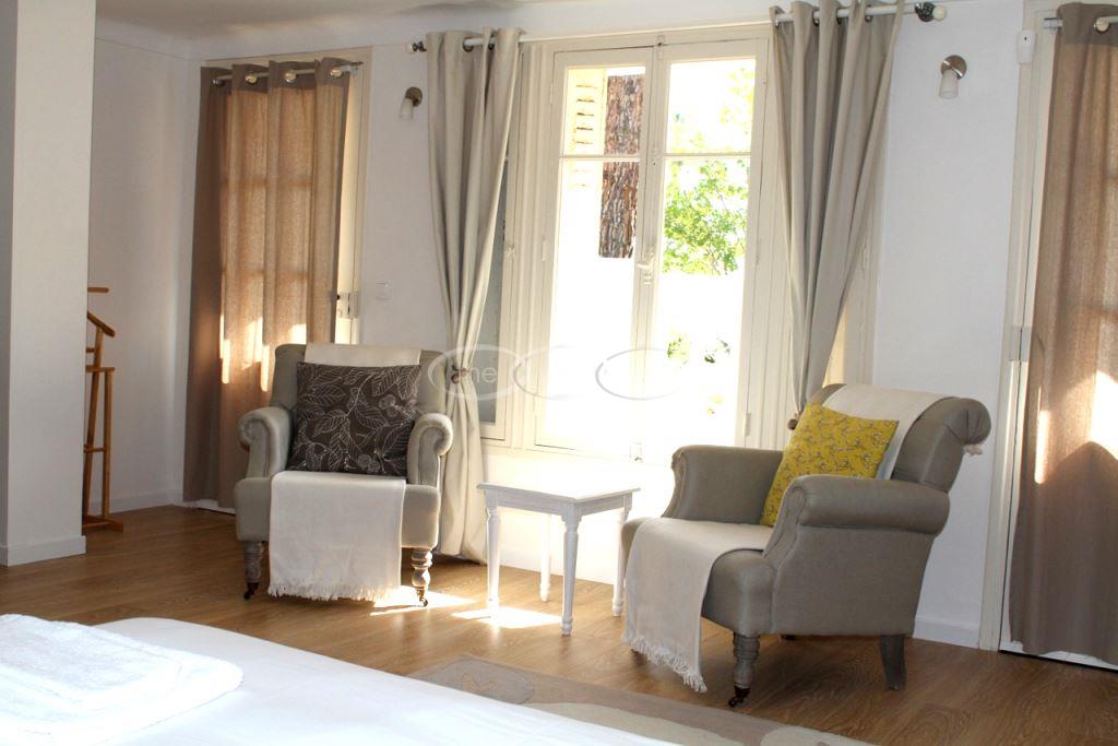 A spacious and bright living room with patio doors that leads out to the "aperitif" corner on the terrace.
