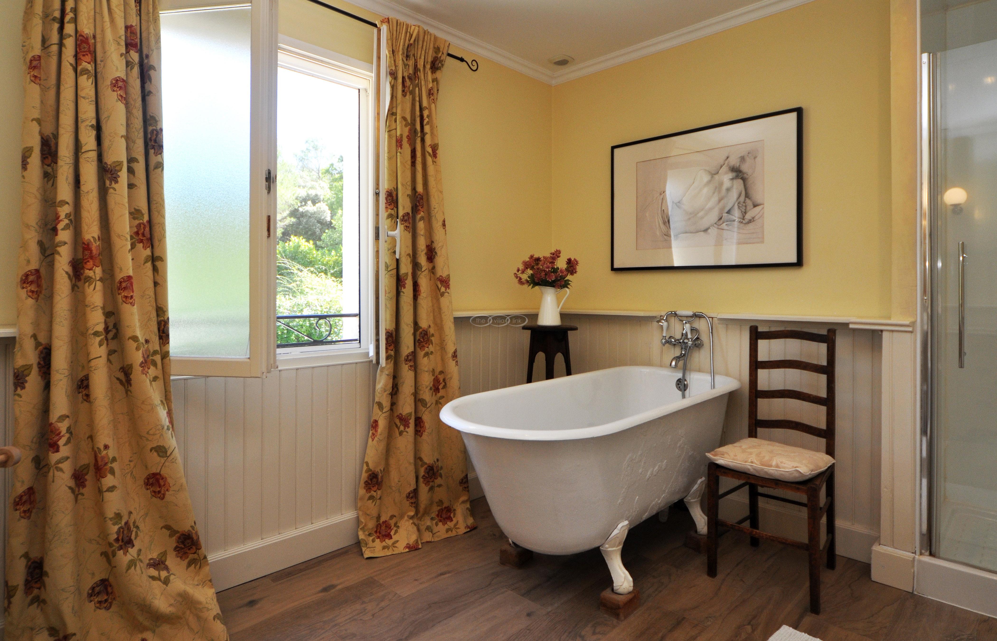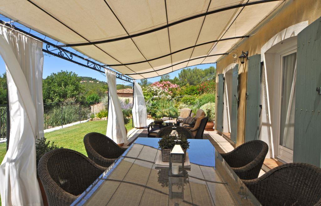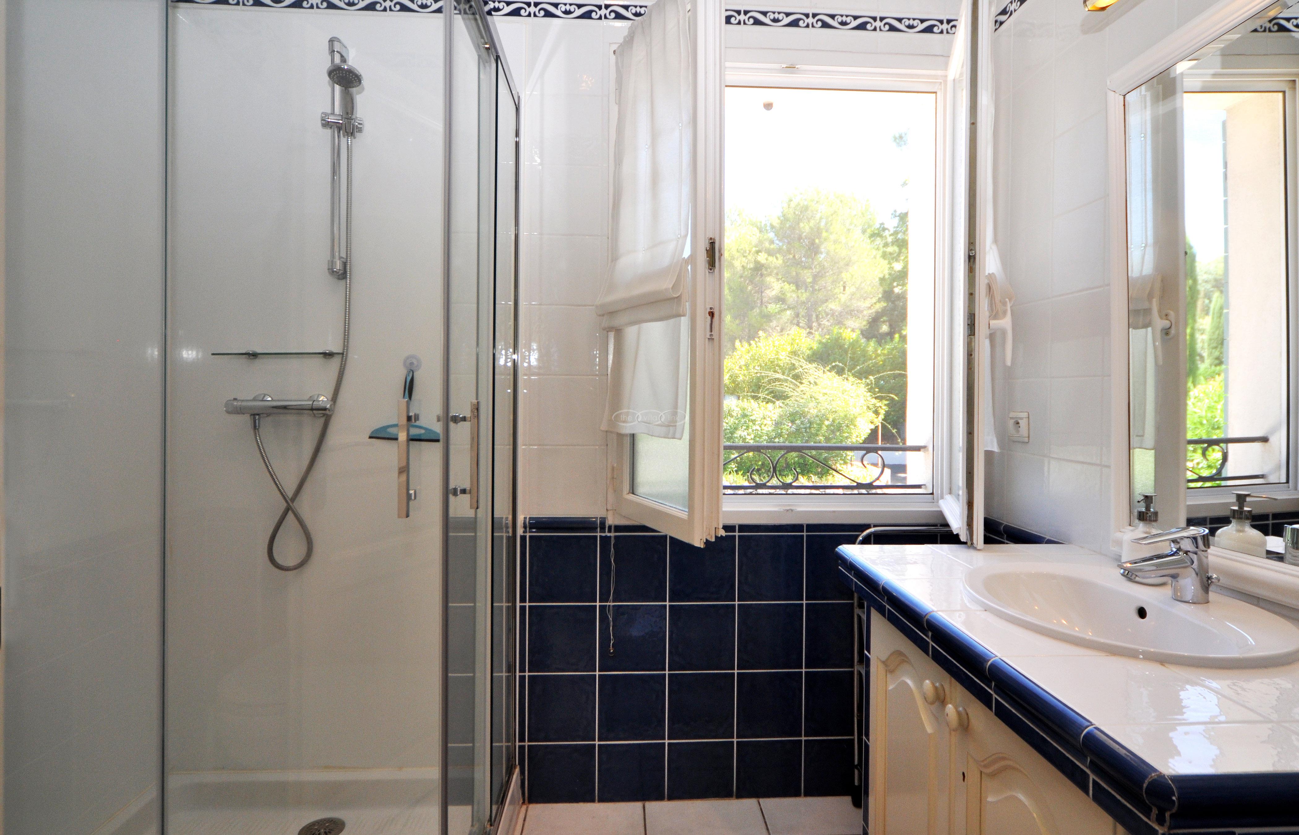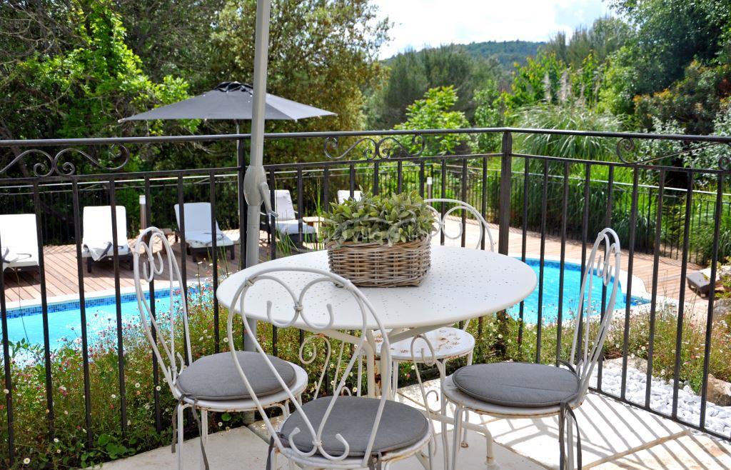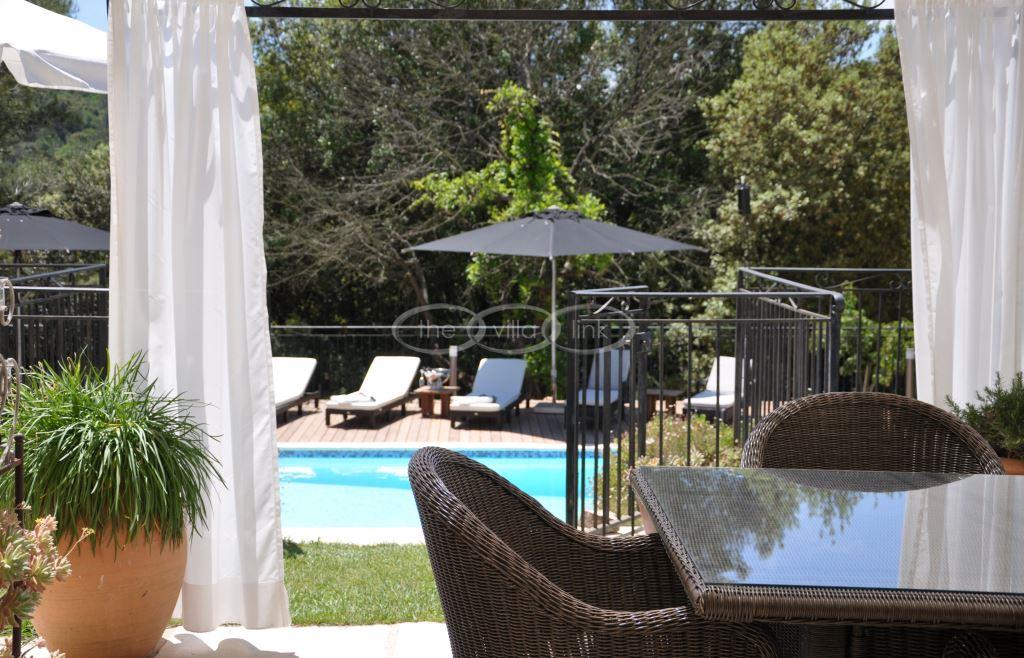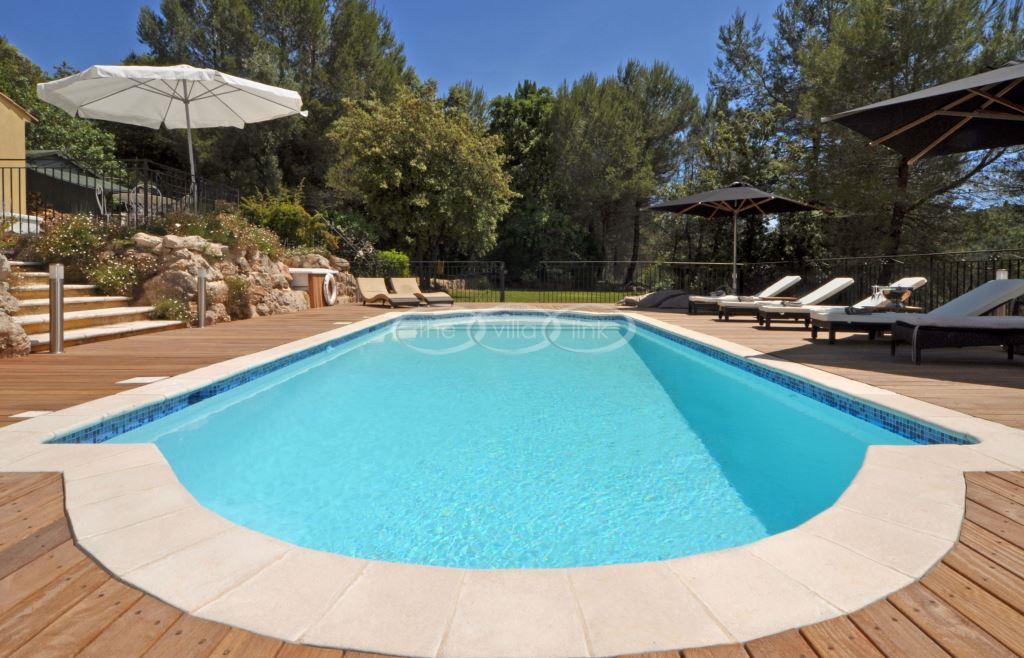 Bastide style villa sleeping 8 people set on the edge and overlooking the Parc National. Situated on a private gated domaine between the pretty villages of Biot and Valbonne just 25 mins from Nice Int. airport. The villa is ideally situated on a regular bus route taking you down to the villages of Biot and Valbonne (8mins), the beach, Biot train station and the Marineland / Antibesland entertainment parks www.marineland.fr (all 10mins). The garden is spacious with a boule pitch and fully fenced 11x4m pool with a shallow seating area at one end. Being set in the forest provides some lovely walks from the house leading down the river. This is a very child friendly home.