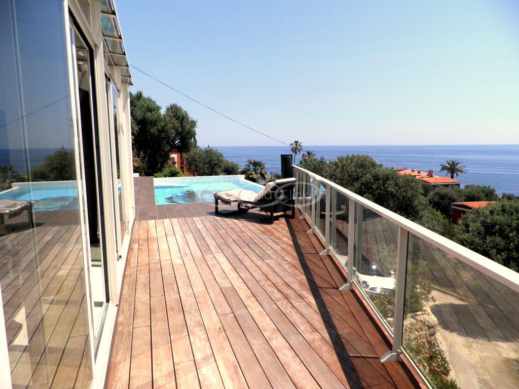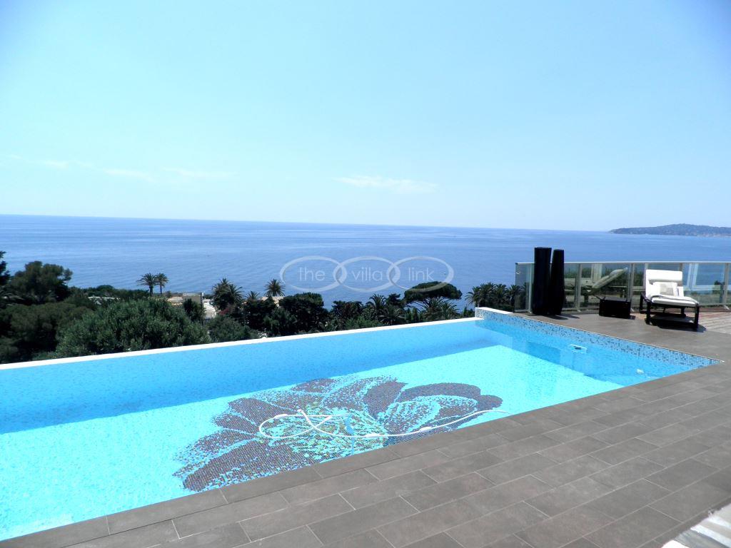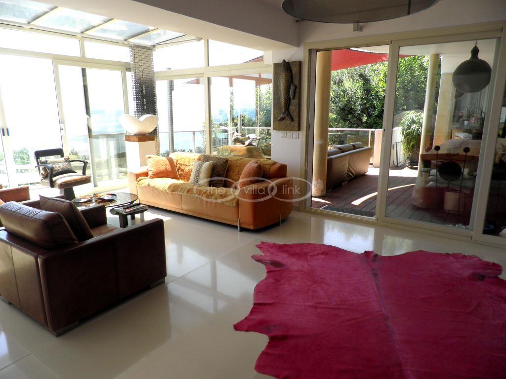 This modern villa offers absolutely amazing views over the Mediterranean. It is the perfect spot for watching the yachts going by. The interior is very modern and tasteful. The out door dining area offers a cozy area where you are bound to spend memorable hours