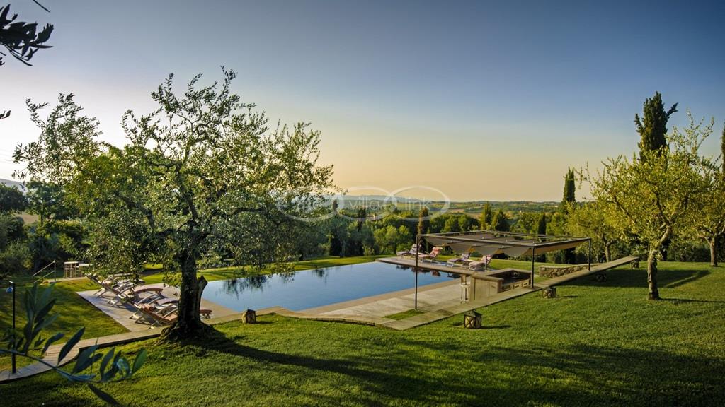 In southern Tuscany, not far from Montepulciano, this corner of paradise is located on a 4 kilometers distance from Piazze and 7 kilometers from Cetona. The villa offers a panoramic view of 360 ° from the Val di Chiana to the Cetona mountain. The highlight of this haven of peace is the pool deck that allows you to embrace the entire landscape, the most beautiful and typical panorama that Tuscany can offer.