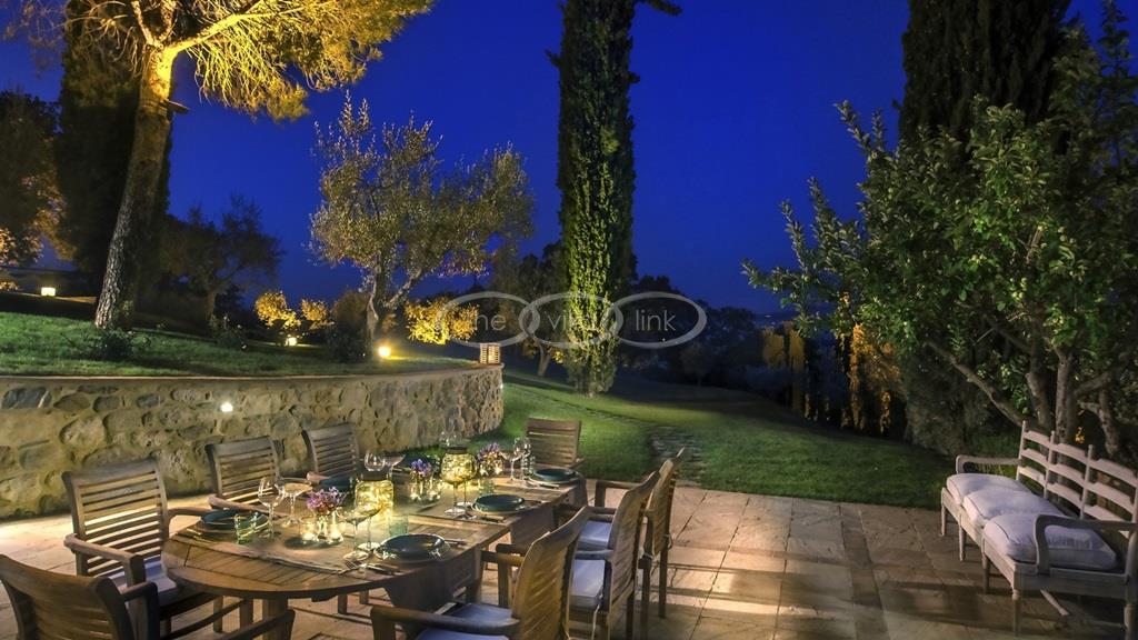 The villa is isolated and surrounded by 3 hectares of olive groves and a large garden enriched by cypresses, pines and lush green lawns. This all creates a well-designed ‘lighting from the dark’ and a vivid, bright feeling. The villa is set like a jewel in this incomparable setting.