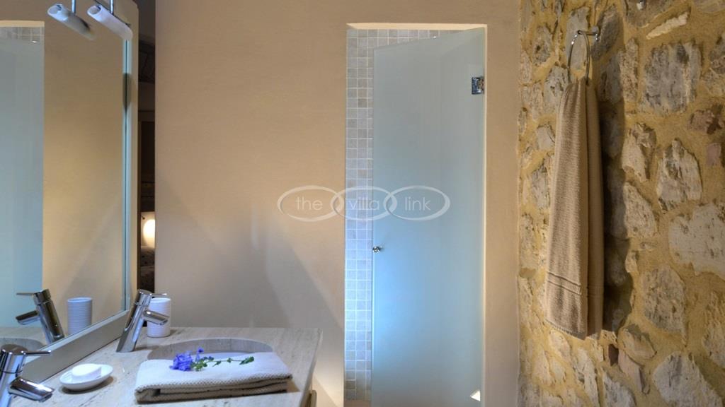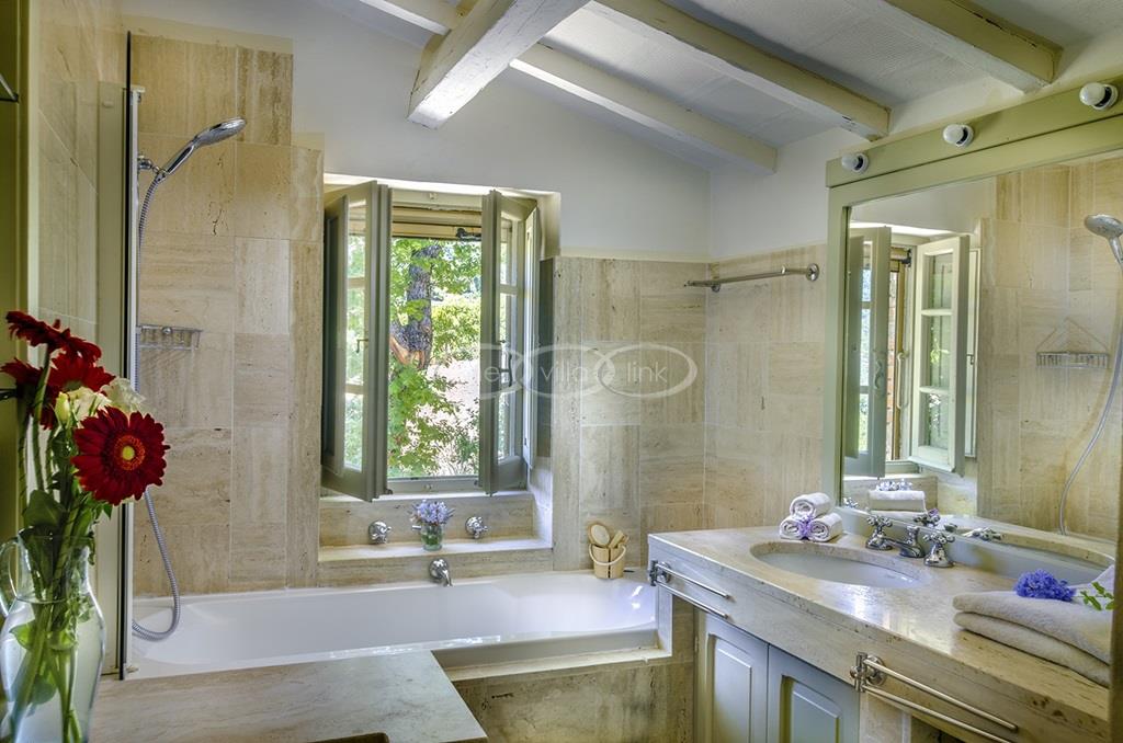 There are five double bedrooms that can be converted into double or twin bedrooms. The villa offers four bathrooms, two with bath tub and shower and two equipped with a shower. In addition to this, there are two kitchens, of which one large kitchen with professional equipment on the ground floor, offering space to dine in and outdoors on the adjoining terrace. The second kitchen, fully equipped is situated on the first floor, it overlooks another dining room and has doors opening to a terrace with view where you could have your breakfast. On both floors you'll find a complete dinnerware. There is a third terrace, overlooking the lighted garden, which adjoins the master bedroom. All terraces, at night, have an amazing view of the most beautiful trees in the garden.