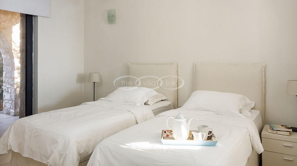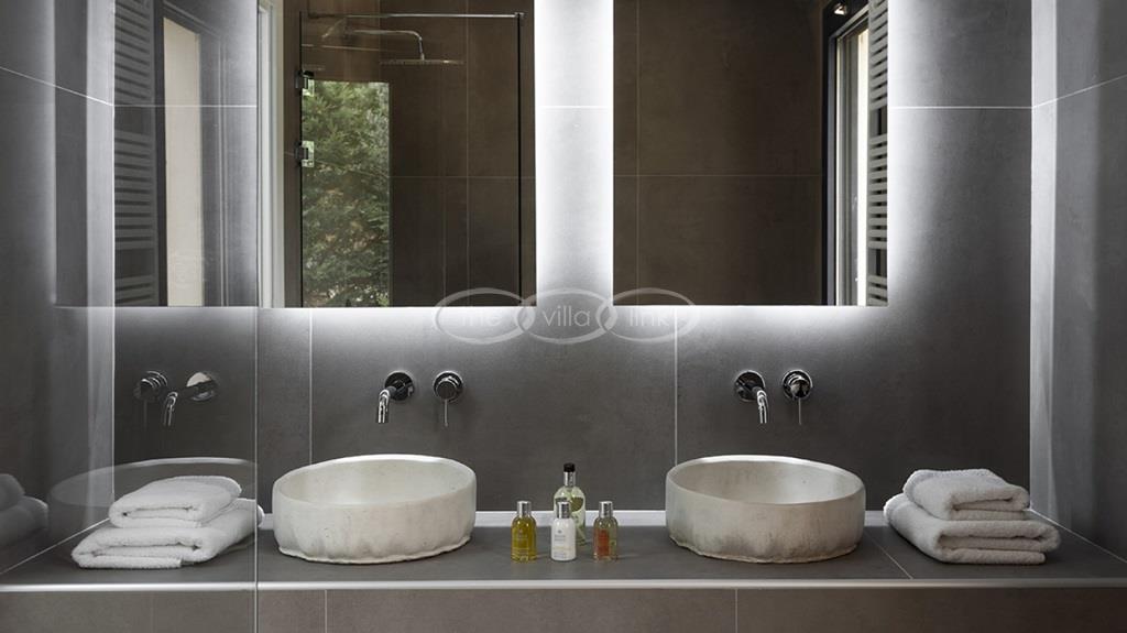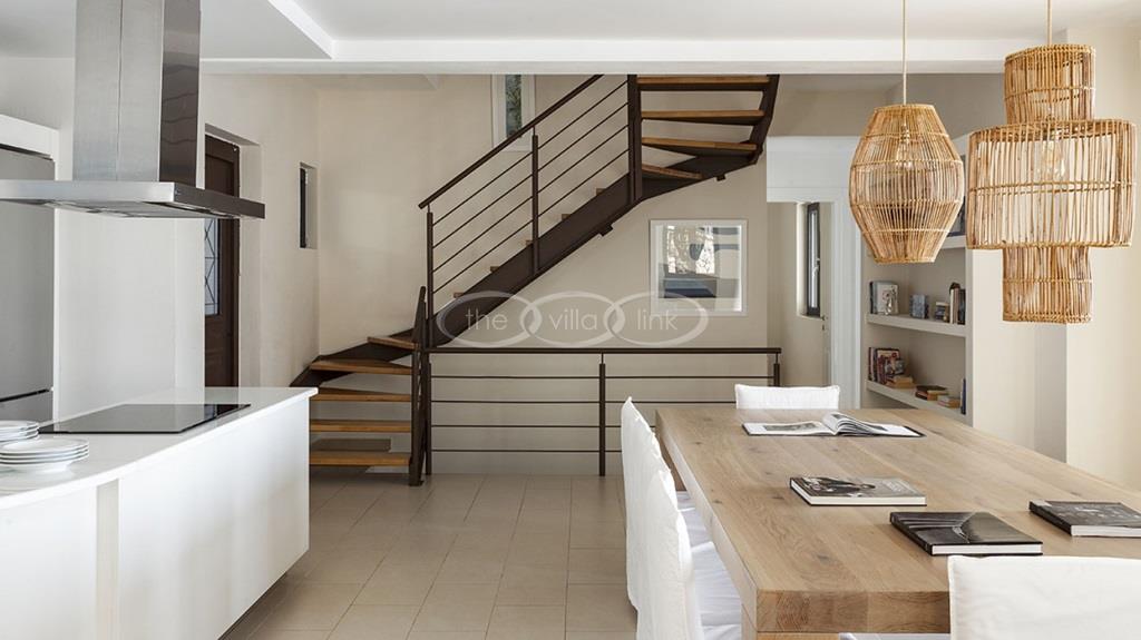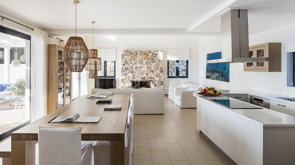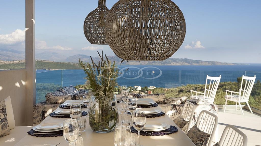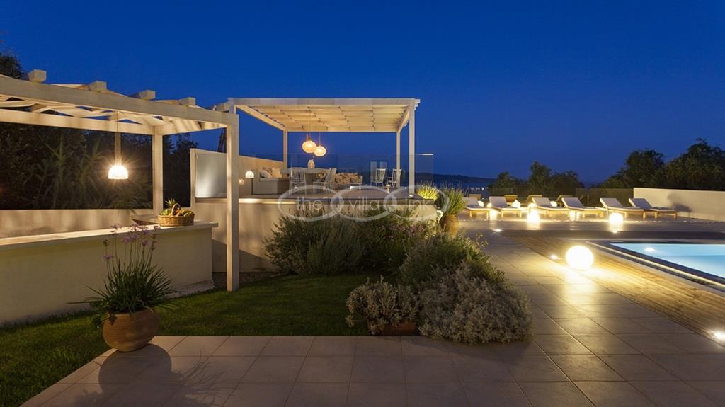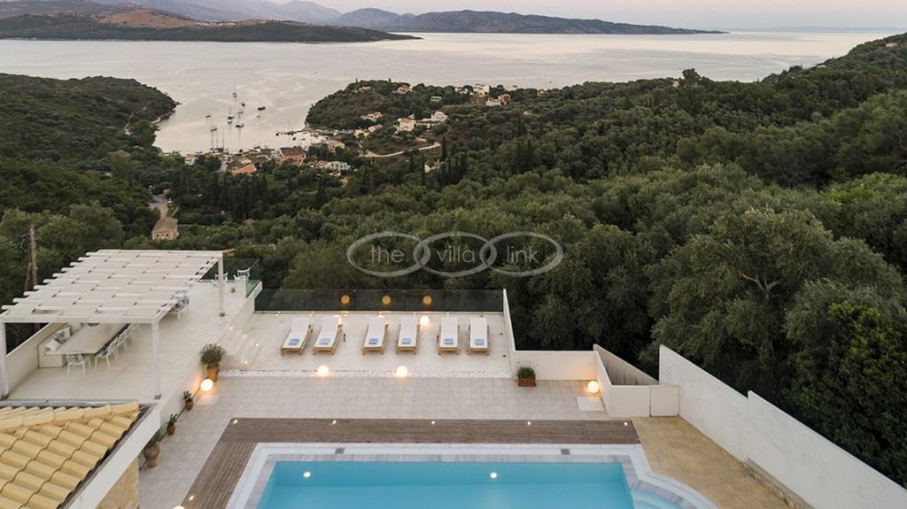 Situated on top of the hillsides of the bay of Agios Stephanos and enjoying stunning views on the Ionian Sea, this new and nicely decorated villa welcomes comfortably up to 8 guests with hotel services and a chef. The main level comprise a large living room with fireplace, dining area and a fully equipped kitchen opening onto the exterior terrace and the sea, one double bedroom wih bath and one twin bedroom with bath. The master bedroom with bath, one double bedroom with bath and one twin bedroom with bath are situated on the upper level. The sixth bedroom and a gym are arranged on the lower level; Nice pool with teak covered terraces arranged with sunbeds and alfresco dining with barbecue facing the sea; Air-conditioning in every bedroom; Short drive to white sand beaches; Complementary services on demand; Possibilities of charter yachts as day charter or combined package; Rental from April to November;