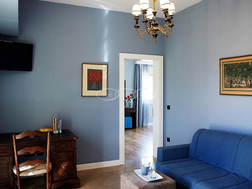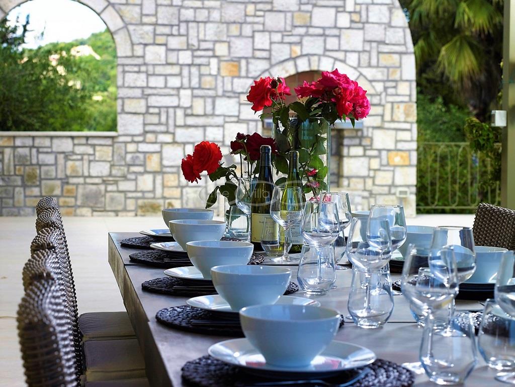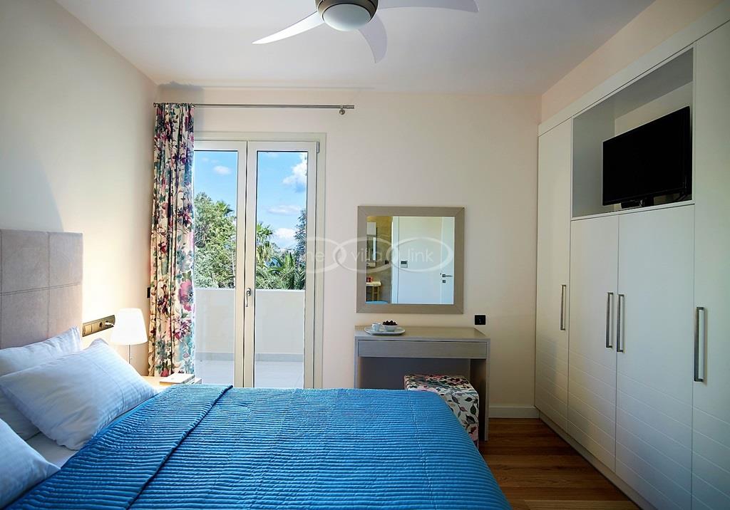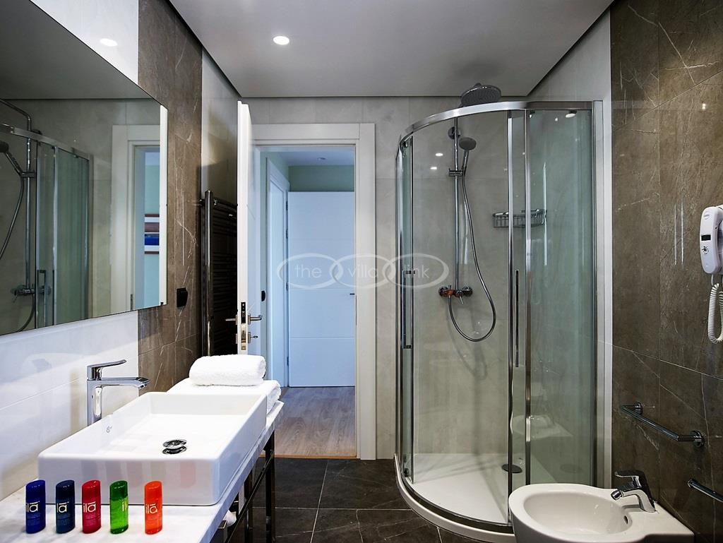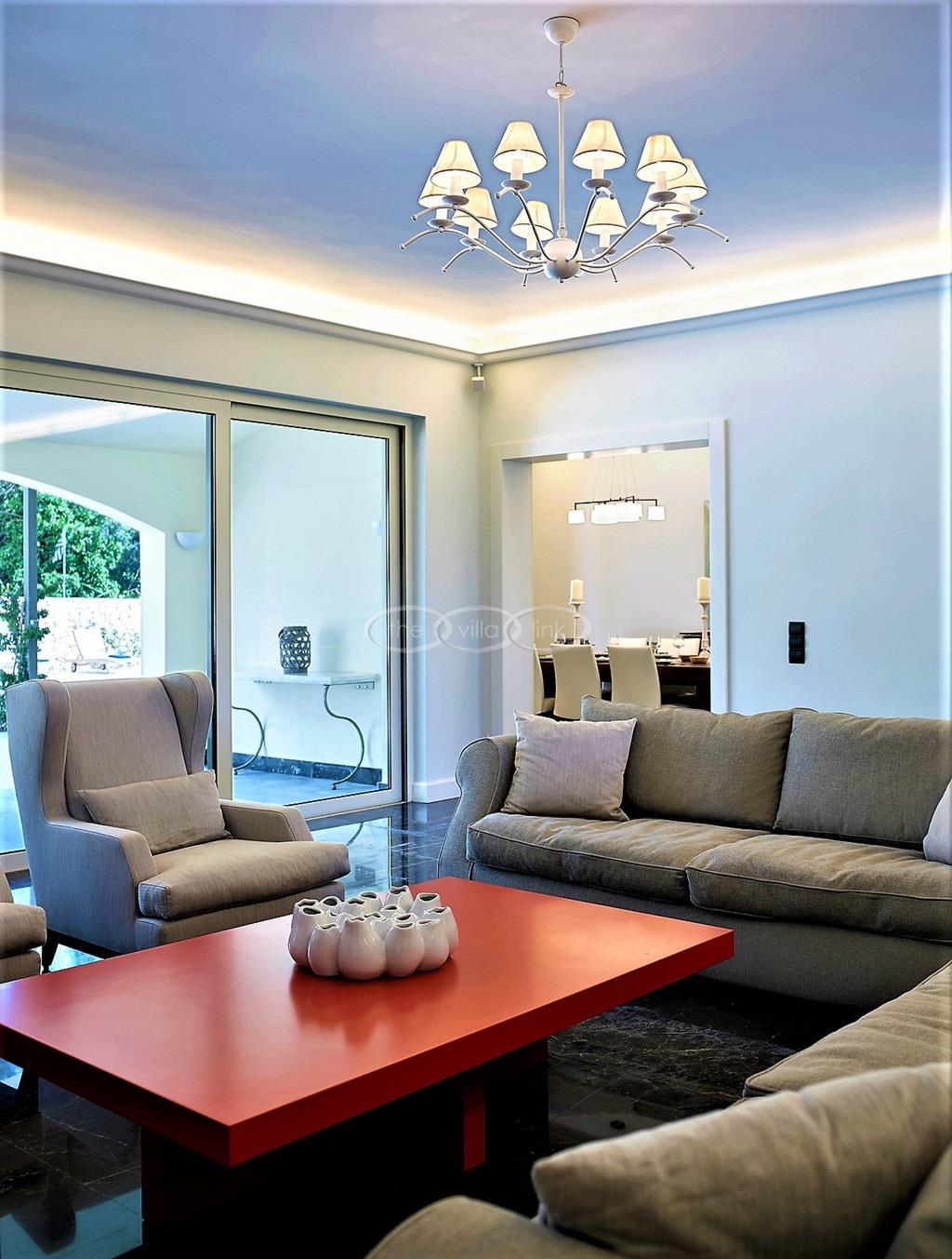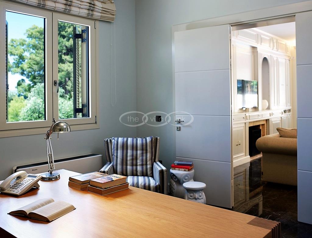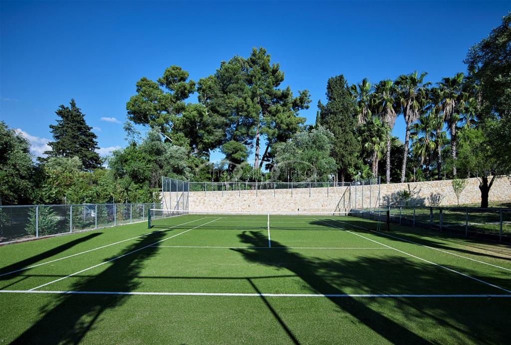 Within walking distance to the beach, the village and marina of Gouvio, this contemporary villa with swimming pool and private tennis court welcomes comfortably up to 12 guests. It is composed, on the main level, of a saloon, a dining room, an office, an independent fully equipped modern kitchen, and an independent apartment with double bedroom, bathroom and living room with kitchenette. On the upper level are set the master bedroom with bathroom and sitting area, and 2 double bedrooms, each with en-suite bathroom. On the garden level are set 2 double bedrooms, each with en-suite bathroom and a spa area with gym, massage room, sauna and hamamm. Air-conditioning throughout and TV in the bedrooms;