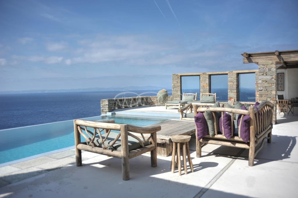 Situated on the waterfront in a residential area close to the port of Korassia, this recent and contemporary villa with infinity pool and panoramic sea views welcomes comfortably up to 10 guests. With an interior style using natural materials, the villa comprise, on the main level, a living room with saloon, dining room and opened kitchen opening onto the exterior terraces and the pool. The upper level is set with the master bedroom with en-suite bathroom and private terrace, whilst the lower level comprise 4 double bedrooms with ensuite bathroom; Air-conditioning in the bedrooms;