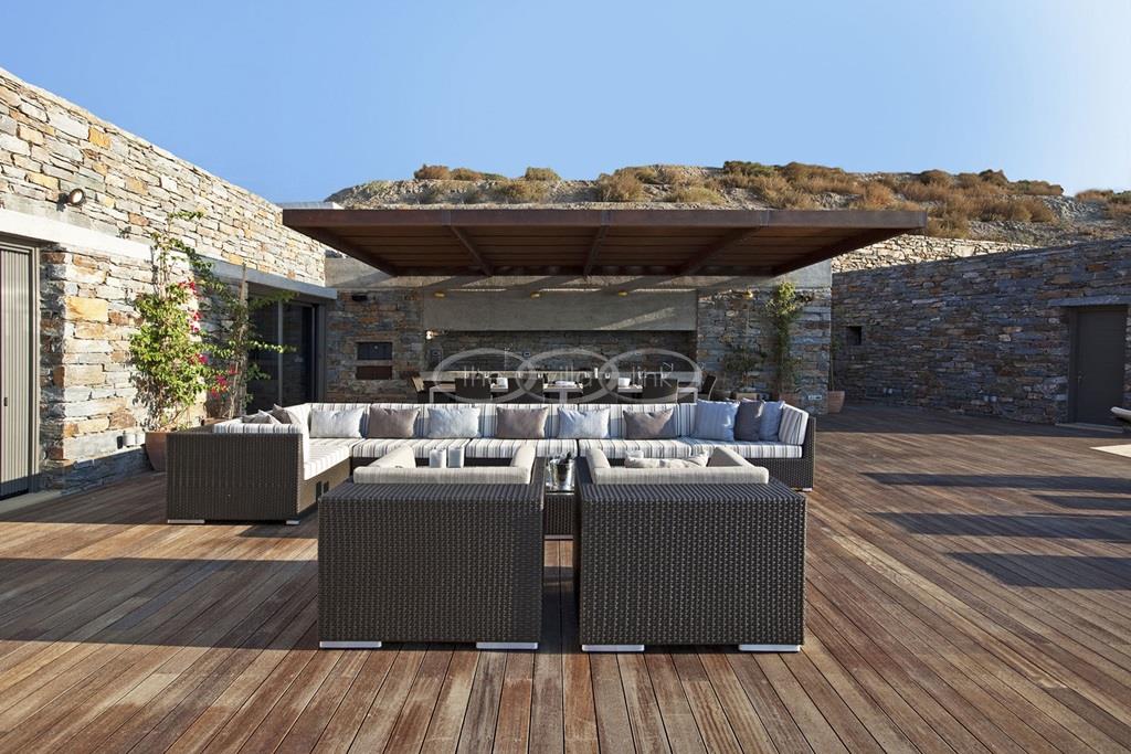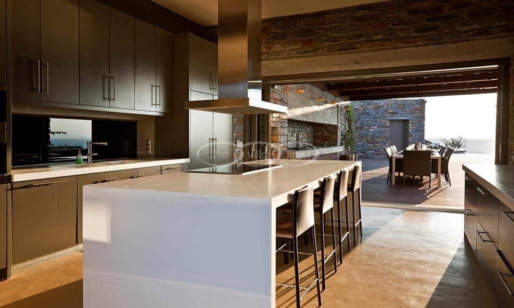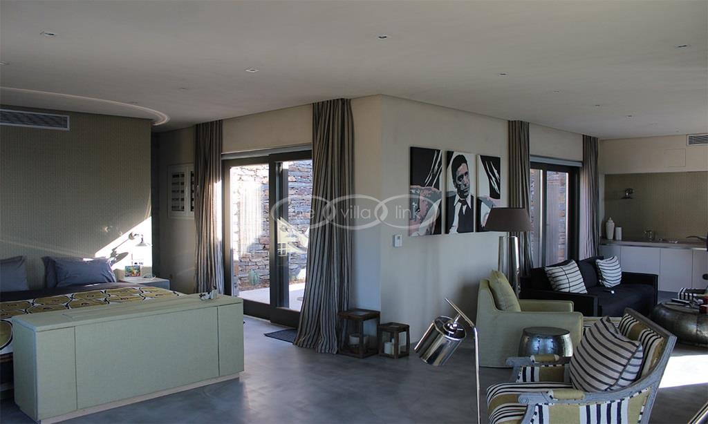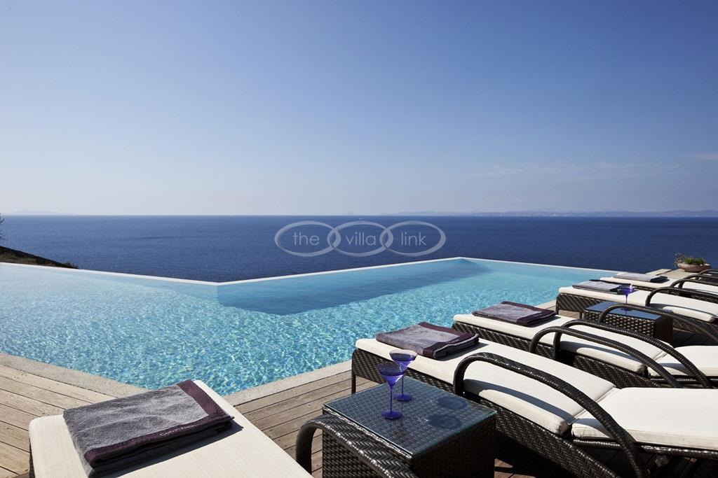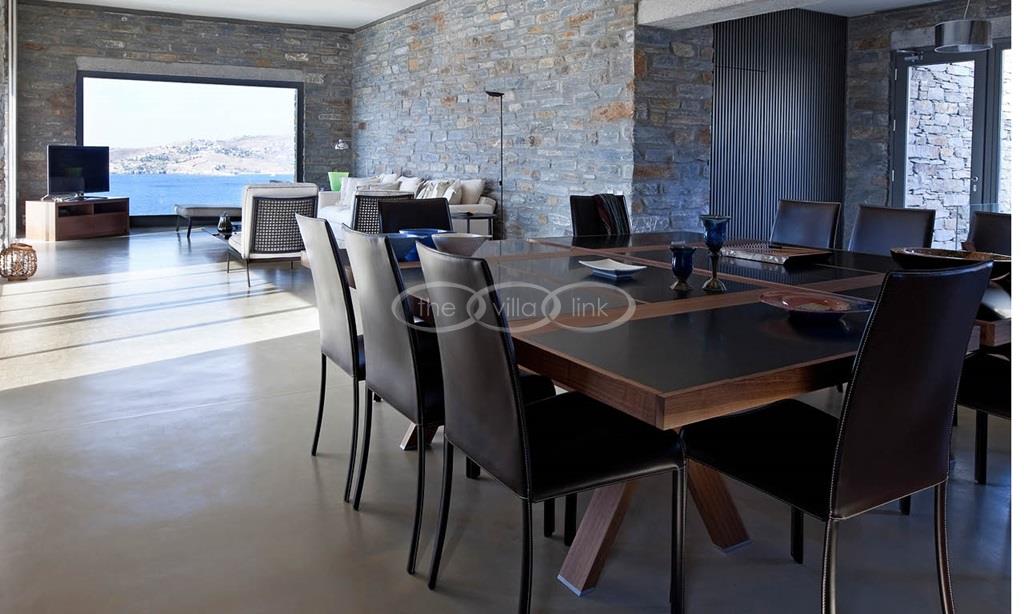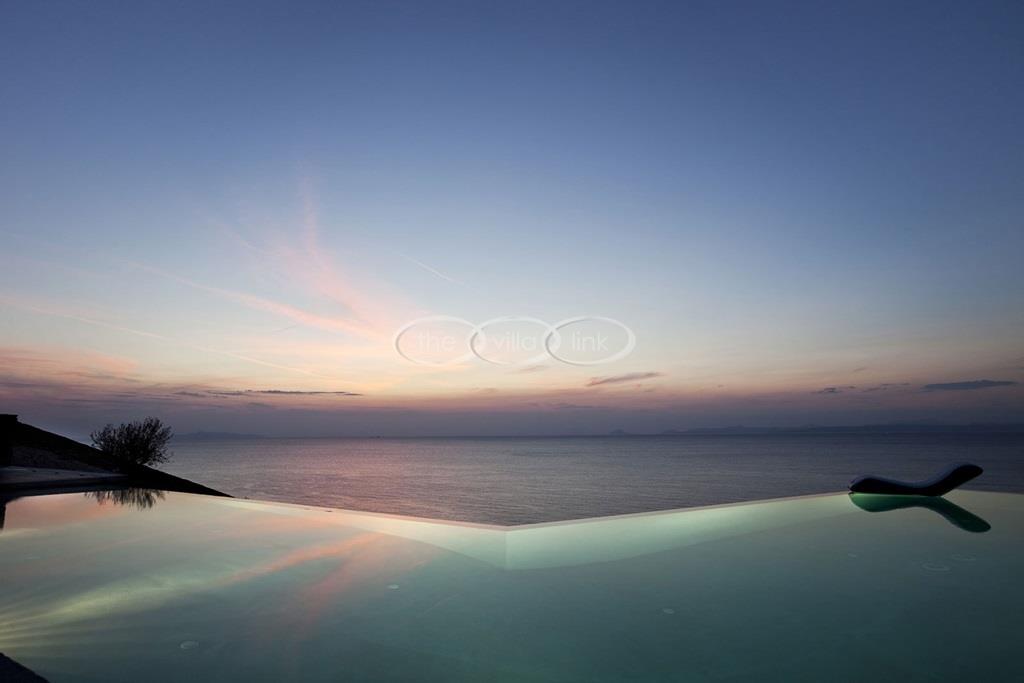 Situated on the waterfront of the island of Kea and walking distance to a beach, this luxury villa of contemporary style with infinity pool, tennis and panoramic sea view welcomes comfortably up to 12/14 guests. With a luxury contemporary decoration, the villa comprise on the main level of a living room with saloon, dining and a fully equipped kitchen separated by a glass wall, all opening onto a vast furnished terrace and the pool and a double bedroom with en-suite bathroom. On the lower level are set 2 double bedrooms with ensuite bathroom, a twin bedroom with ensuite bathroom and a bedroom with 2 bunk beds and bathroom; The guest house comprise a double bedroom with bathroom and a saloon with 2 built-in sofas. Sauna and jacuzzi; Air-conditioning throughout; Luxury service level and personnel on demand; Rental all year long;