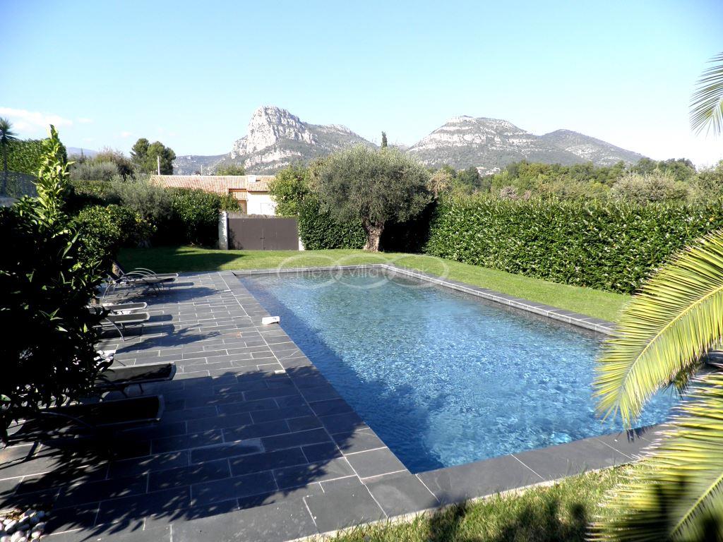 A lovely architect designed villa that has been totally refurbished inside. It's very modern and and located in a quiet residential area. This villa is very airy and offers lovely views over the valley and the mountains behind it