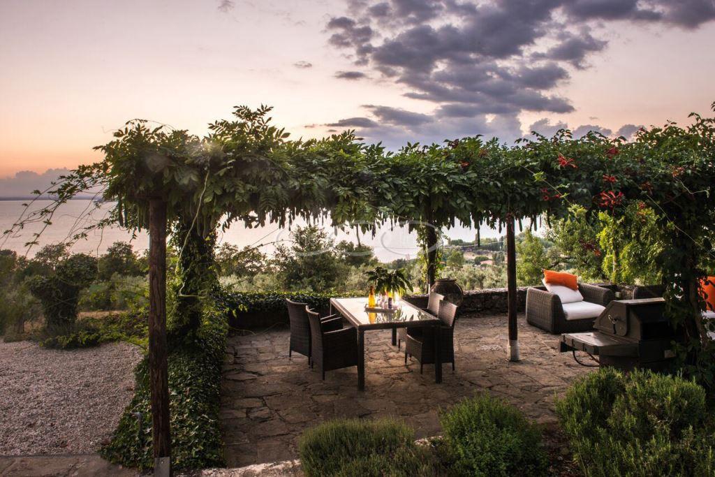 You have direct access from the kitchen to the outdoor dining area covered pergola. The pergola, furnished with table, couches and BBQ, is one of the most enjoyable areas of the villa, where you can enjoy an aperitif and the amazing sunset over the lake. The pool is just a few meters from the villa.