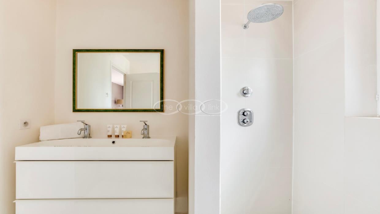 Two en-suite and one adjoining bathroom. Two with showers and one with a bathtub.