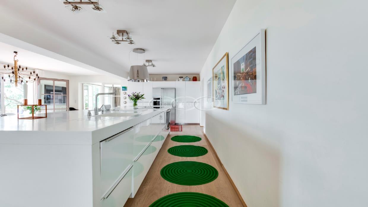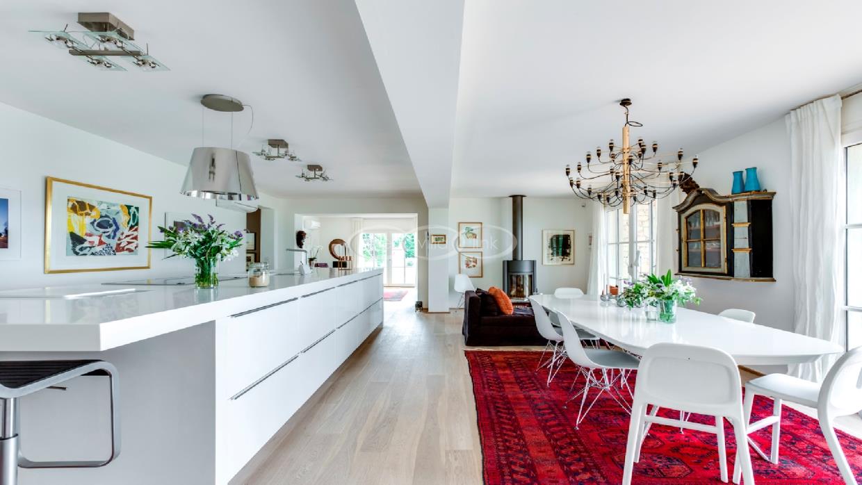 In open plan with the dining and living areas. It is modern and fully equipped.