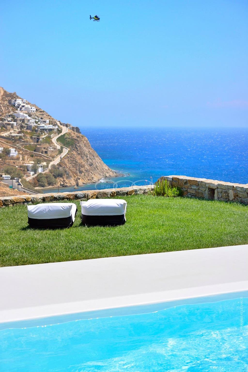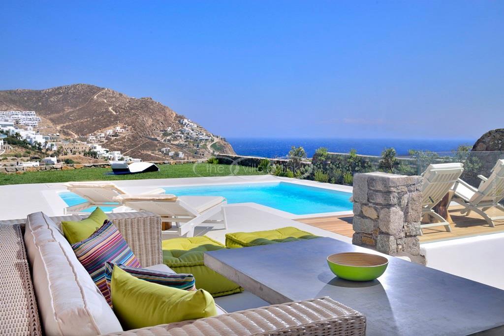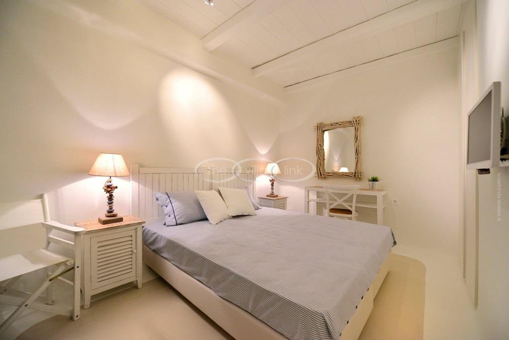 In a complex of 3 villas on the heights of Elia beach and 10km to the village of Mykonos, this luxury villa with swimming pool and contemporary interiors welcomes comfortably up to 4 guests. It is composed, on the main level of a saloon, dining room and fully equipped kitchen, all opening onto the exterior terrace and the pool facing the sea. On the upper level are set 2 double bedrooms, each with en-suite bathroom. Air-conditioning throughout;