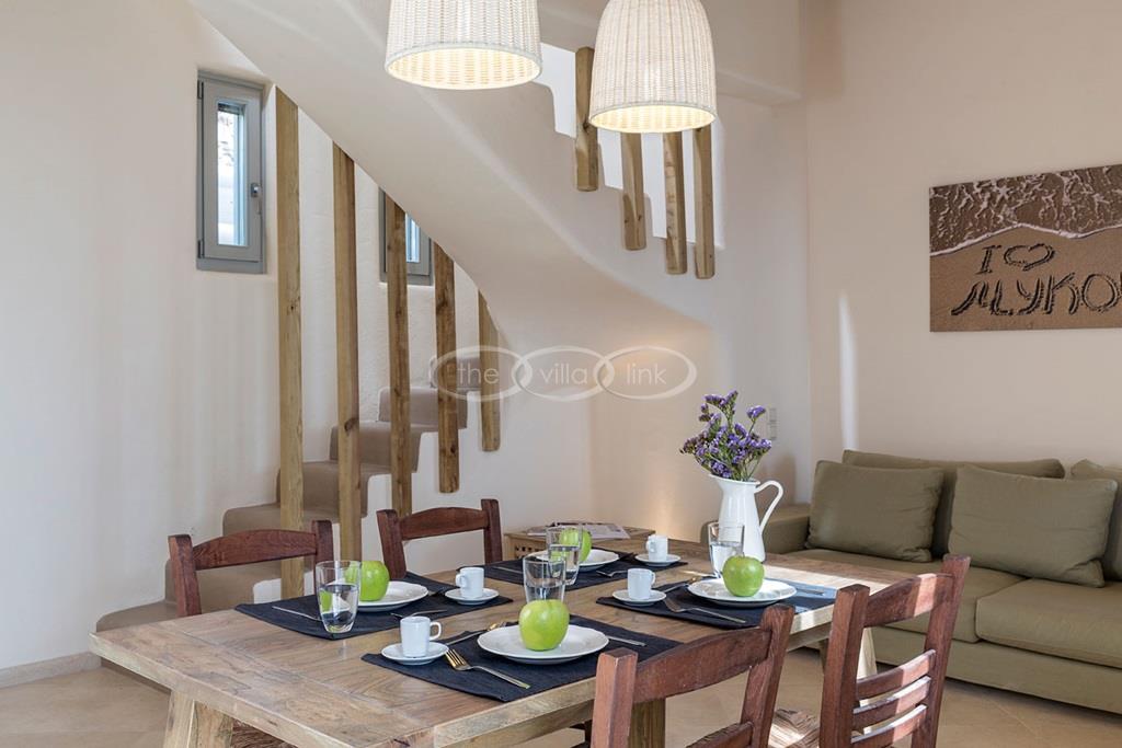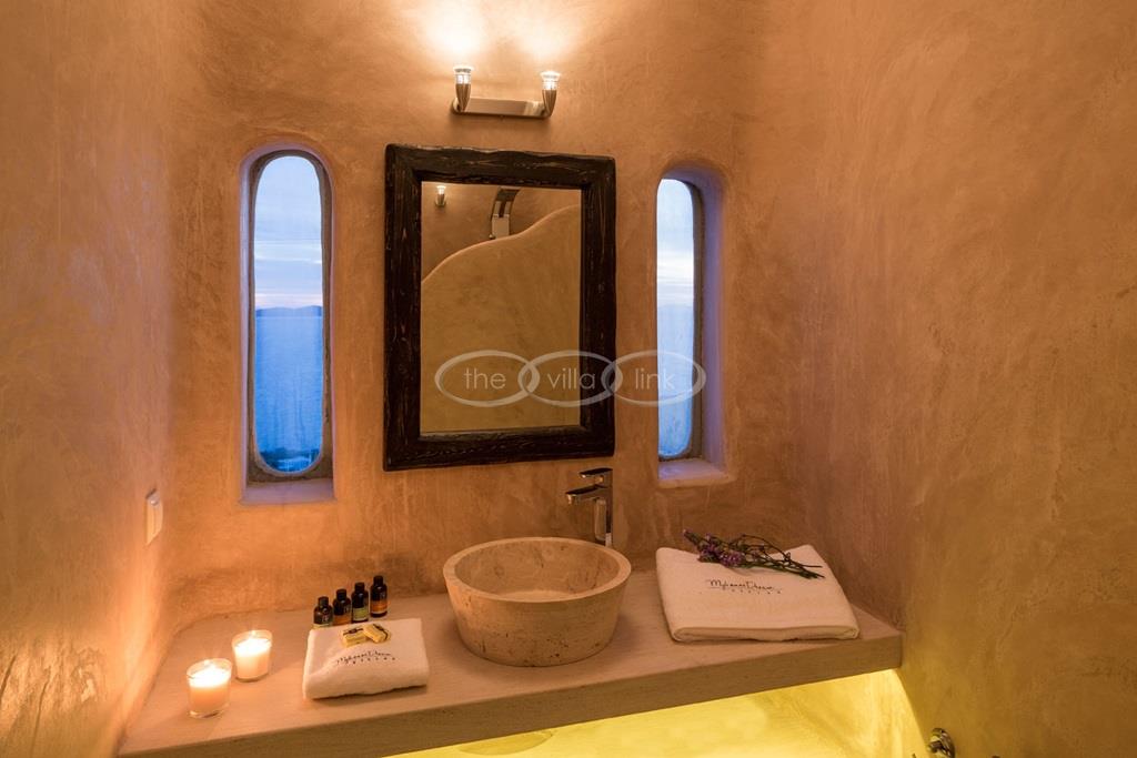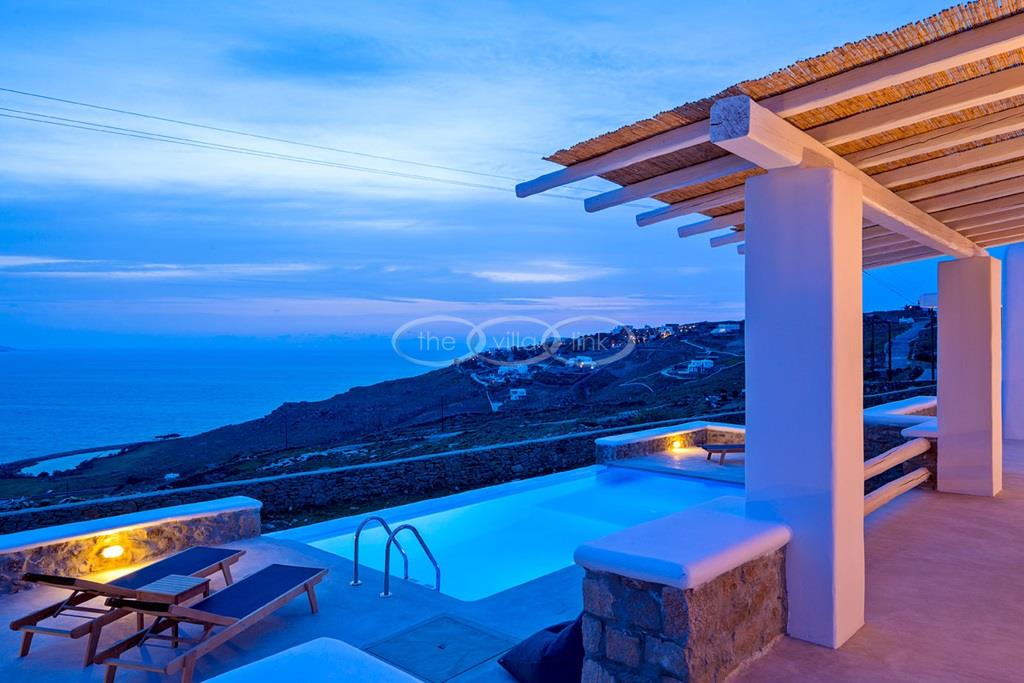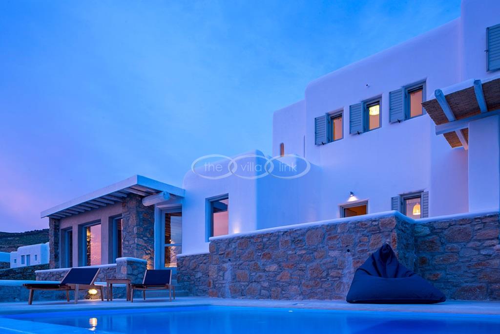 Located on the heights within 5 minutes’ drive to the village of Mykonos, this luxury villa with swimming pool and panoramic sea views welcomes comfortably up to 6 guests. It is composed, on the main level of a saloon, dining room and fully equipped kitchen, and a double bedroom with ensuite bathroom, all opening onto the exterior terrace and the pool facing the sea. On the upper level are set 2 double bedrooms, each with en-suite bathroom. Air-conditioning throughout;