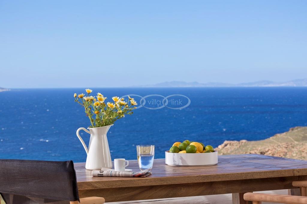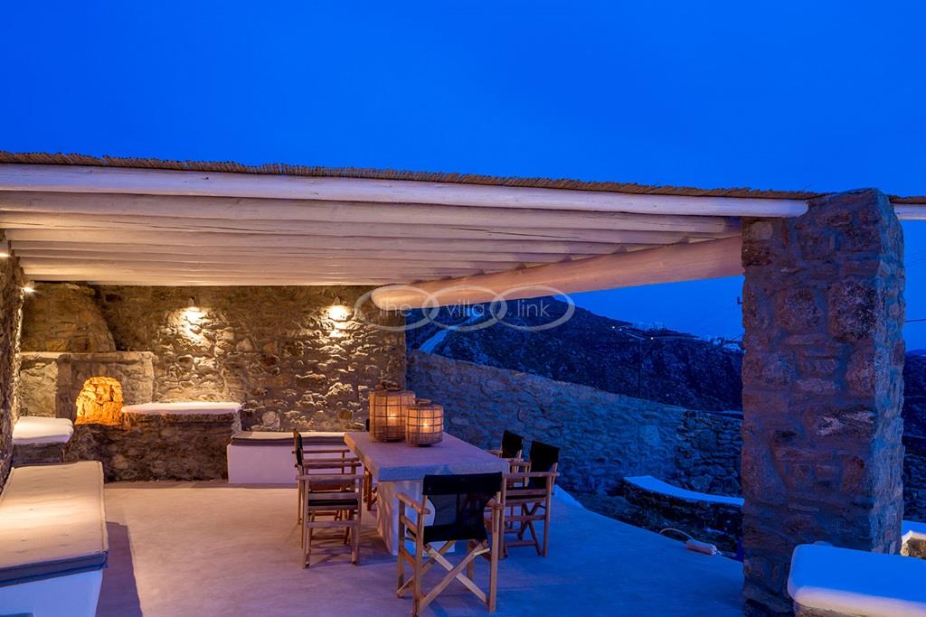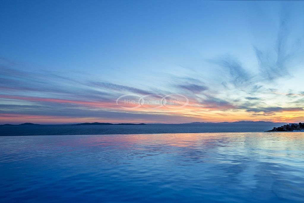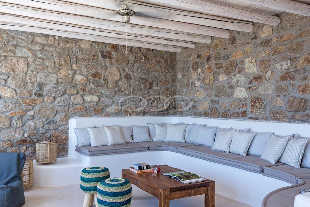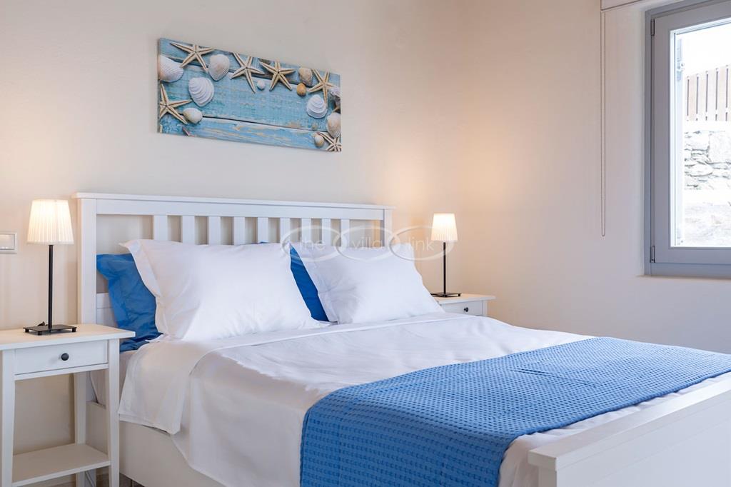 Located on the heights within 5 minutes’ drive to the village of Mykonos, this luxury villa with swimming pool and panoramic sea views welcomes comfortably up to 6 guests. It is composed, on the main level of a saloon, dining room and fully equipped kitchen, and a double bedroom with ensuite bathroom, all opening onto the exterior terrace and the pool facing the sea. On the upper level are set 2 double bedrooms, each with en-suite bathroom. Air-conditioning throughout;