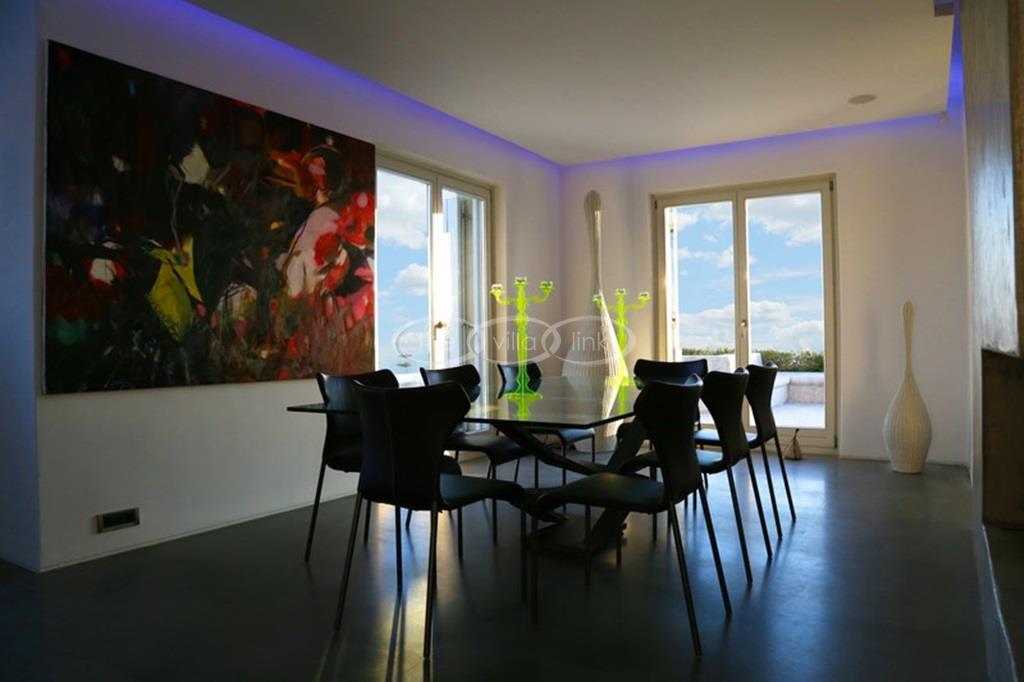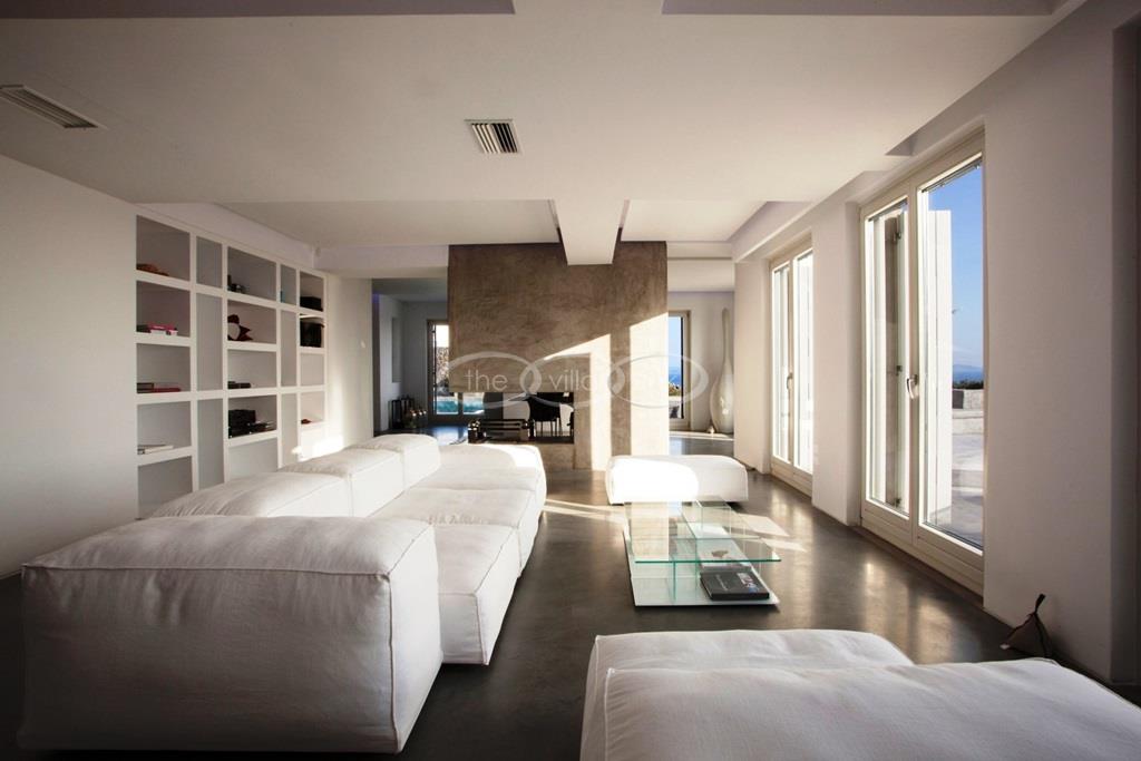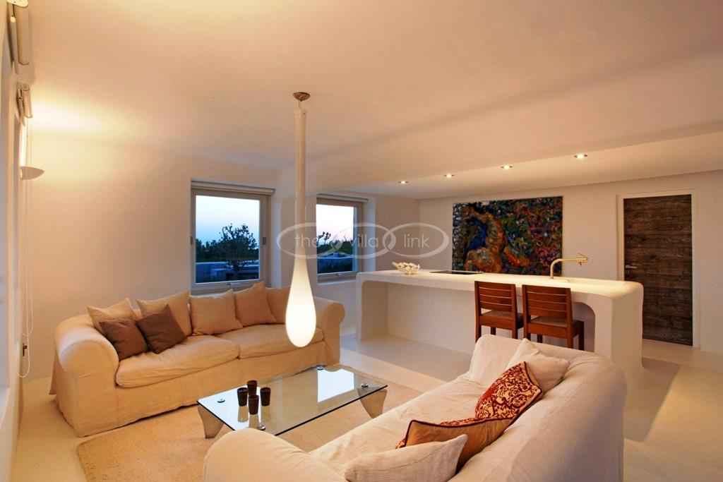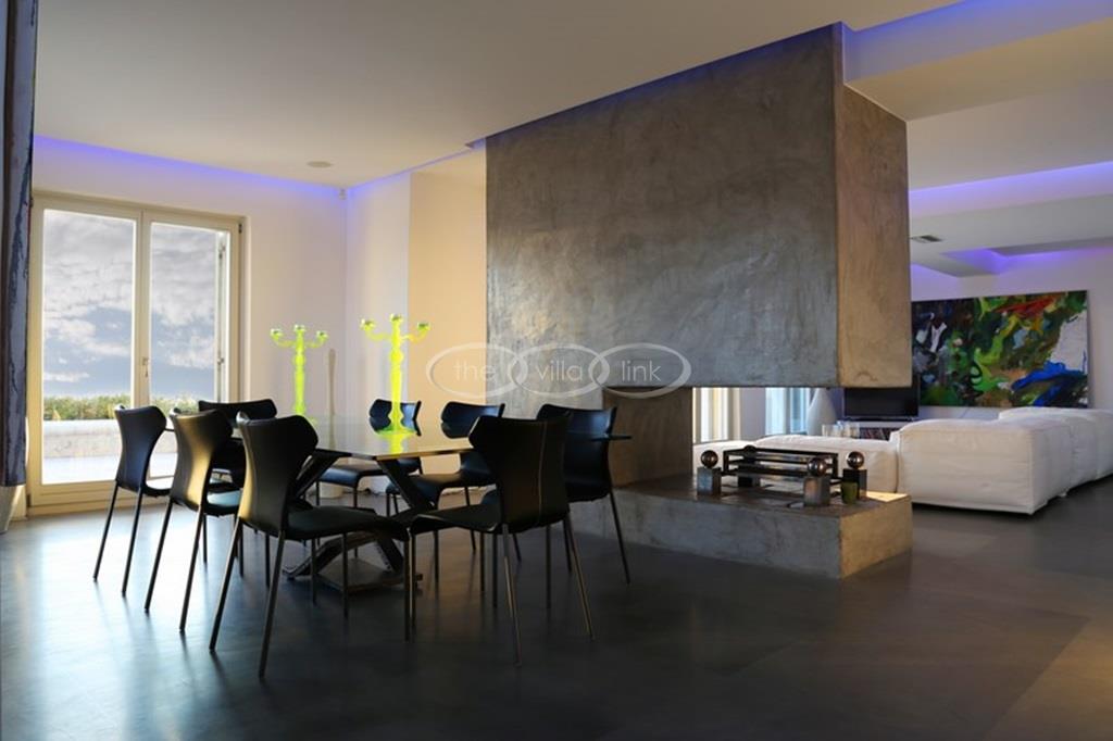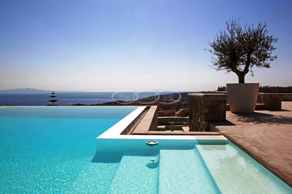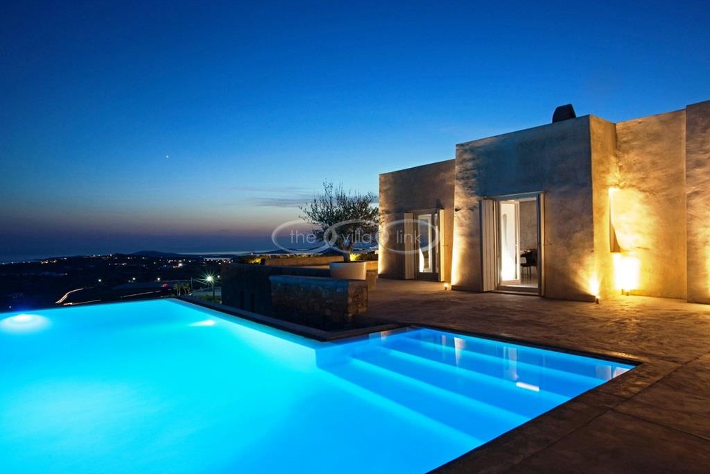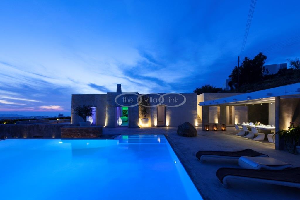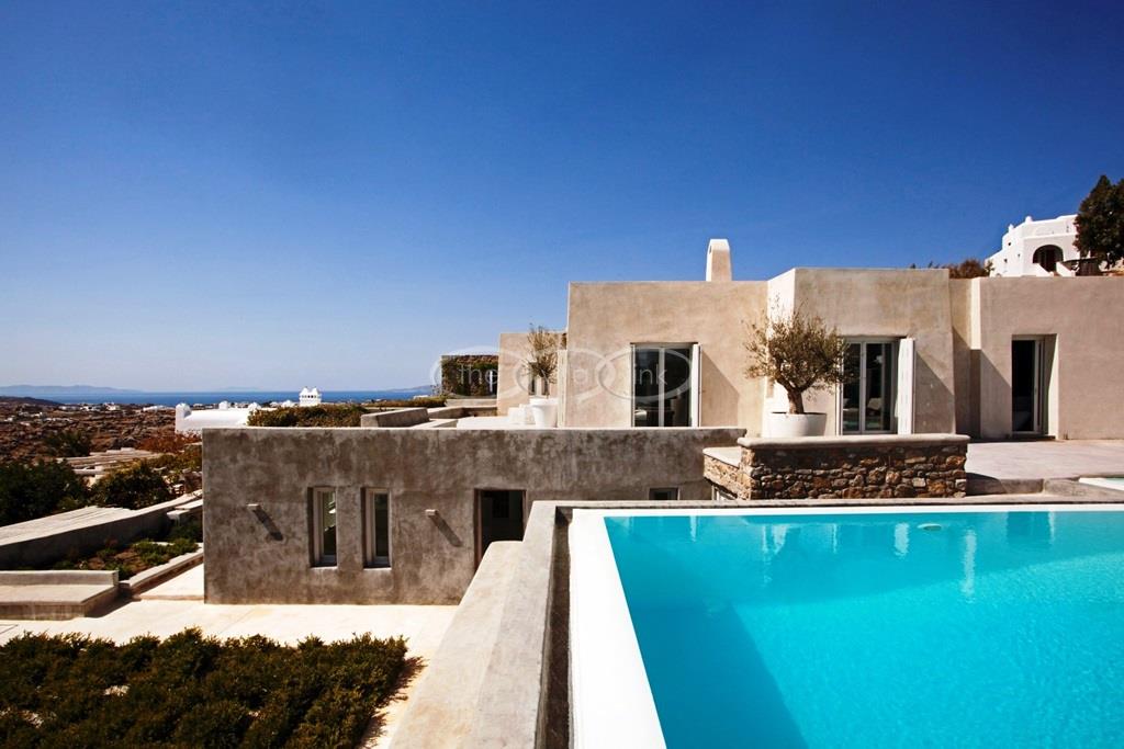 Situated on the heights of the island of Mykonos, a short drive to the beaches and the town of Mykonos, this luxury villa with infinity swimming pool and minimalist interior design welcomes comfortably up to 10 guests. It is composed, on the main level of