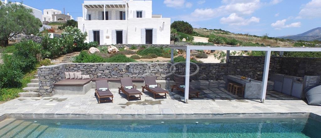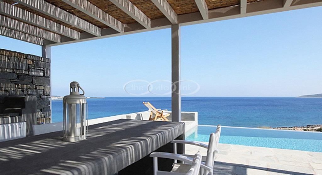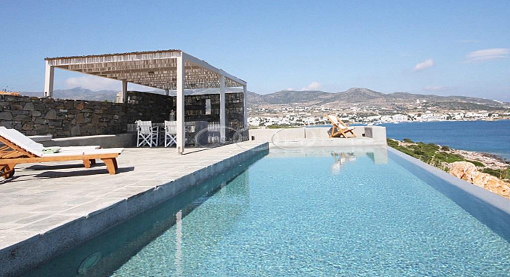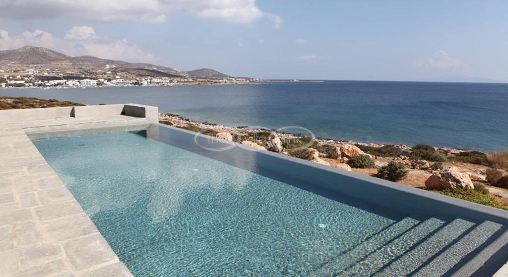 Located on the seafront on the South of the island of Paros, within walking distance to a secluded sandy beach and the village of Aliki, this villa in the traditional local style with infinity swimming pool welcomes comfortably up to 6 guests. The villa on 2 levels comprises on the main level the living room with saloon, fully equipped kitchen and dining area, all opening to the terrace. The infinity swimming pool is set further down and comprises its own covered terrace. The lower level comprise the master bedrooms with dressing and bathroom and one double and one twin bedroom, each with en-suite bathroom; Air-conditioning throughout;