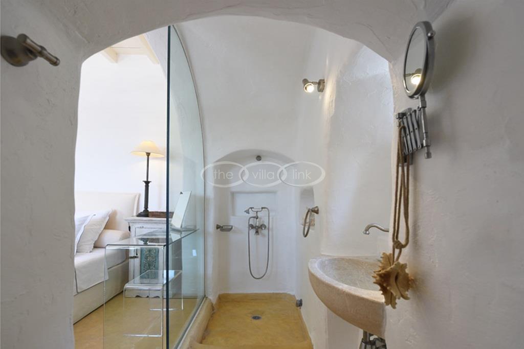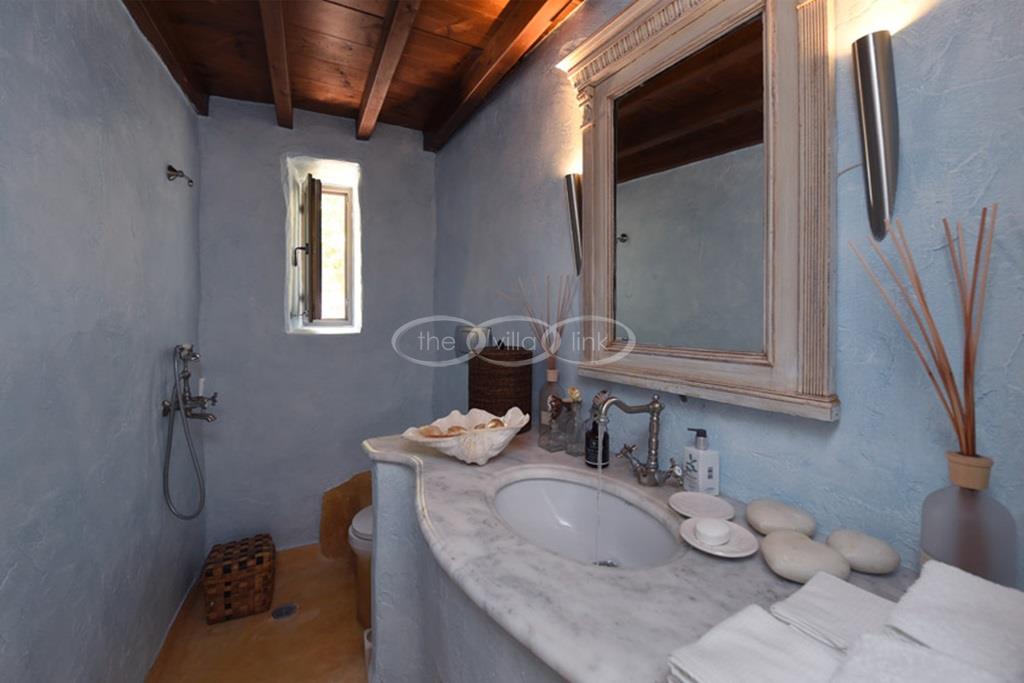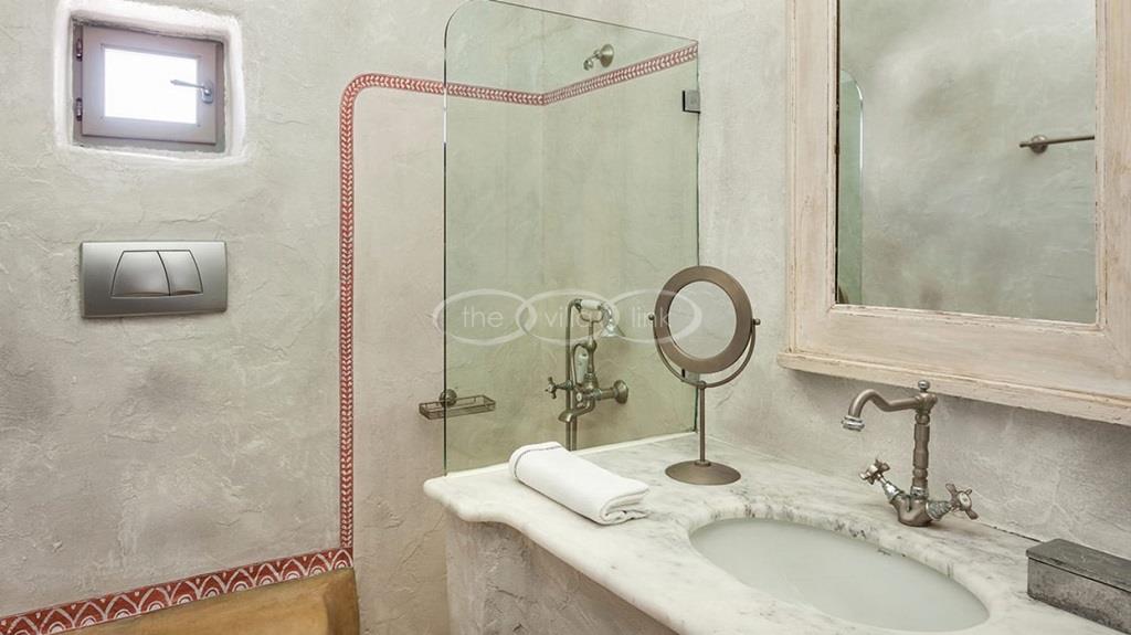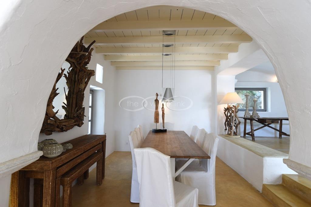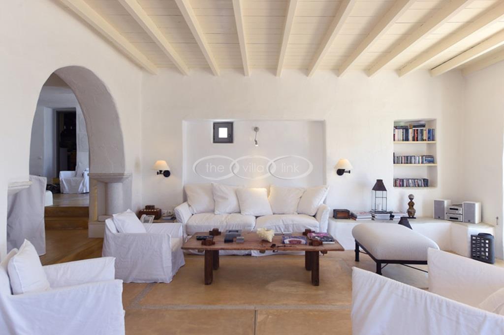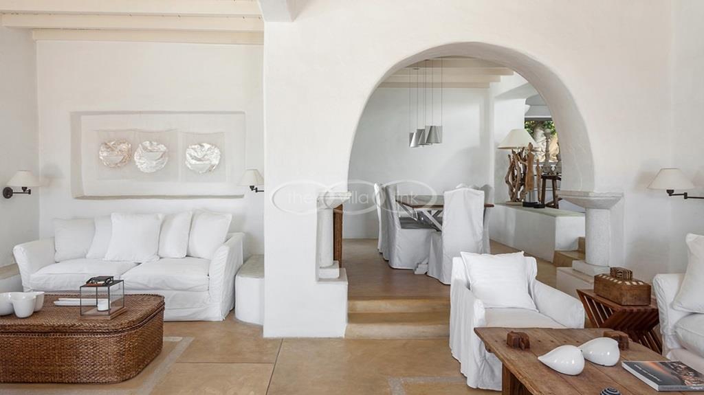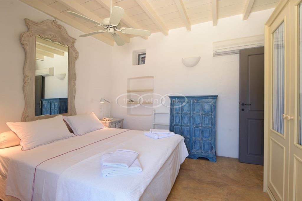 With 500m walking distance to the centre of Naoussa, this luxury waterfront villa with swimming pool welcomes comfortably up to 8 guests. It is composed, on the main level of a saloon, dining room and independent kitchen, opening onto a terrace overlooking the swimming pool and the sea, while a pool-house with al fresco dining area and barbecue are set at the pool level. The master bedroom and one double bedroom, each with en-suite bathroom are located on the main level, while the upper floor are arranged a saloon with kitchenette opening onto a terrace and 2 double bedrooms sharing a bathroom. Air-conditioning throughout; Live-in staff in independent amenities.