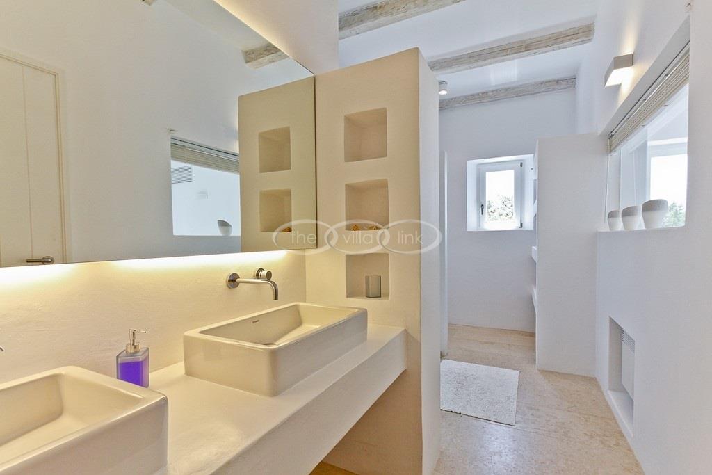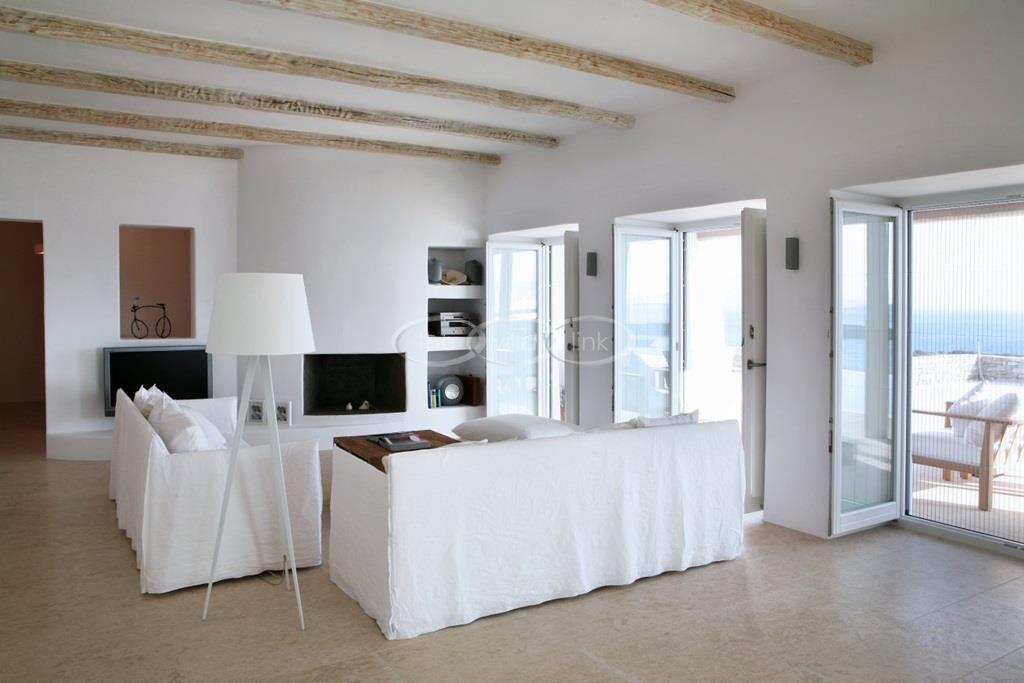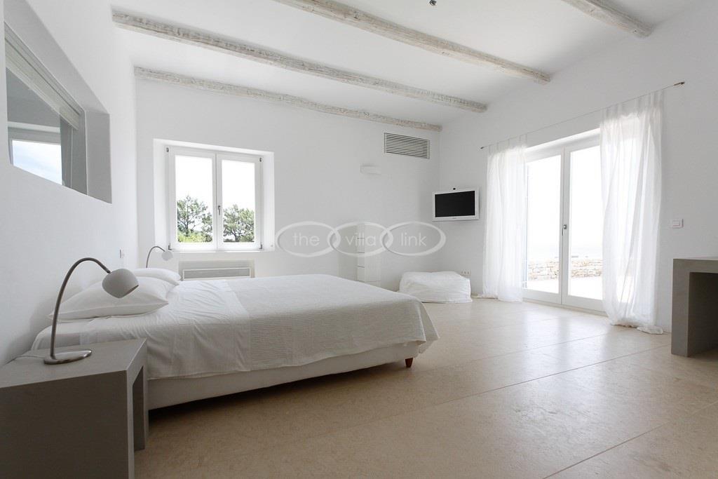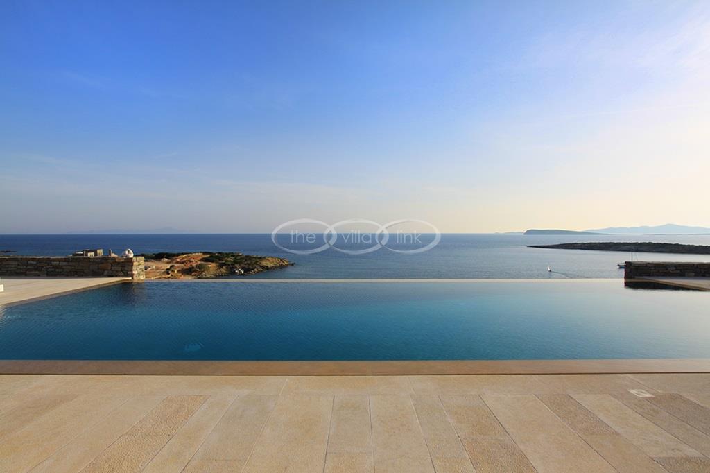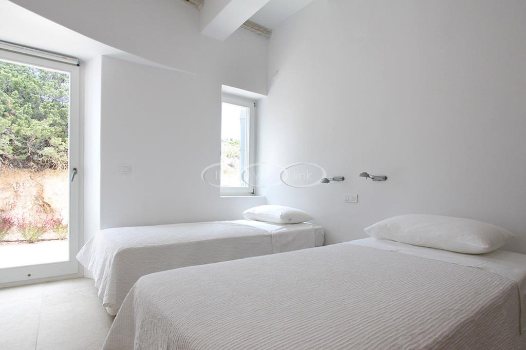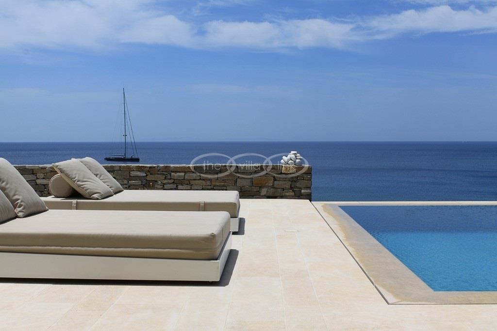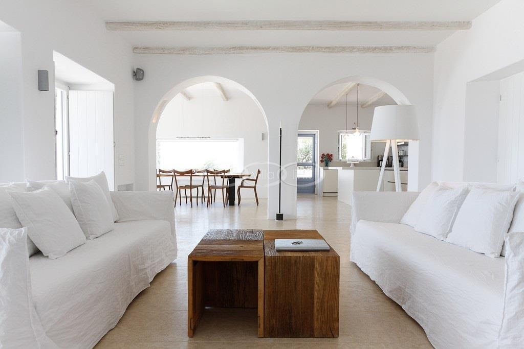 Situated on the waterfront within 150m of a sandy beach on the southern part of the island of Paros, this superb villa recently built welcomes comfortably up to 12/14 guests. Combining modernity and traditional style, the property comprise the main villa with a large living room with saloon, dining and large opened kitchen, the master suite, one double bedroom and 2 twin bedrooms, each with ensuite bathroom; 2 guests houses offer a double bedroom with bathroom for the first one and a double bedroom, a saloon with 2 sofas suitable for children and a bathroom for the other; Air-conditioning in the bedrooms; Independent staff accommodation;