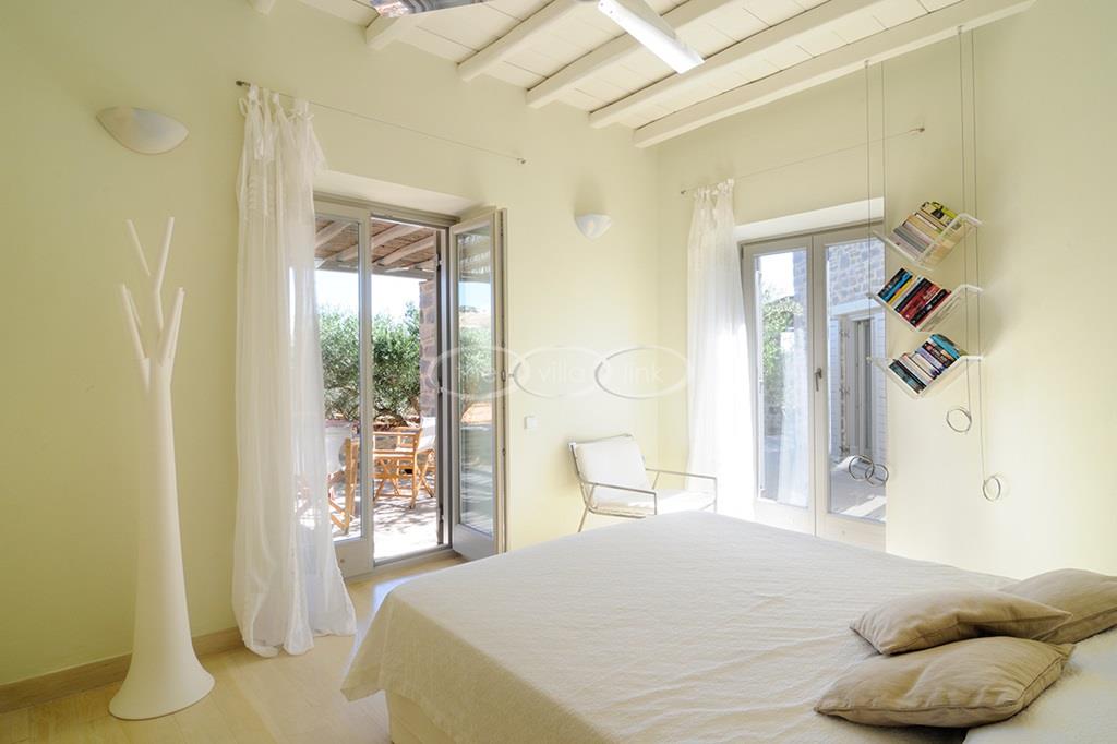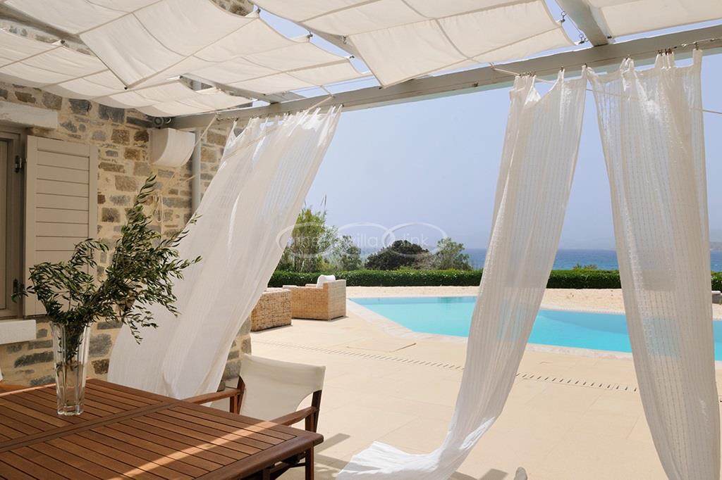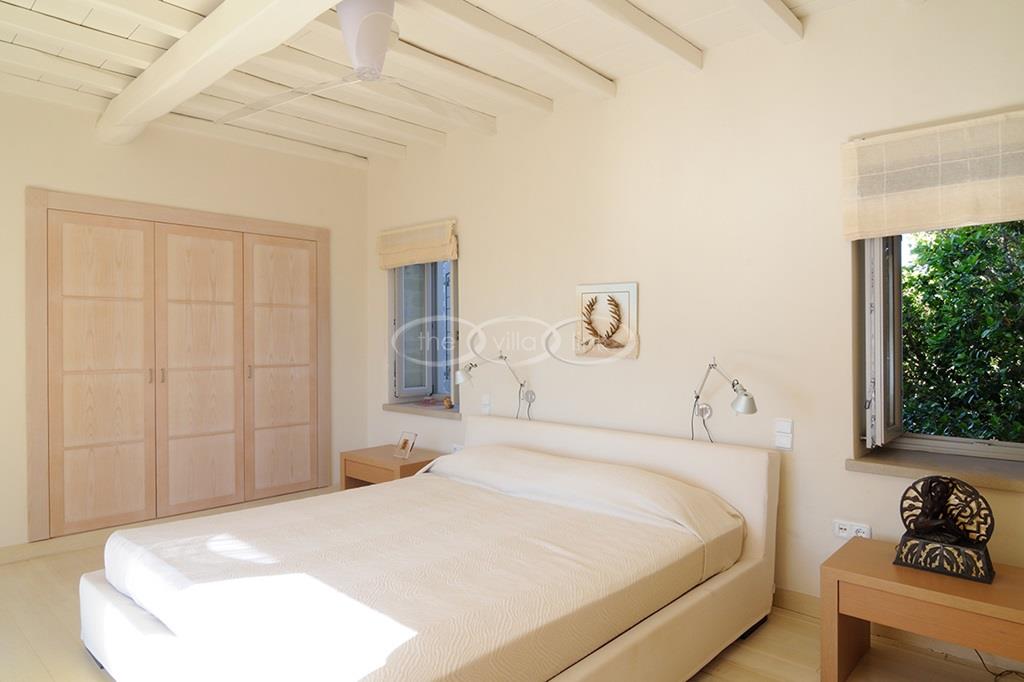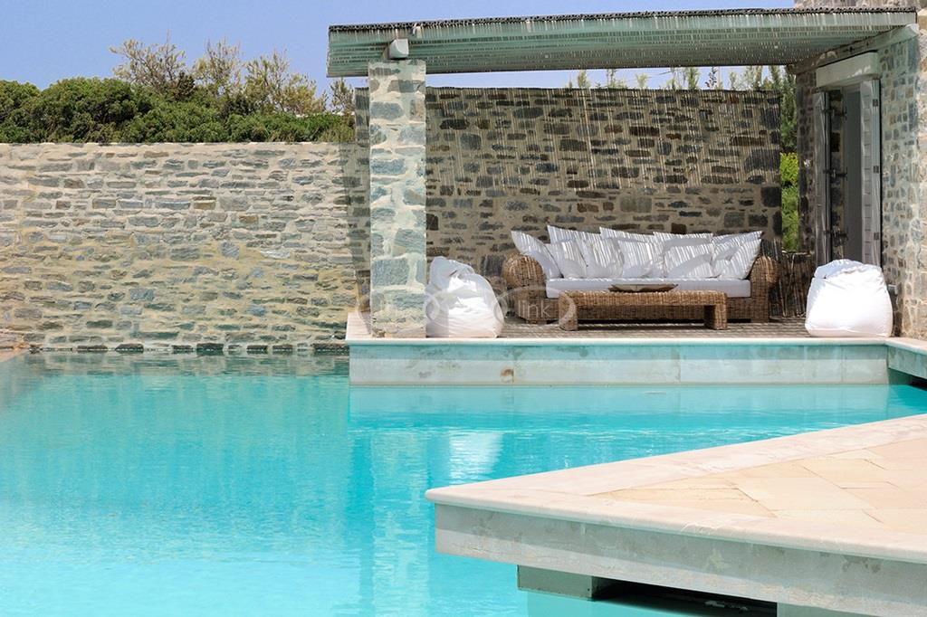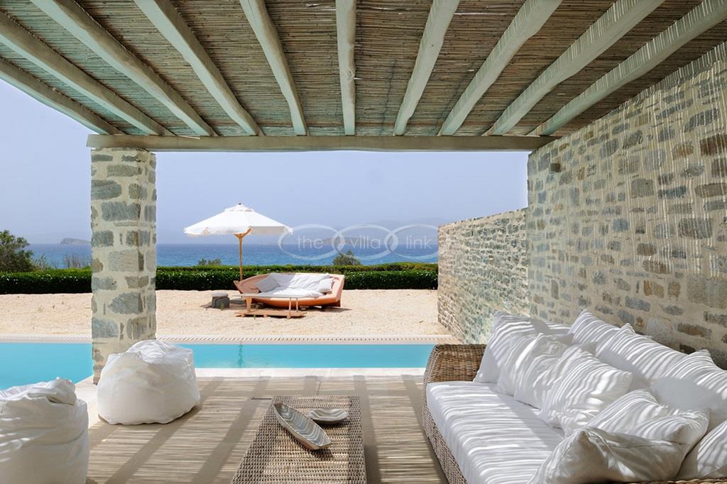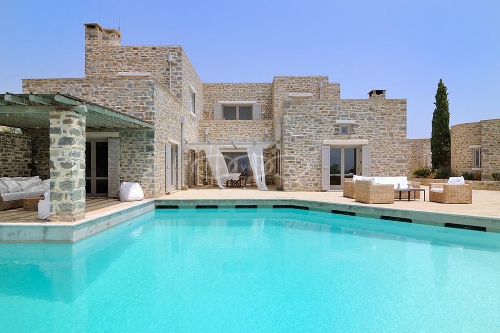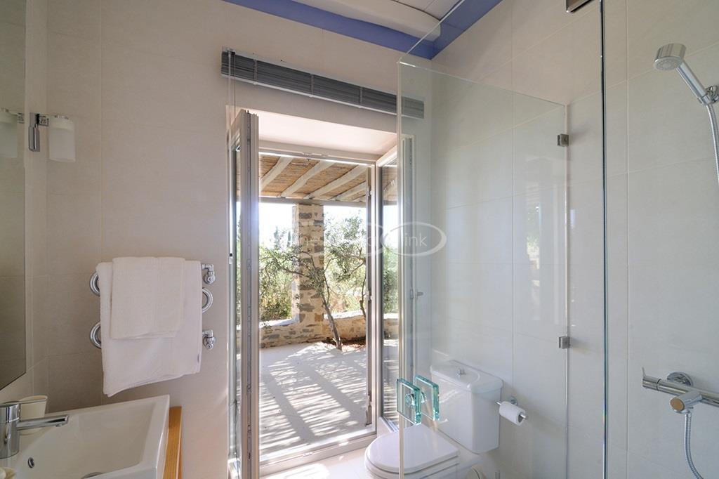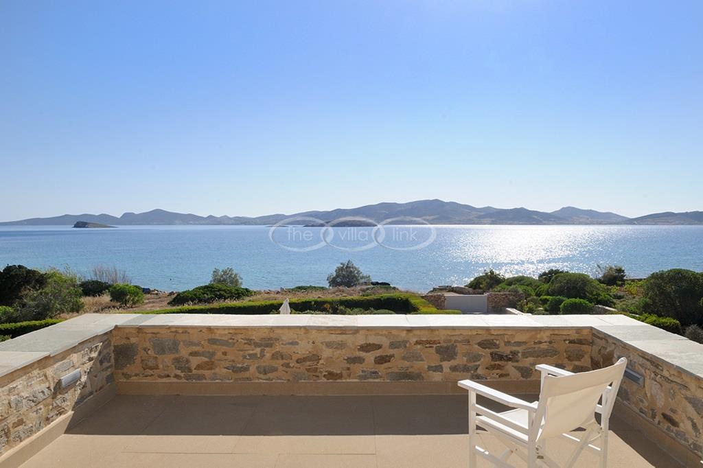 Located right above a secluded pebble beach on the South of the island of Paros, this recent villa in a contemporary style welcomes comfortably up to 12 guests. It is composed of a main villa with saloon, dining room and a fully equipped kitchen, all facing the terrace and the pool overlooking the sea, and, on the upper level, the master bedroom with terrace, separated office and en-suite bathroom. 2 independent guests’ houses comprise each a double and a twin bedroom and an independent guests suite comprise a double bedroom with a sitting area, each bedroom having its own bathroom; Air-conditioning throughout;