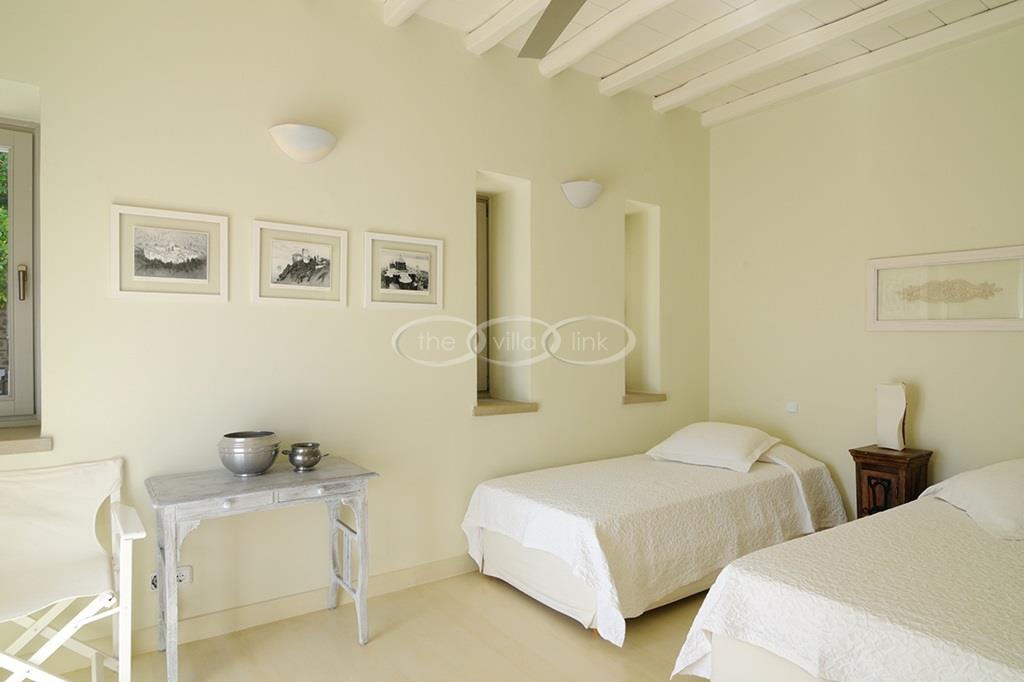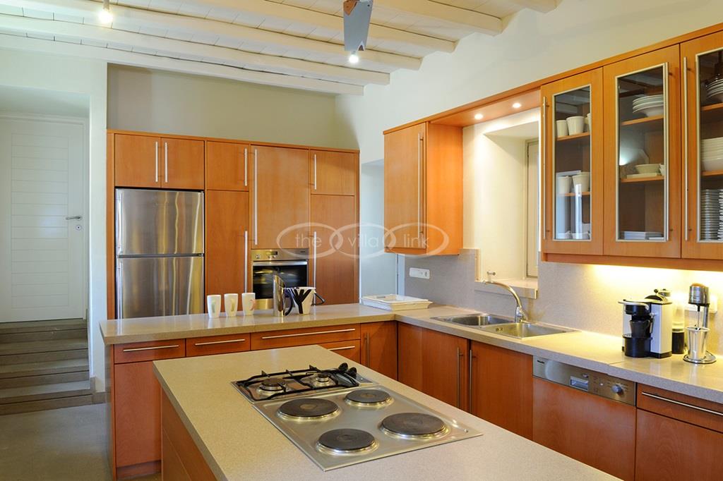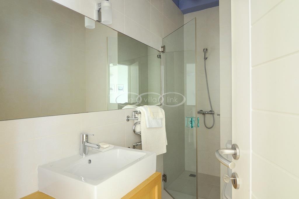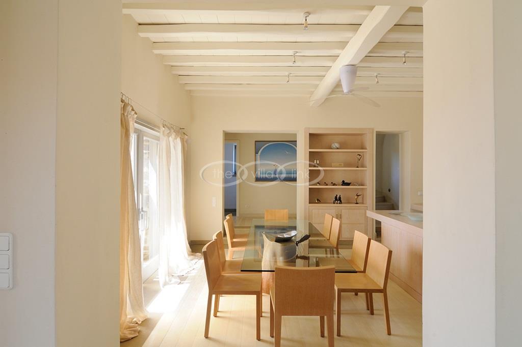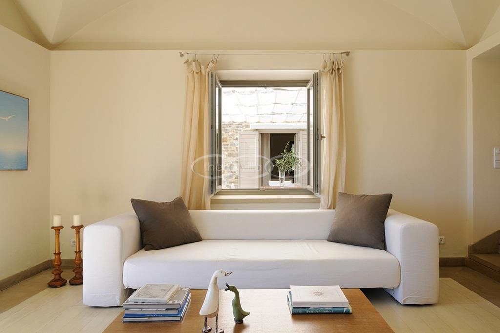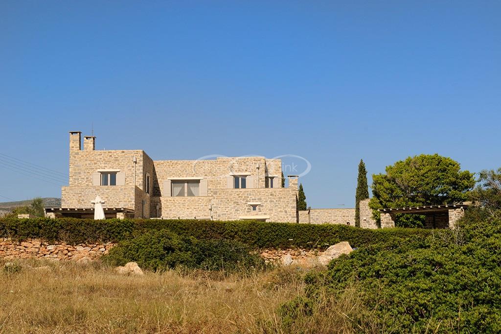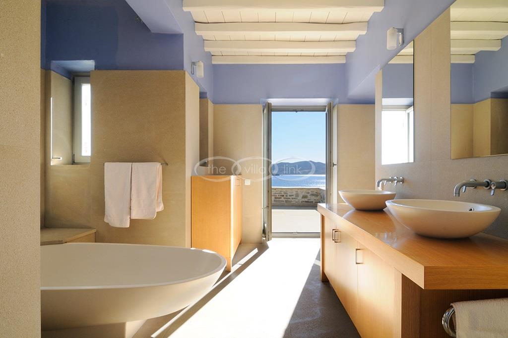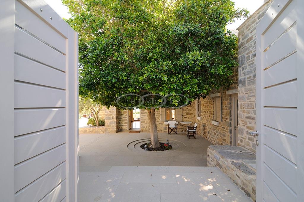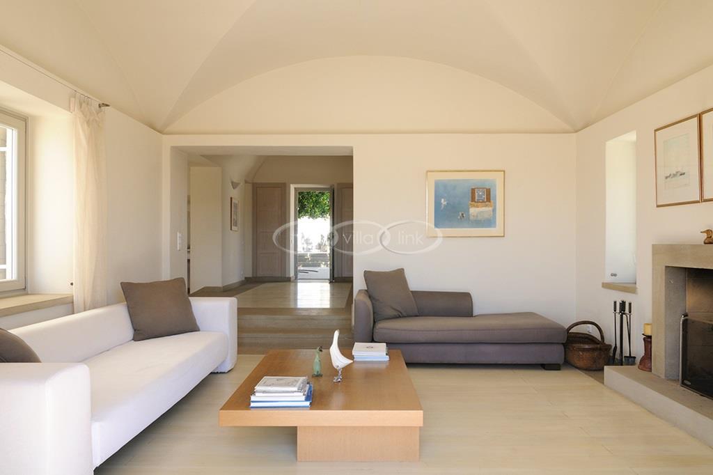 Located right above a secluded pebble beach on the South of the island of Paros, this recent villa in a contemporary style welcomes comfortably up to 12 guests. It is composed of a main villa with saloon, dining room and a fully equipped kitchen, all facing the terrace and the pool overlooking the sea, and, on the upper level, the master bedroom with terrace, separated office and en-suite bathroom. 2 independent guests’ houses comprise each a double and a twin bedroom and an independent guests suite comprise a double bedroom with a sitting area, each bedroom having its own bathroom; Air-conditioning throughout;