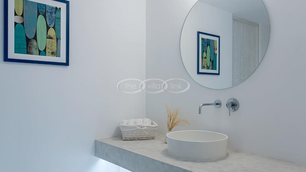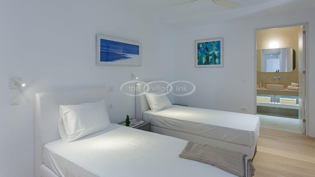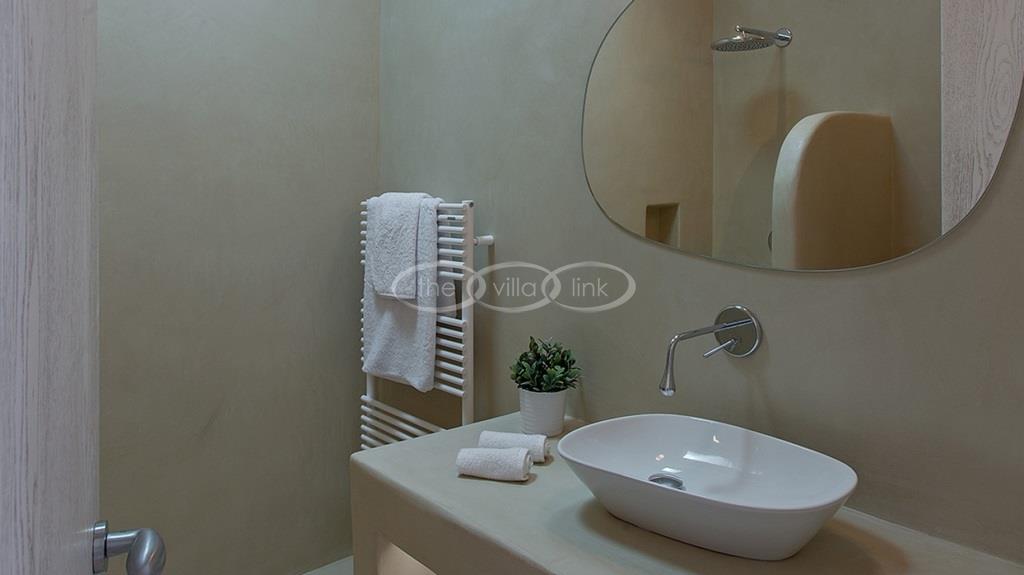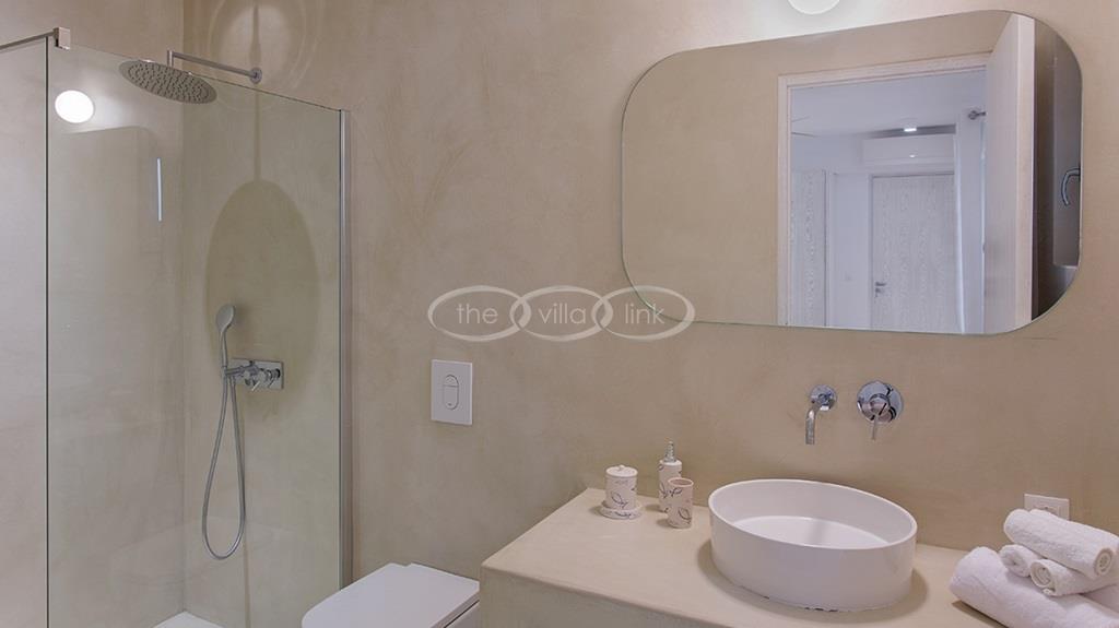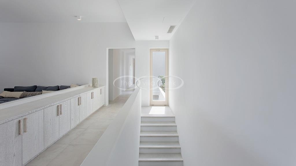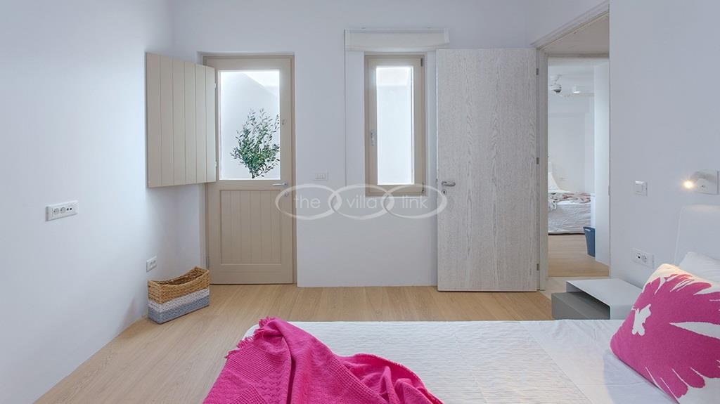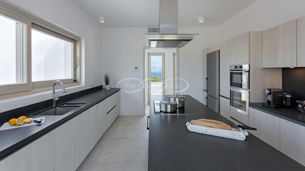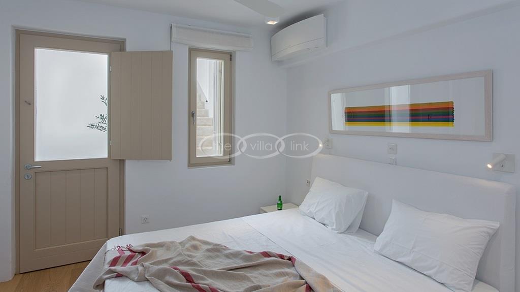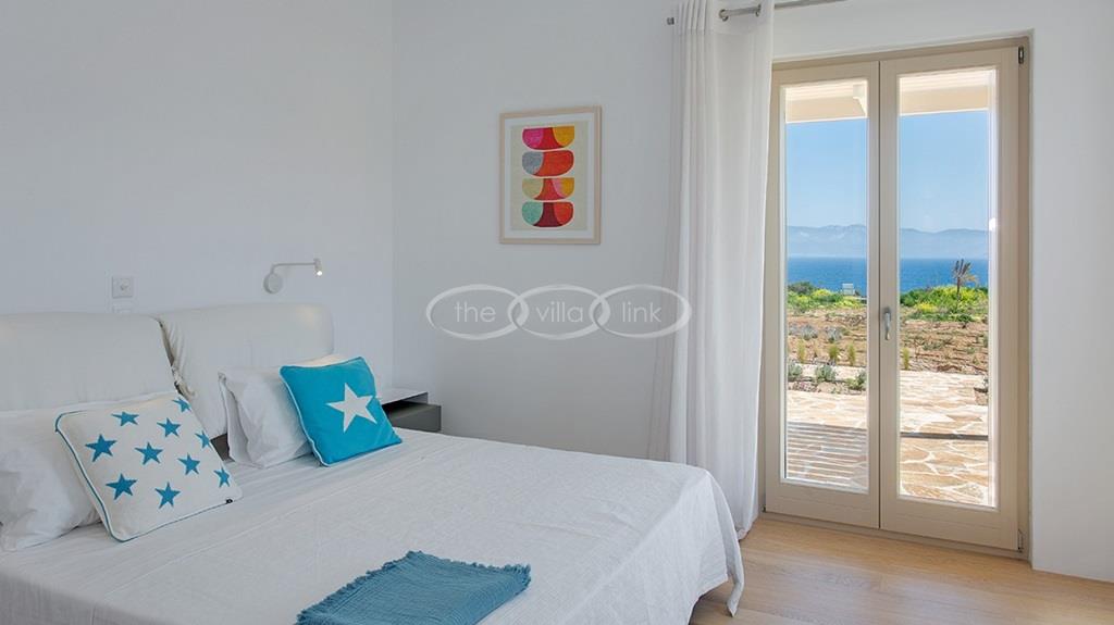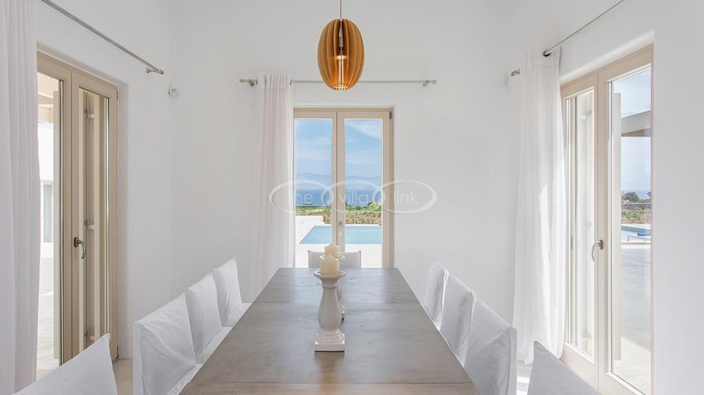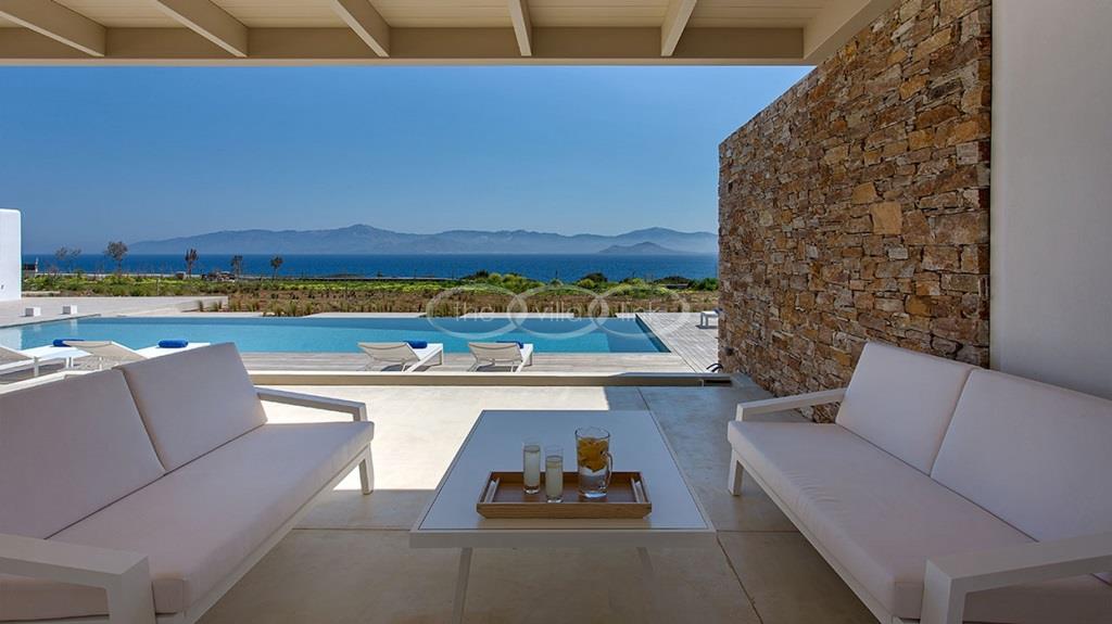 Situated on the first line on the Eastern coast of the island of Paros at the heart of a large enclosed garden, within walking distance to a small cove and a few minutes’ drive to Naoussa, this luxury and spacious contemporary villa with panoramic sea views welcomes comfortably up to 14 guests. Outside, the villa features patios and terraces with comfortable sofa beds and sunbeds, a 17x7m swimming pool, as well as magnificent outdoor dining and sitting area. With a contemporary decoration, it is composed of a main villa comprising a living room with saloon with TV and fireplace and dining area, an independent fully equipped modern kitchen, the master suite with dressing and bathroom with steam shower and 2 double bedrooms, each with en-suite bathroom with shower. On the lower level are arranged a saloon with opened kitchen, a gym, two double bedrooms with independent access and en-suite bathroom with shower and one twin bedroom with en-suite bathroom with shower that is more adapted for staff. A guest house next to the pool comprises a double or twin bedroom with bathroom. Air-conditioning throughout; Indoor-Outdoor Sonos music system; Live-in staff in independent amenities.