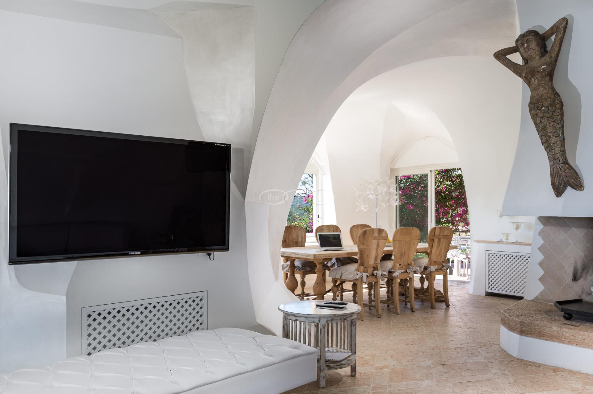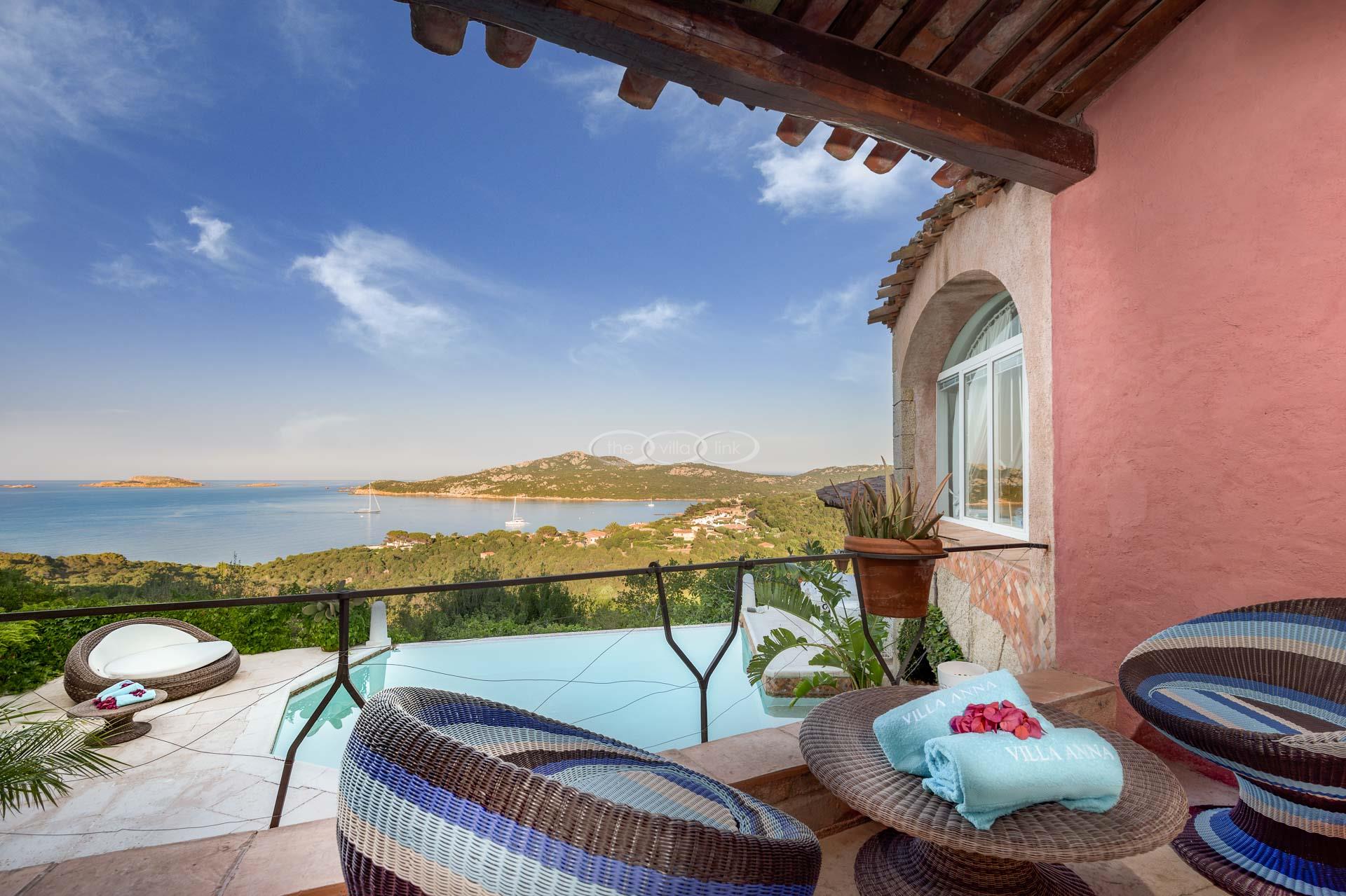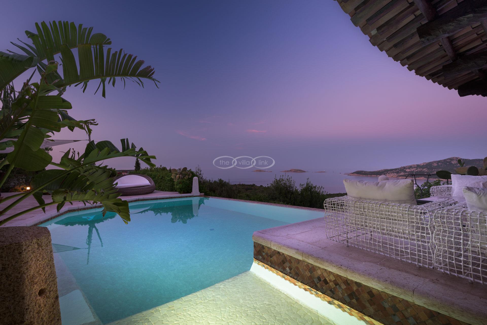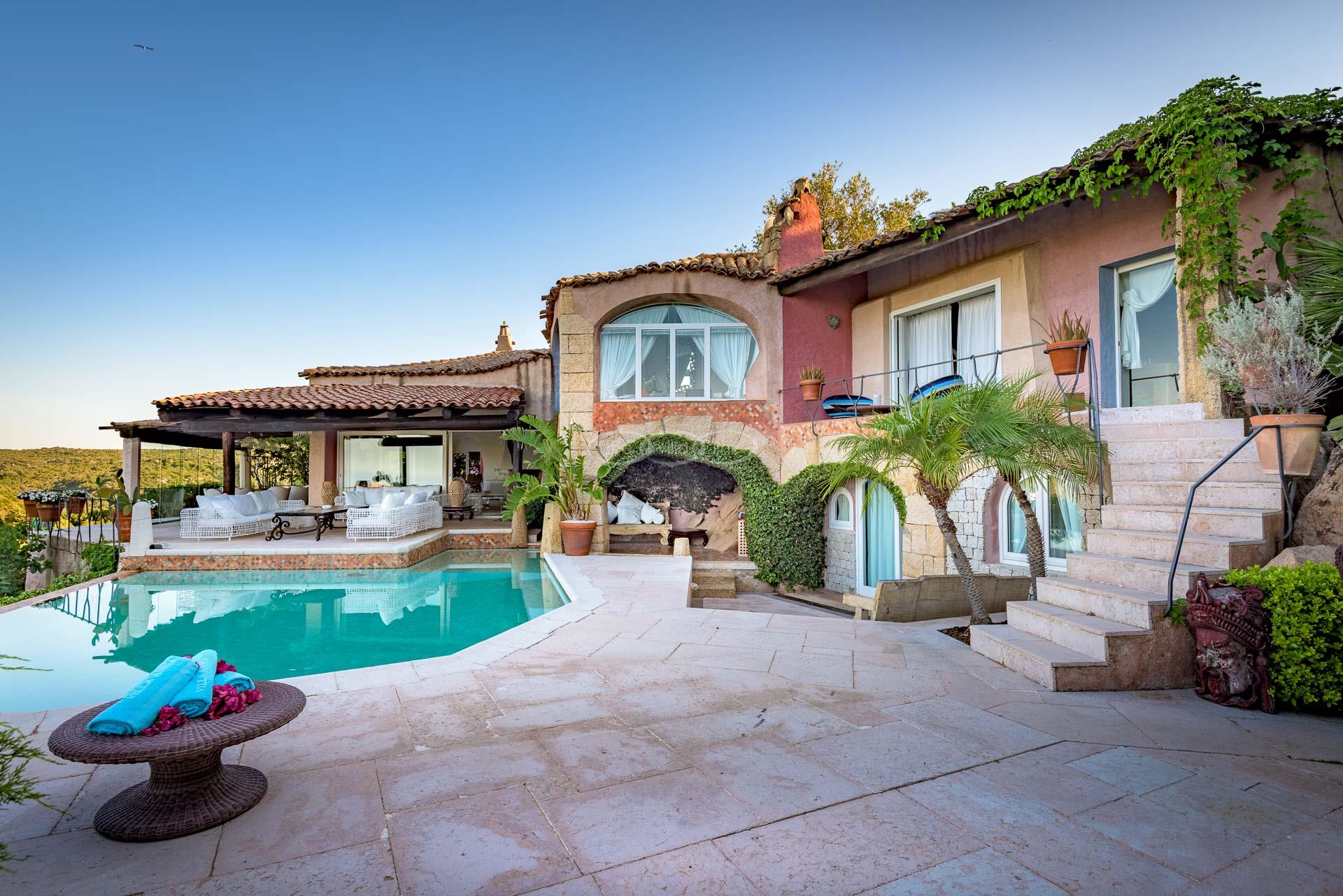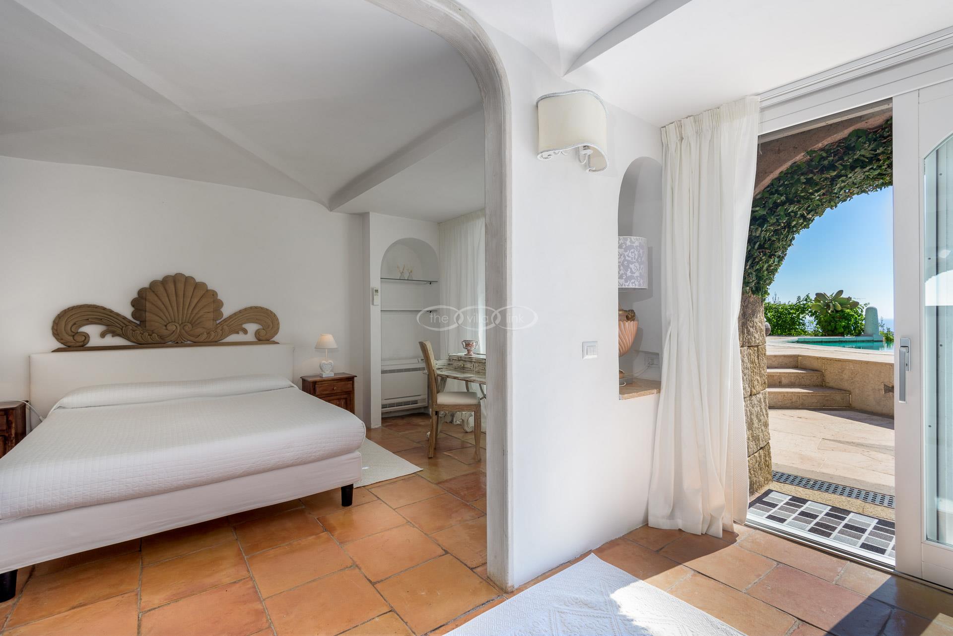 This villa is located in the lower part of the Pantogia Area in Porto Cervo. The property boasts an enchanting sea view overlooking the Pevero Golf. It is located a few minutes away from the most beautiful beaches of the Costa Smeralda, Porto Cervo Marina and Piazzetta of Porto Cervo. The Savin Couvelle Architecture is the prevailing design with modern decor, the property is composed of 3 levels. Please note that it is NOT suitable for young children as there are many stairs.