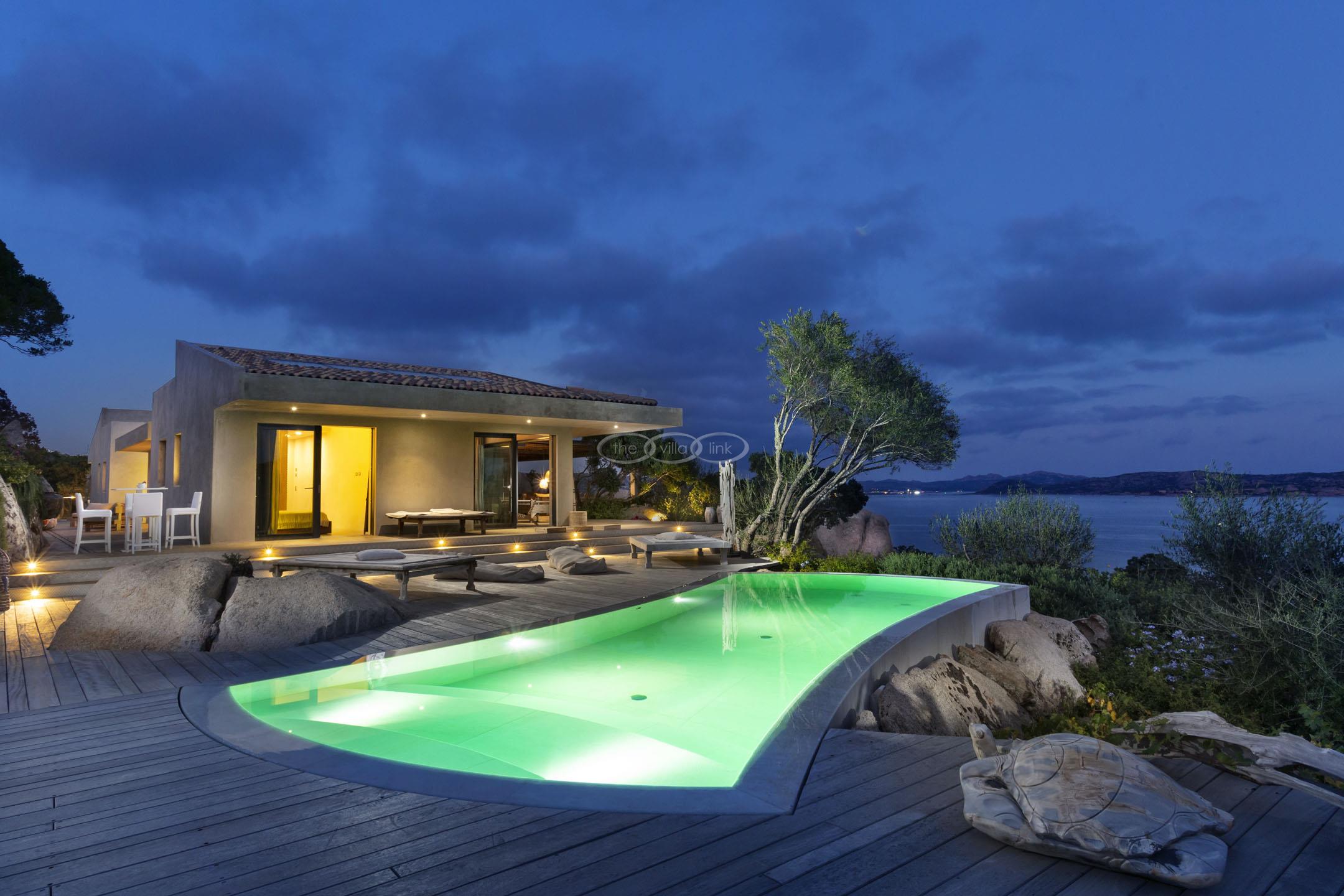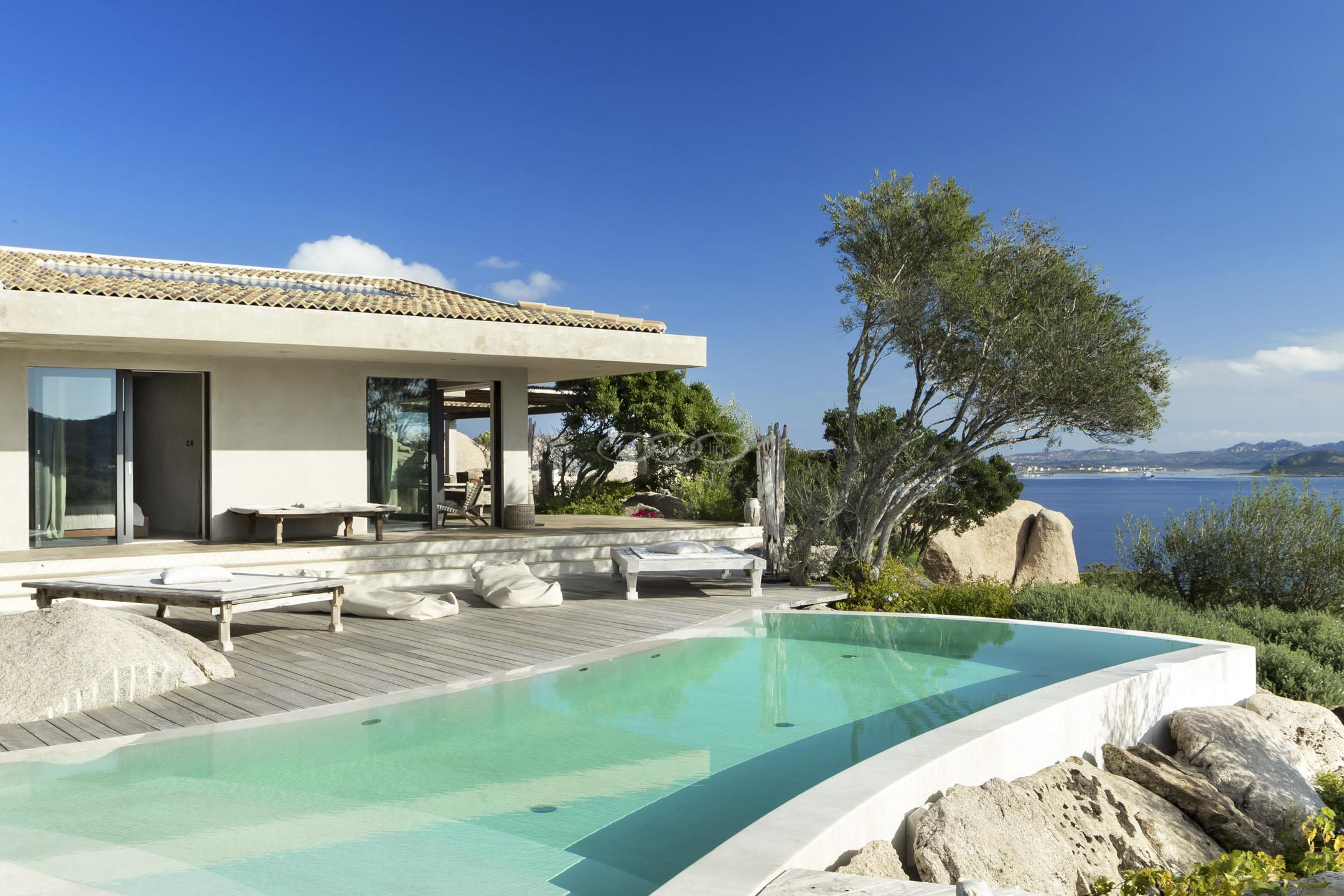 This luxury villa is located in Porto Rafael is built to make it fit in perfectly with its granatite roc surroundings. Porto Rafael is a small and quaint village close to the famous Costa Smeralda. You find state of the art interiors, great Al Fresco dining where you can enjoy the famous Sardinian shoreline. You have a view over the islands of Maddalena.