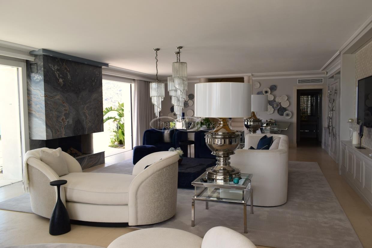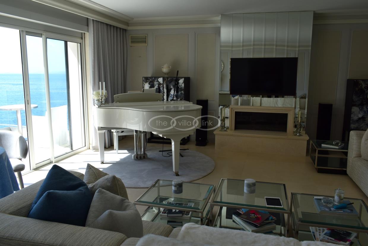 On the entrance level, there is a piano room (the piano is electric but can also be played manually) together with a comfortable sofa group. Direct access to the upper terrace. On the garden there is a second living area with direct access the pool area