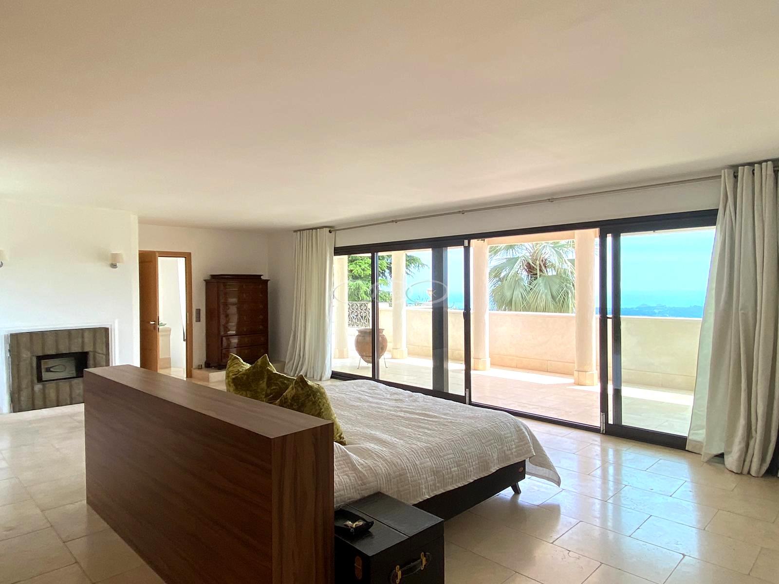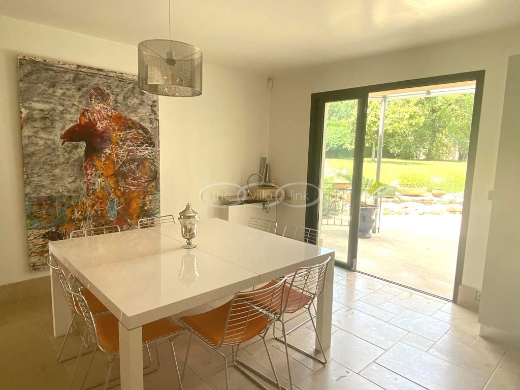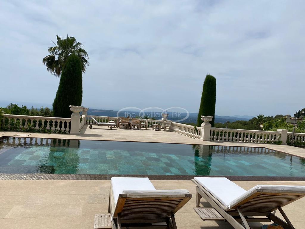 This artistic villa is located on the heights above Saint Paul de Vence in a private domaine. The views are spectacular and can be enjoyed from the terrace and several of the rooms. There are four bedrooms in the main villa and a seperate studio with another bedroom.