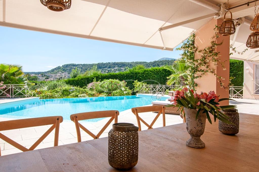 This villa is situated just outside Saint Paul de Vence and offers lovely views over the hills leading to La Colle sur Loup. It is a modern villa that has been decorated with a lot of attention. You also have a fully equipped summer kitchen, a small pond in the garden as well as a boule pitch.