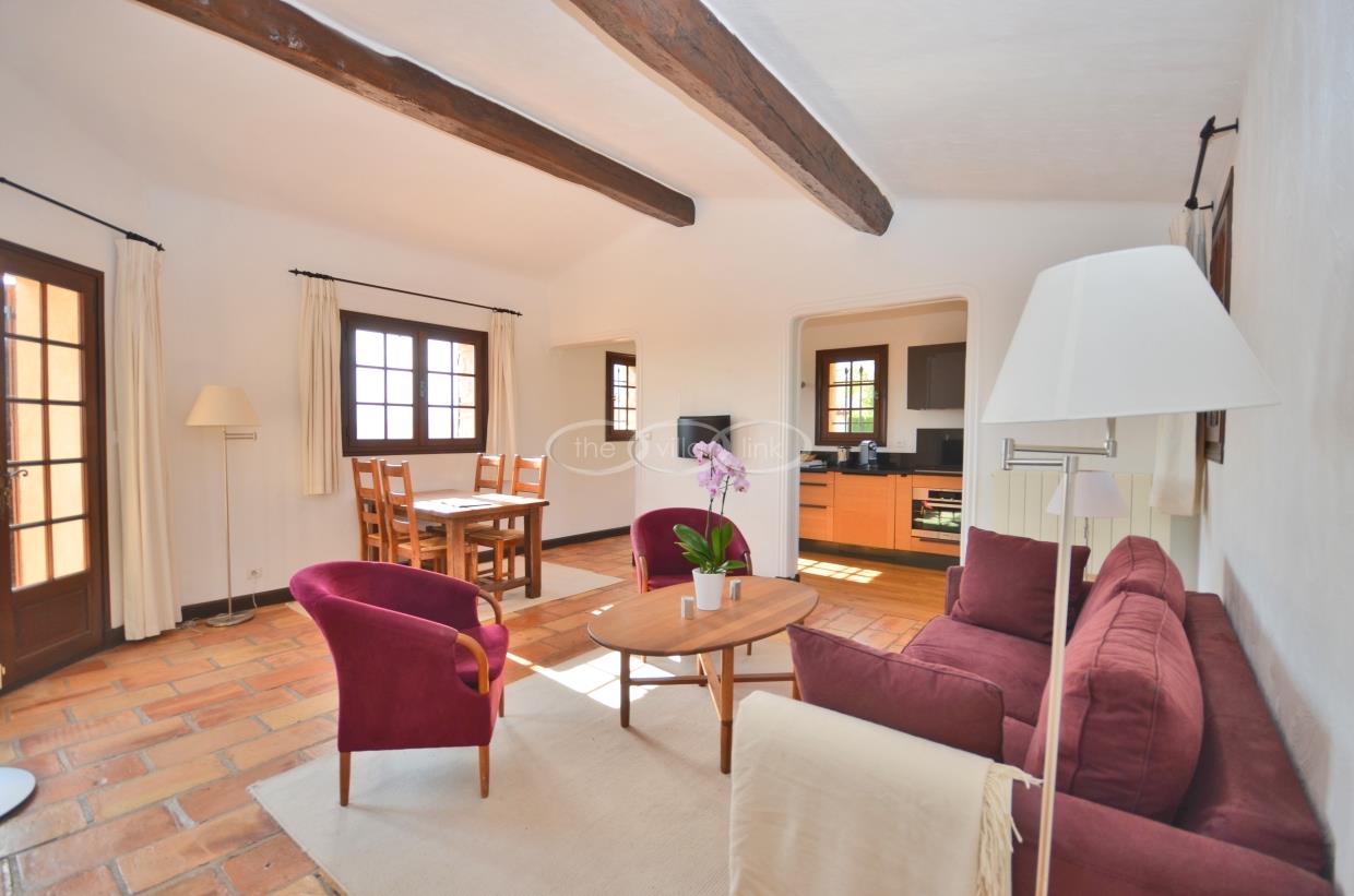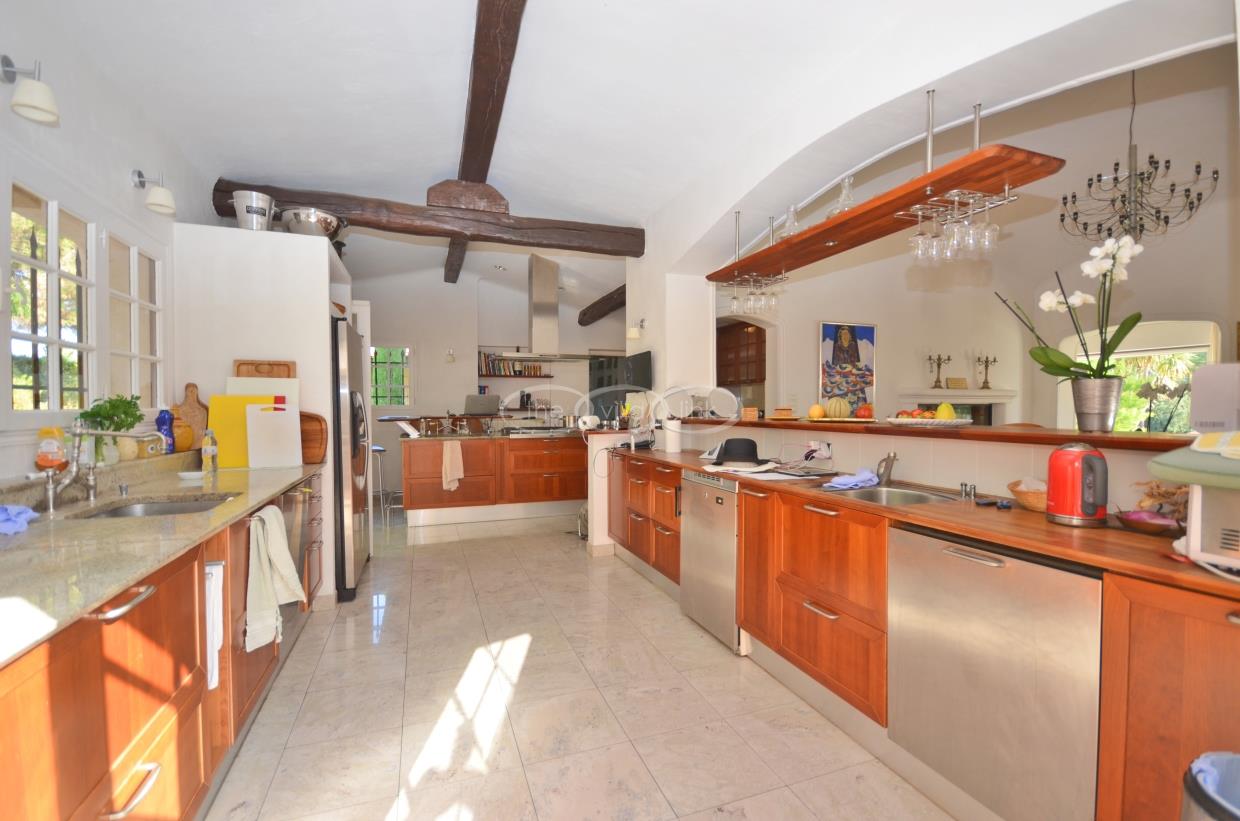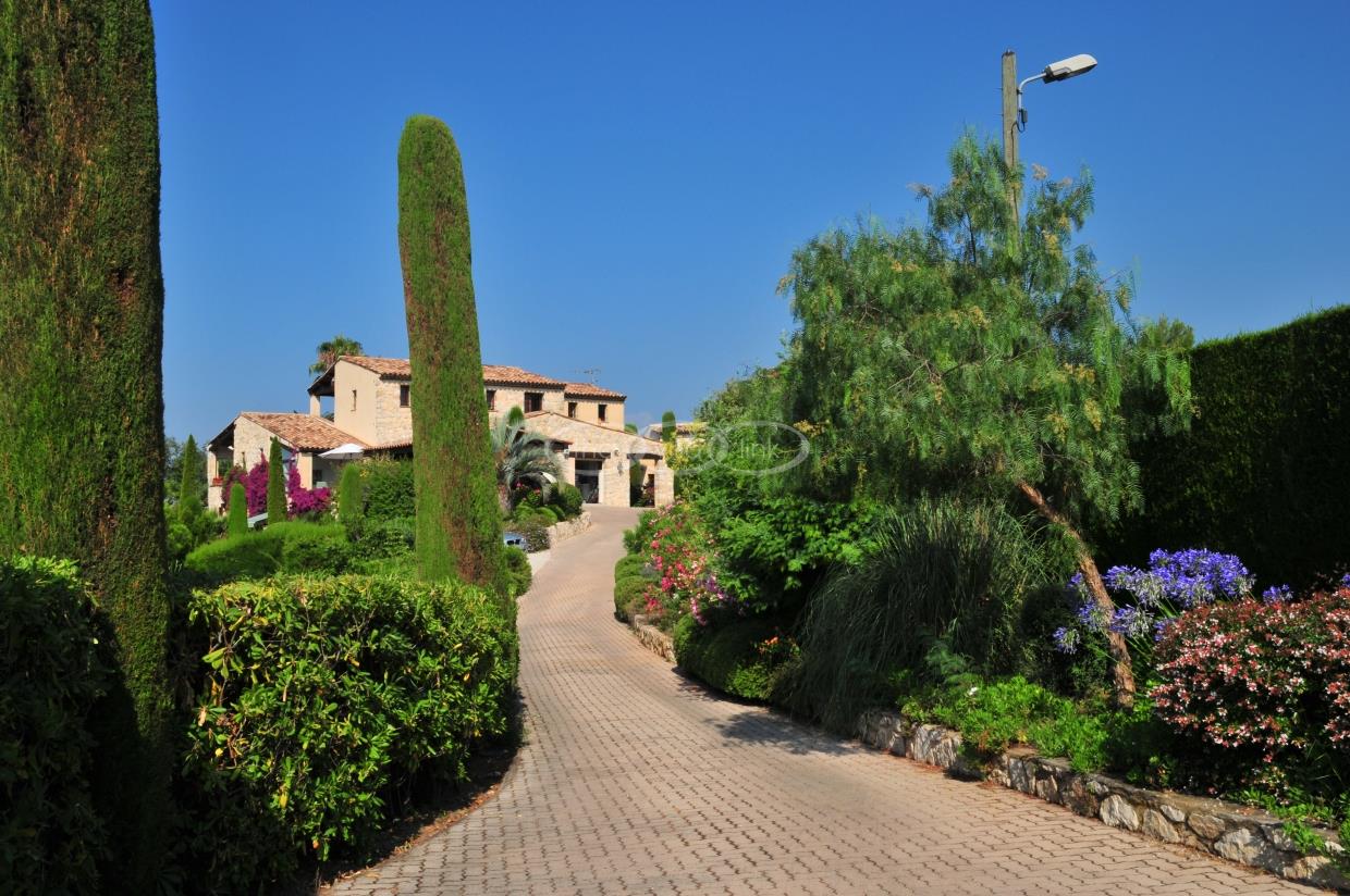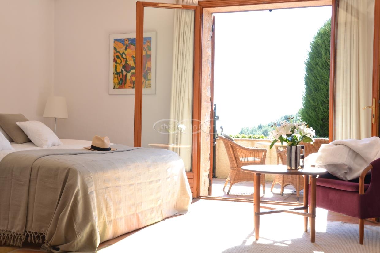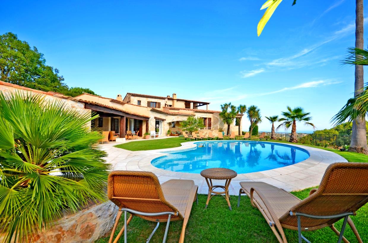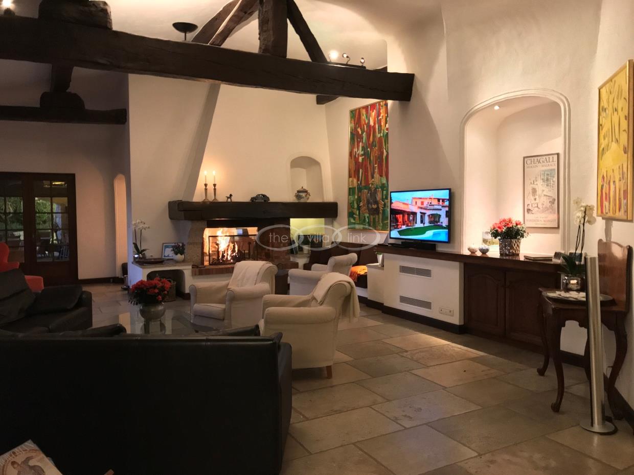 This large estate offers a relaxing haven to all guests. The min villa consists of four seperate apartments or suites (all fully equipped with kitchen and bathrooms) and four double rooms that. The annexe has another twobedrooms, living space , kitchen and bathrooms. It is the perfect get-away for several families or for your corporate events. The large salt water pool offers views down to the Mediterranean as well as the mountain range behind St Paul de Vence. You also hava afull sized and private tennis court (where a helicopter can land).