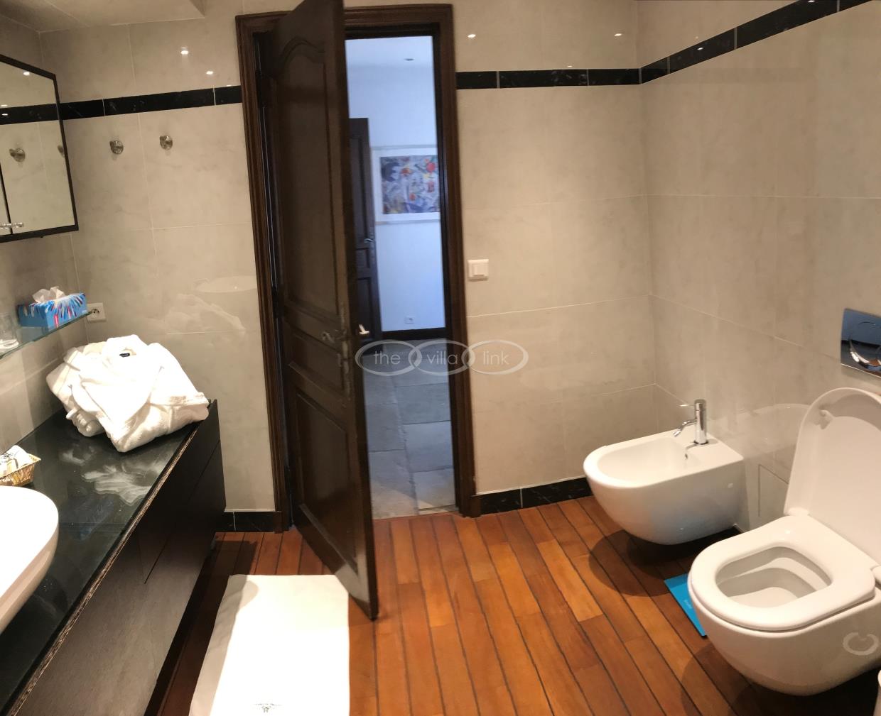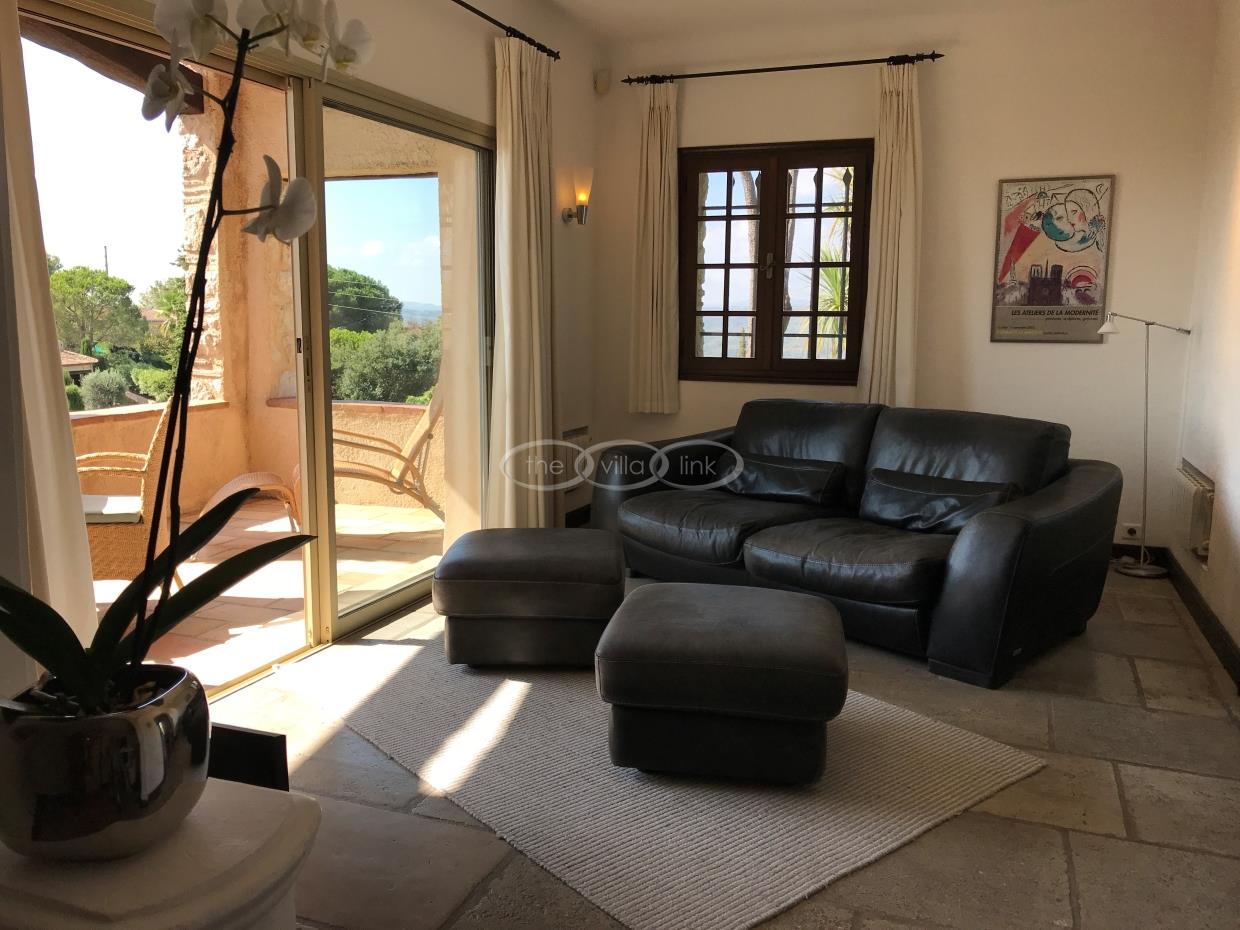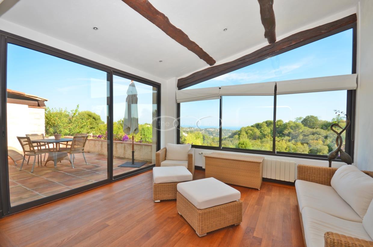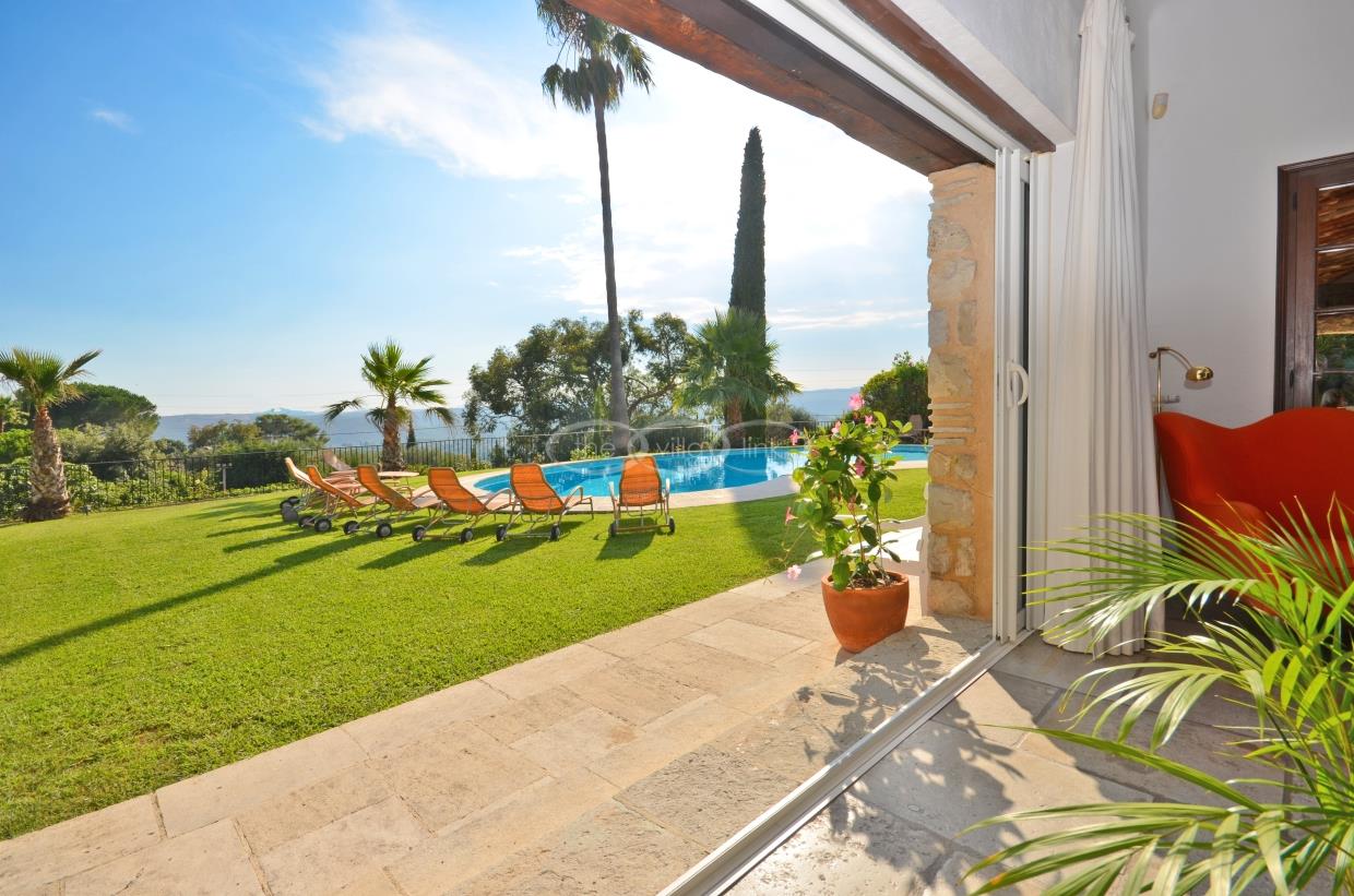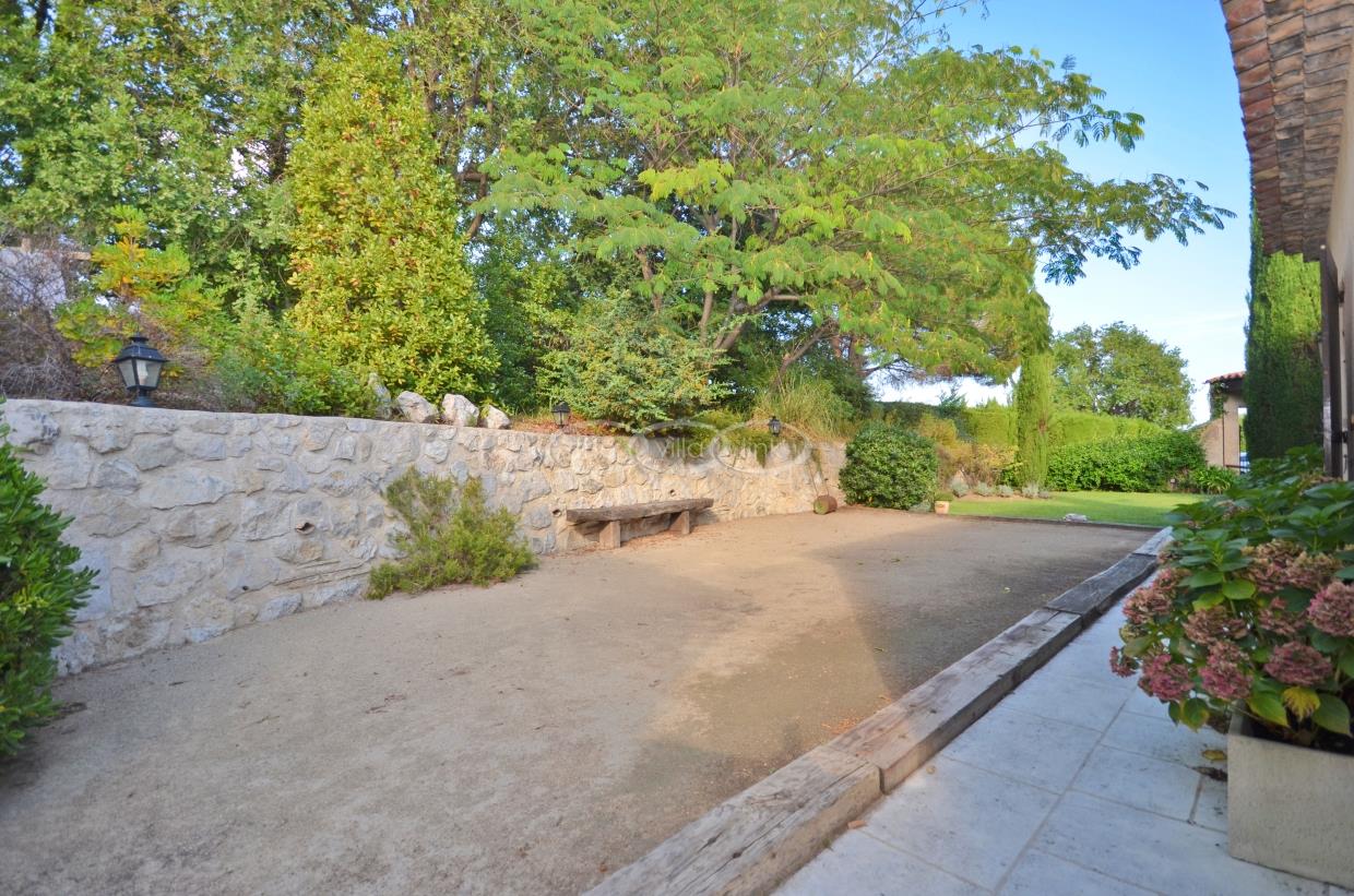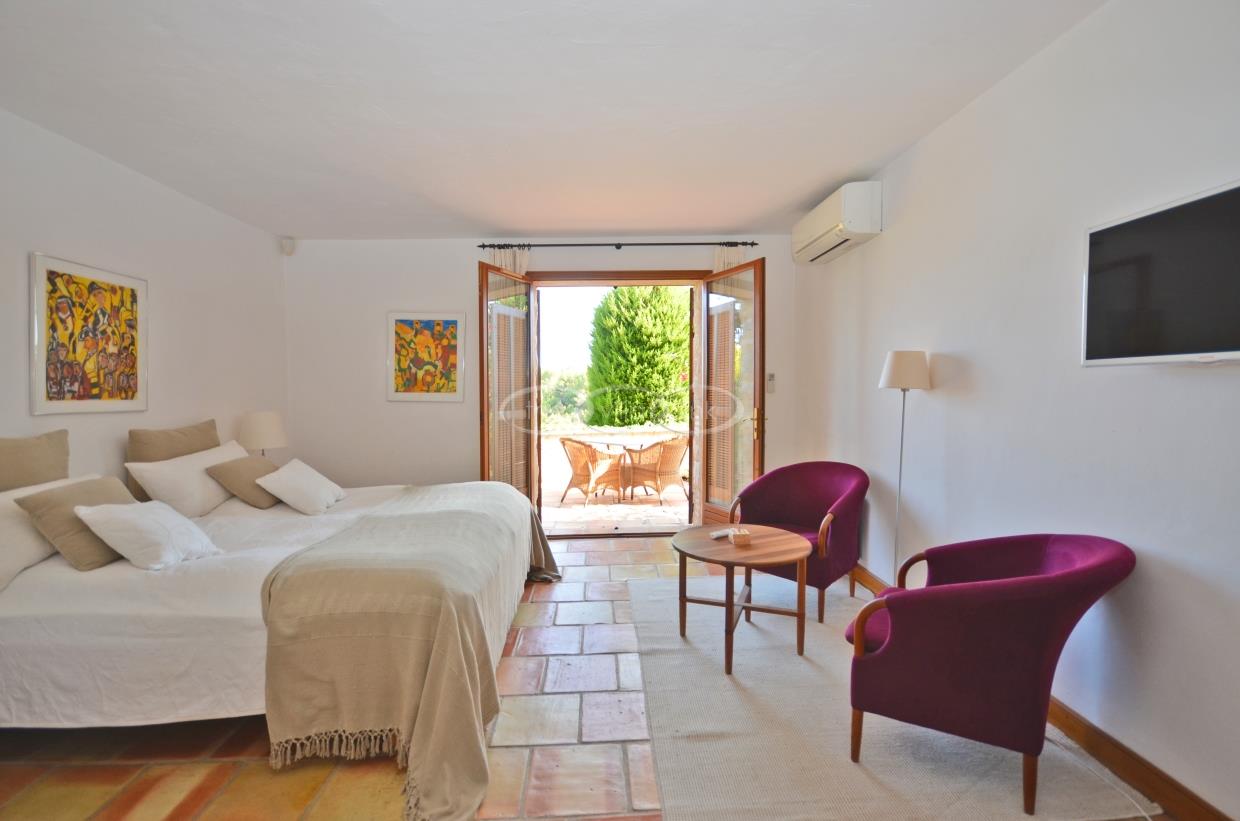 This large estate offers a relaxing haven to all guests. The min villa consists of four seperate apartments or suites (all fully equipped with kitchen and bathrooms) and four double rooms that. The annexe has another twobedrooms, living space , kitchen and bathrooms. It is the perfect get-away for several families or for your corporate events. The large salt water pool offers views down to the Mediterranean as well as the mountain range behind St Paul de Vence. You also hava afull sized and private tennis court (where a helicopter can land).
