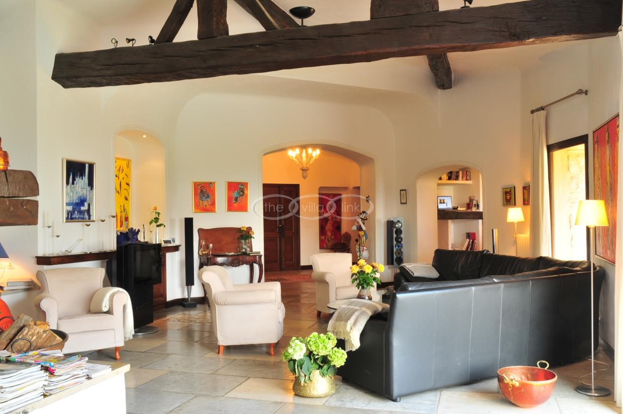 Spacious living area in the main villa with easy access to the outdoor terraces, garden and kitchen areas