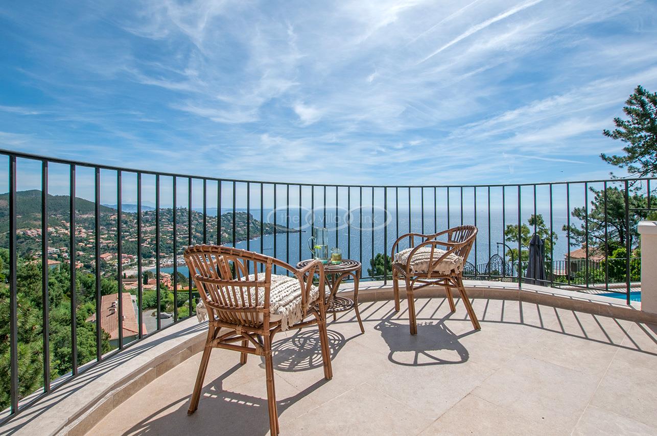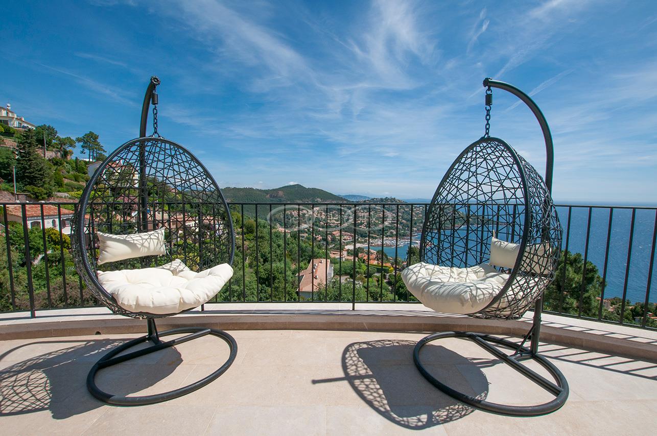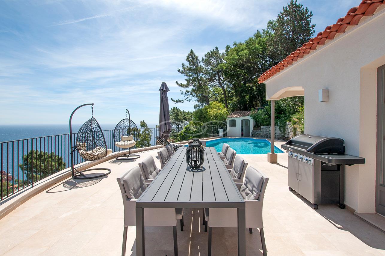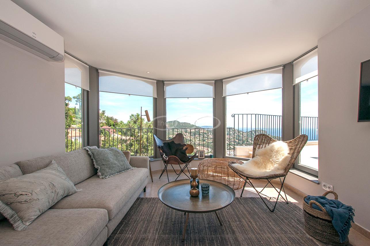 This modern and newly refurbished villa offers amazing and unobtructed views over the Mediterranean. Located in a closed community, it offers a relaxing and serene holiday. There is no garden space but the three large terraces (on three levels)enables you to enjoy the fabulous sun no matter what.