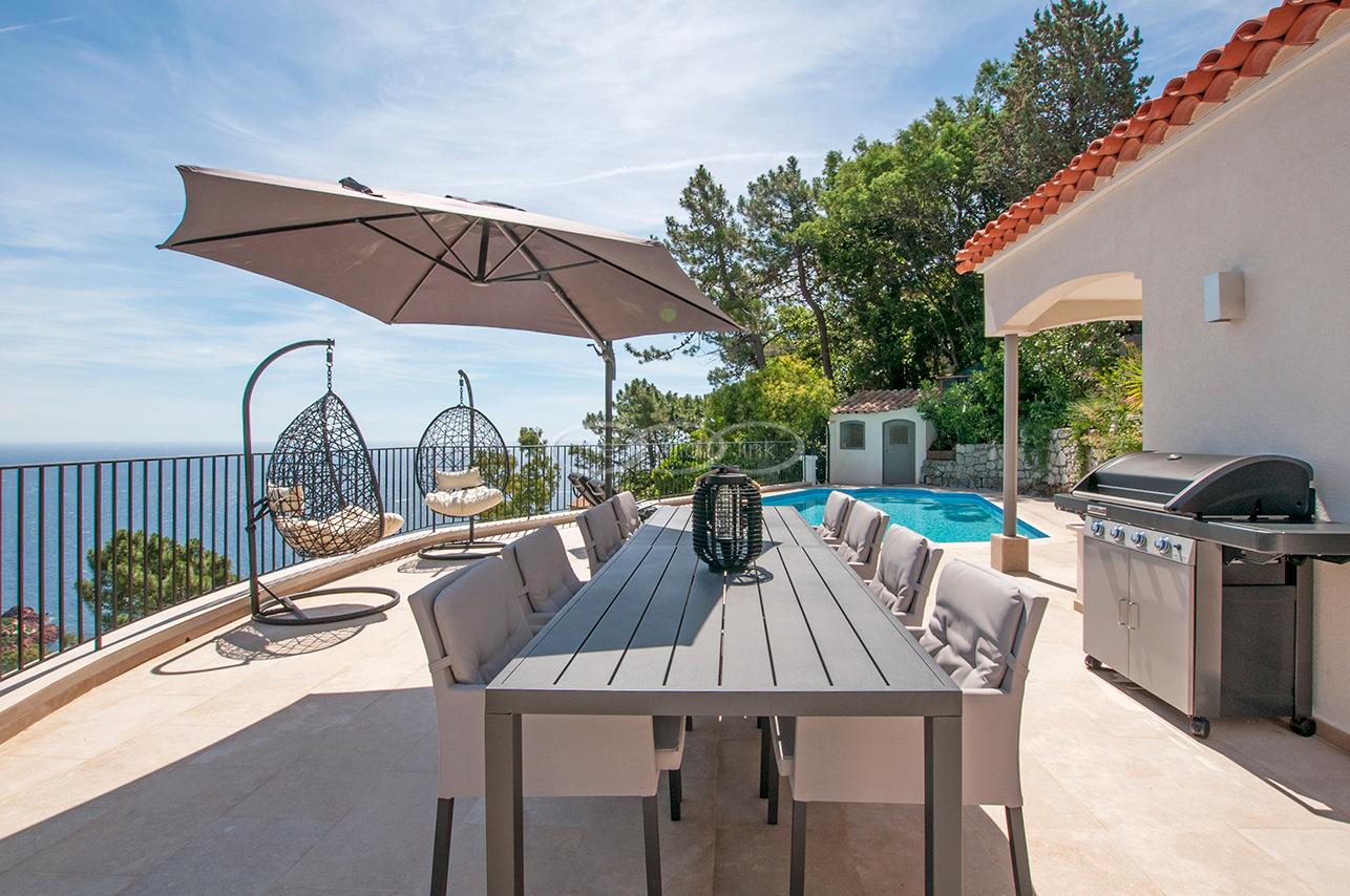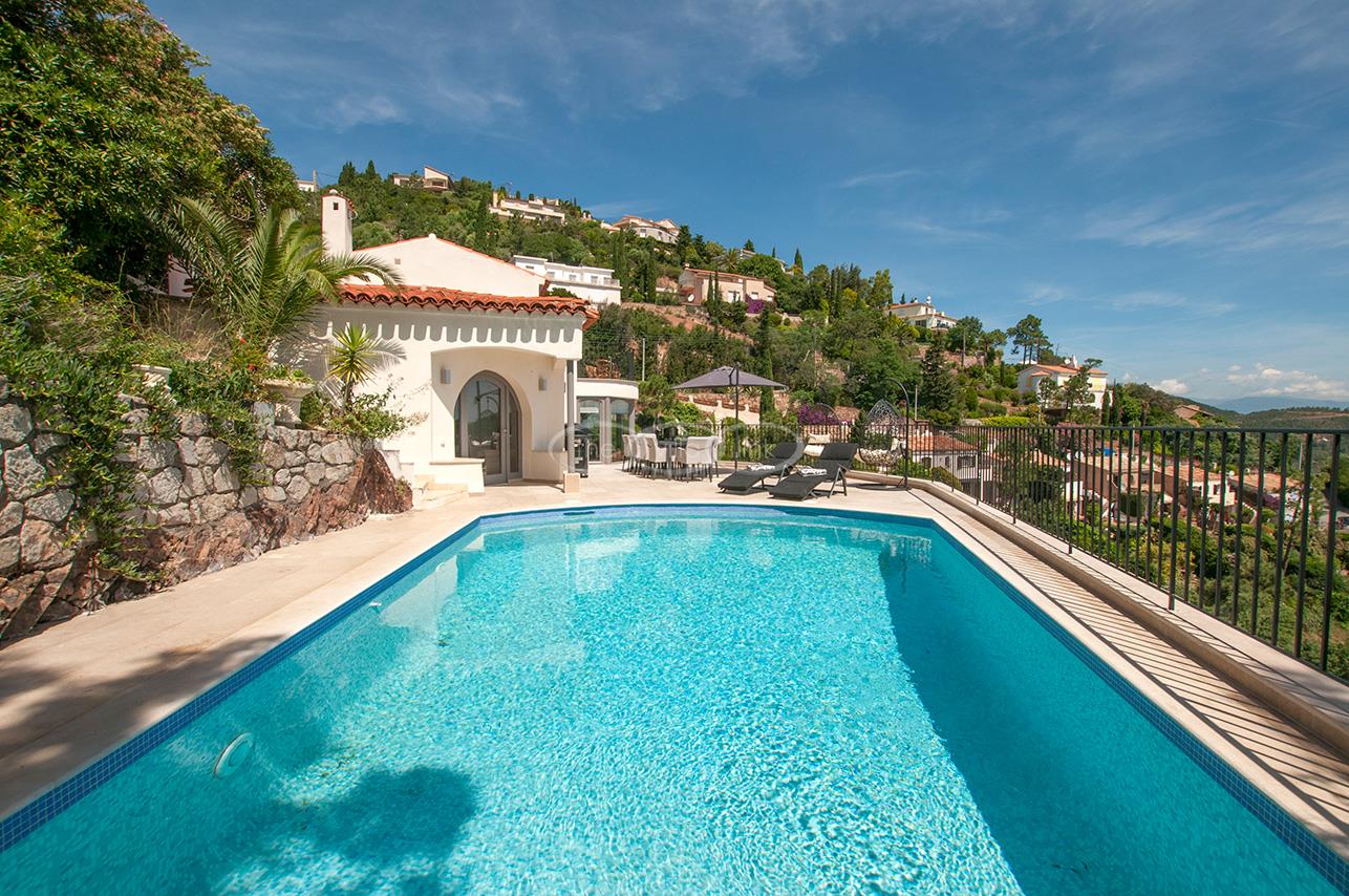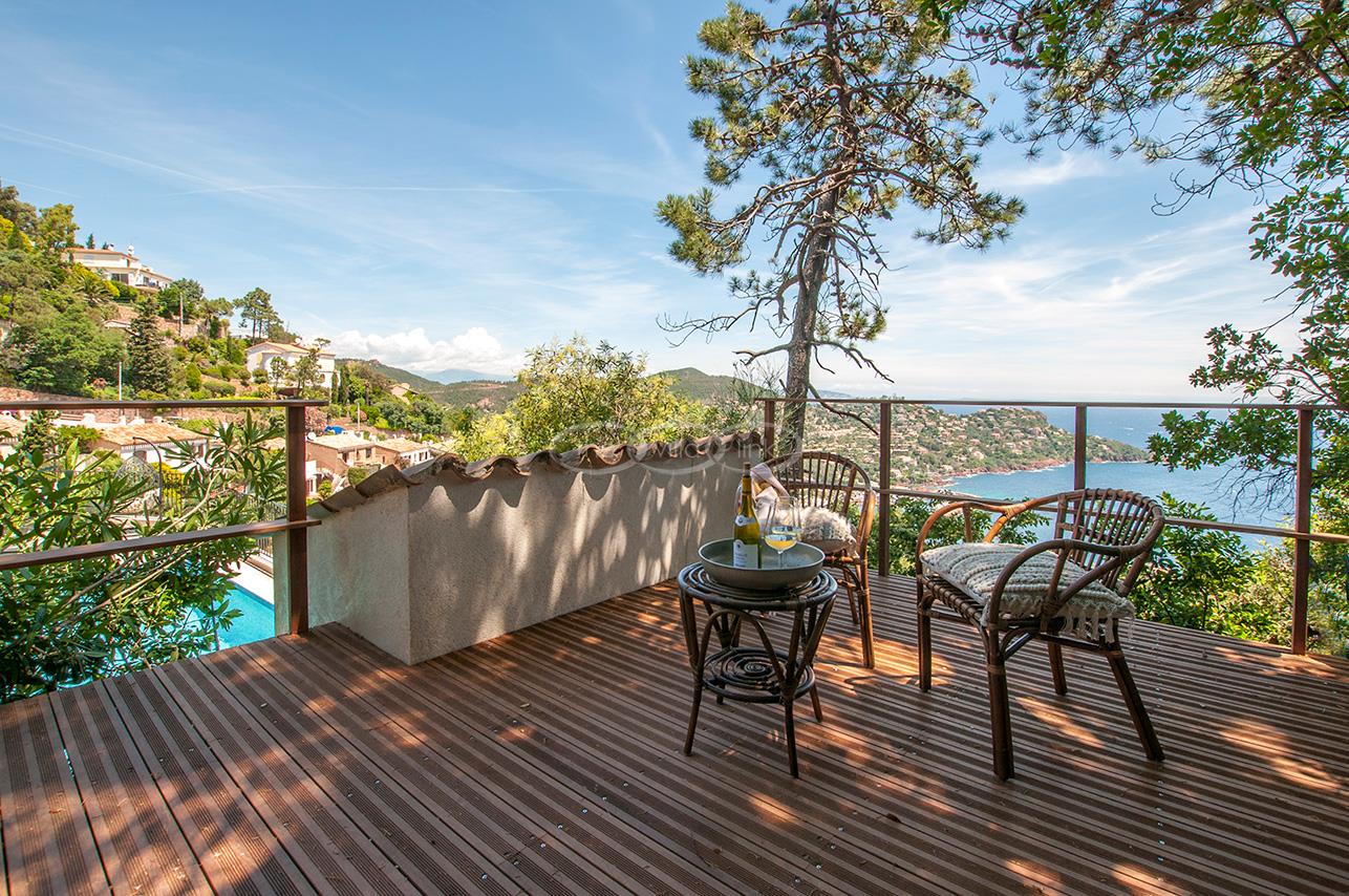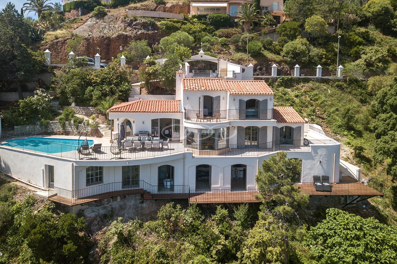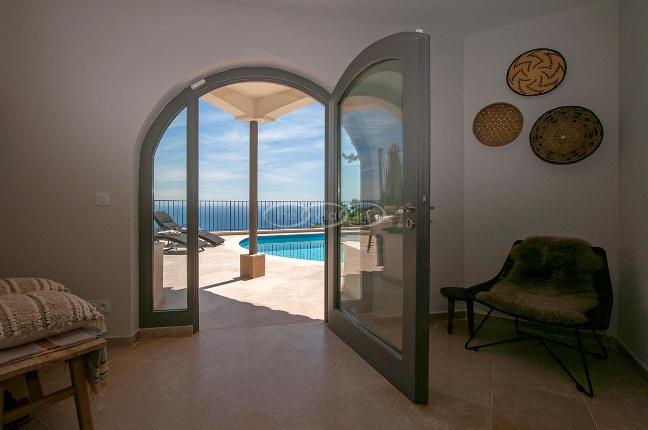 This modern and newly refurbished villa offers amazing and unobtructed views over the Mediterranean. Located in a closed community, it offers a relaxing and serene holiday. There is no garden space but the three large terraces (on three levels)enables you to enjoy the fabulous sun no matter what.