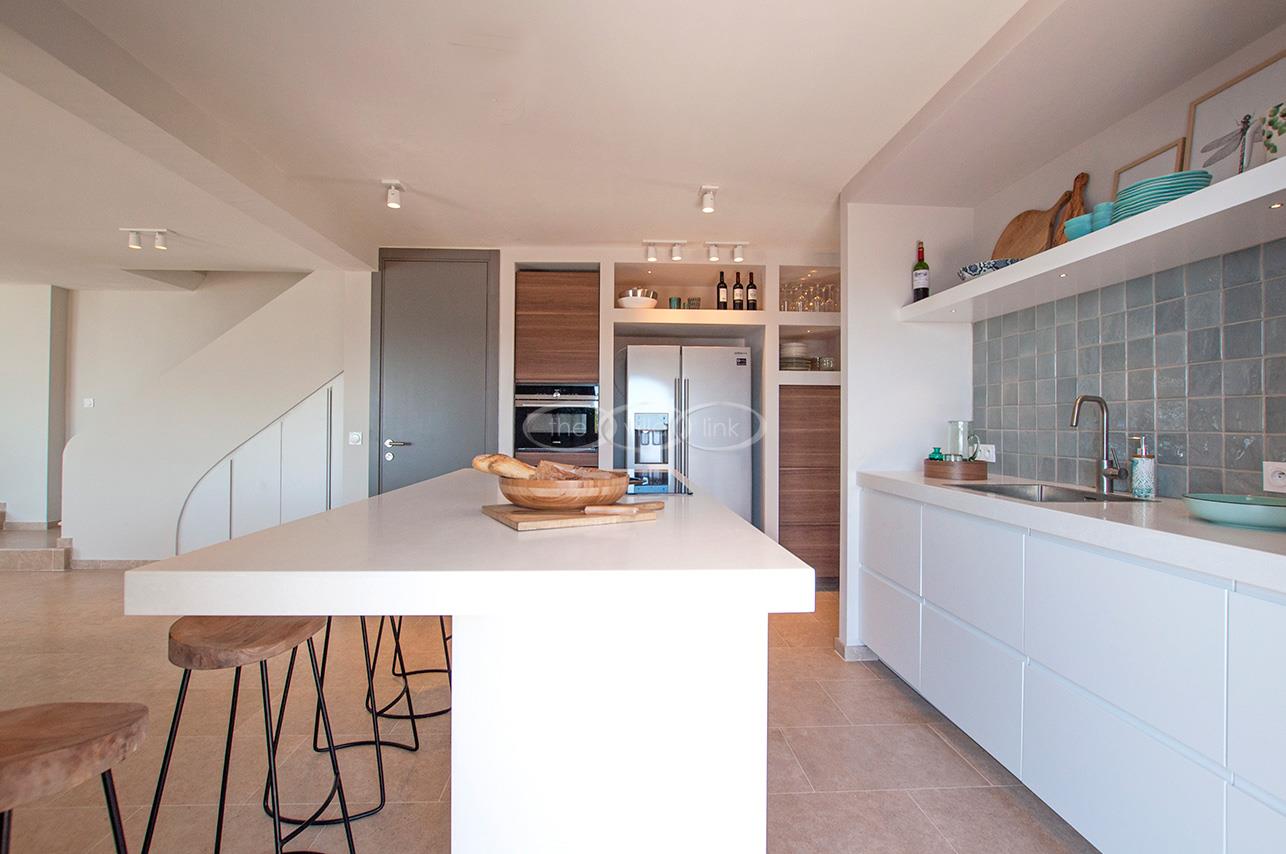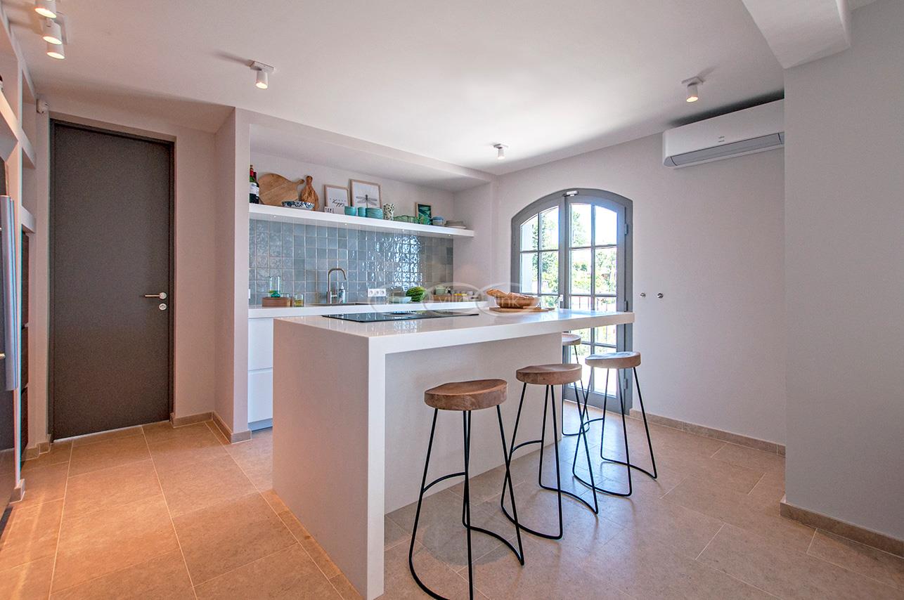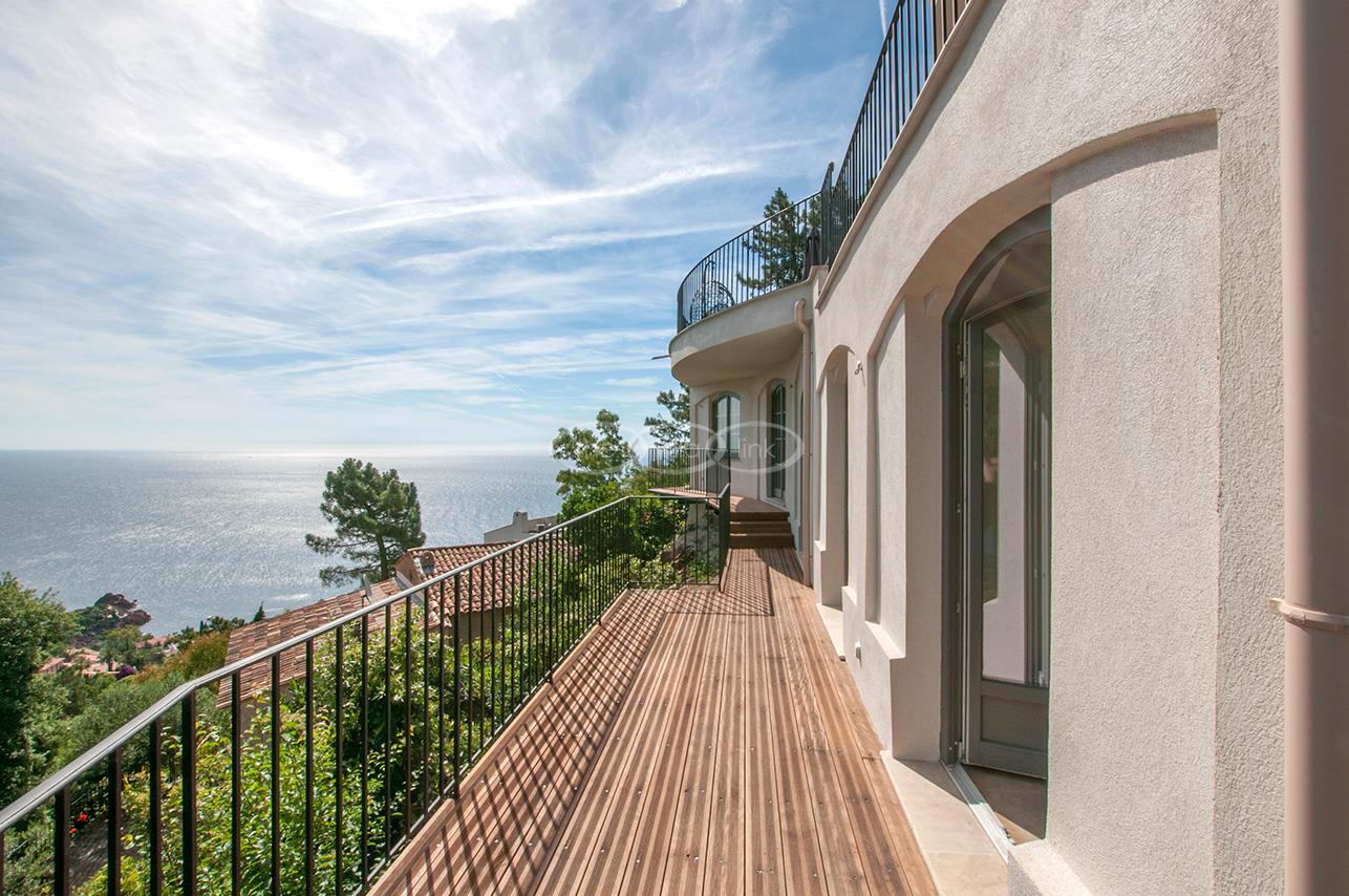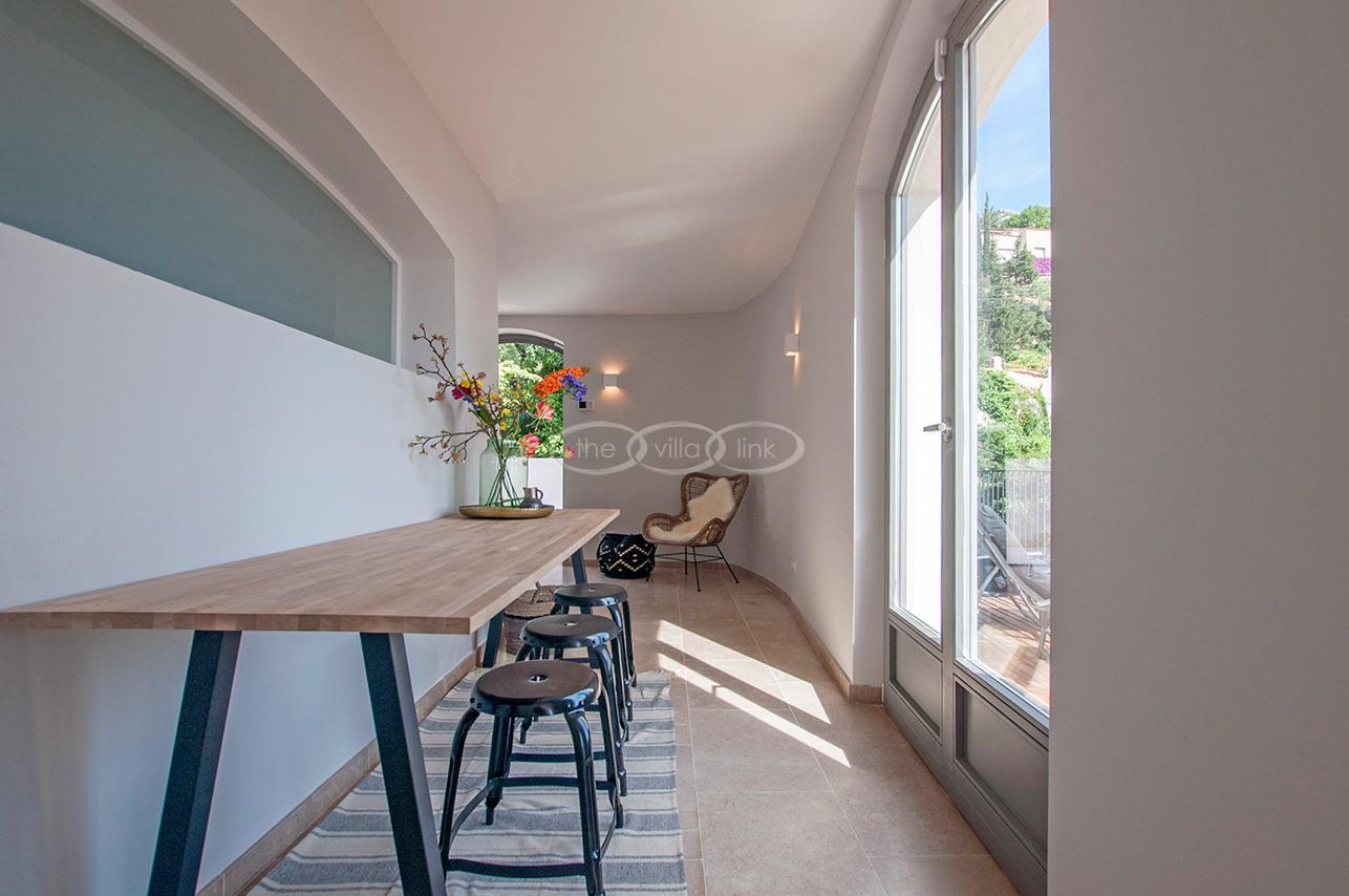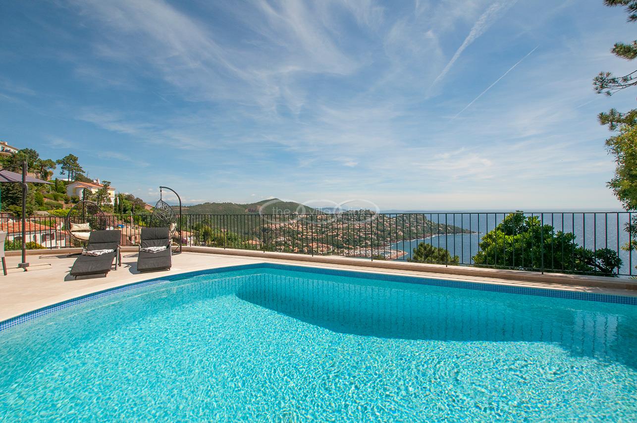 This modern and newly refurbished villa offers amazing and unobtructed views over the Mediterranean. Located in a closed community, it offers a relaxing and serene holiday. There is no garden space but the three large terraces (on three levels)enables you to enjoy the fabulous sun no matter what.