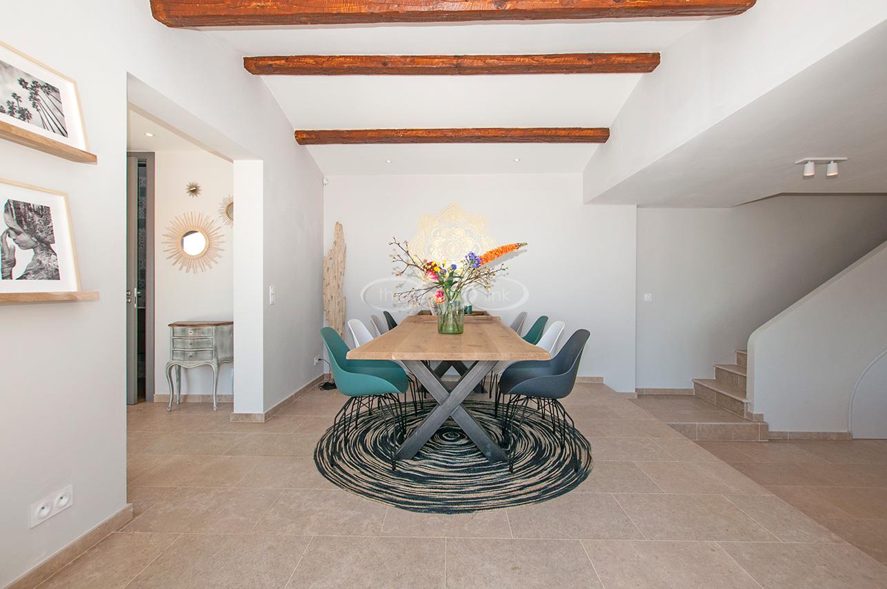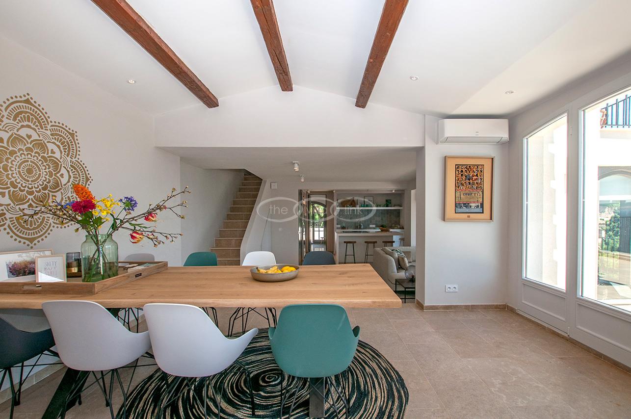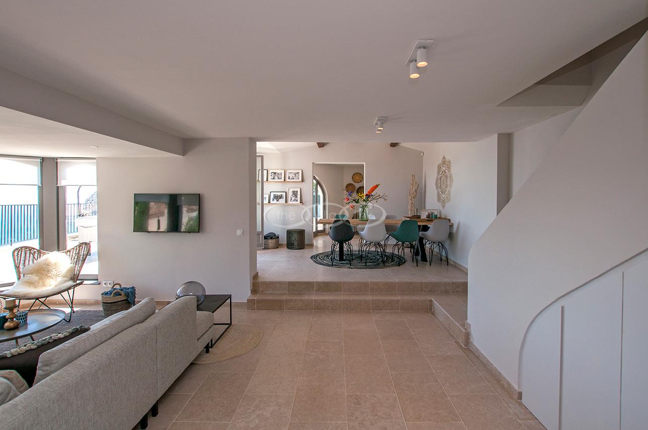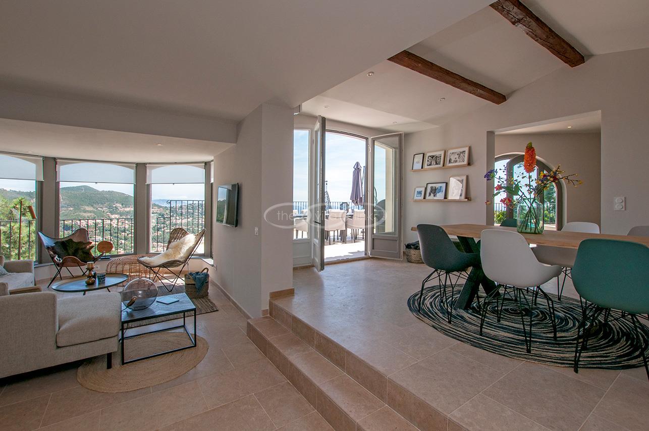 In open plan with the dining area and kitchen. You have direct access to the terrace and pool from here.