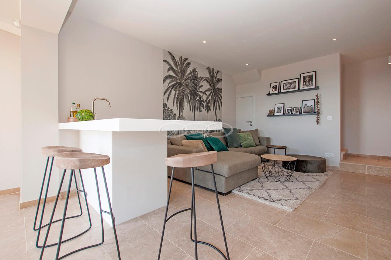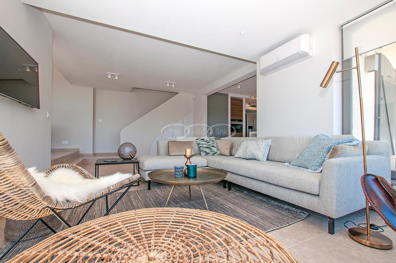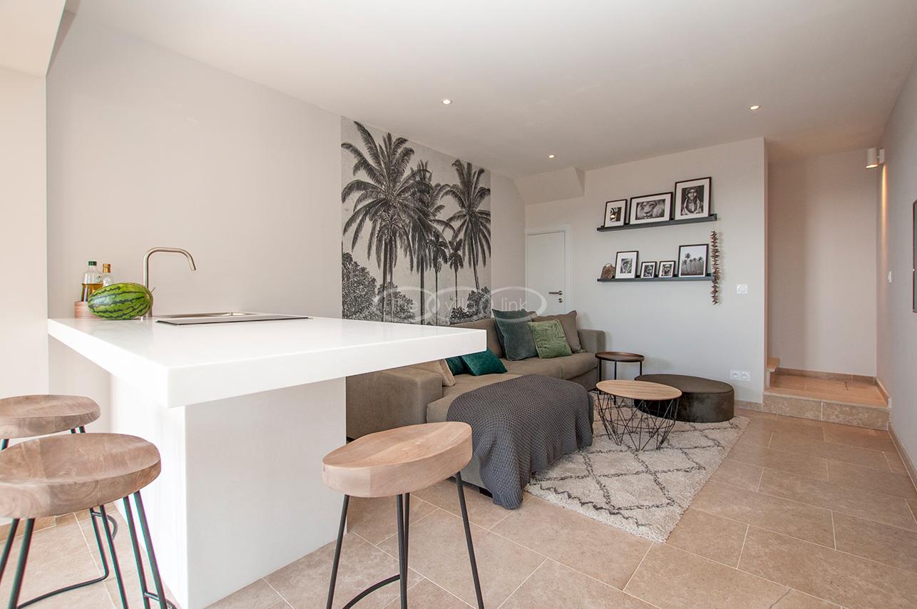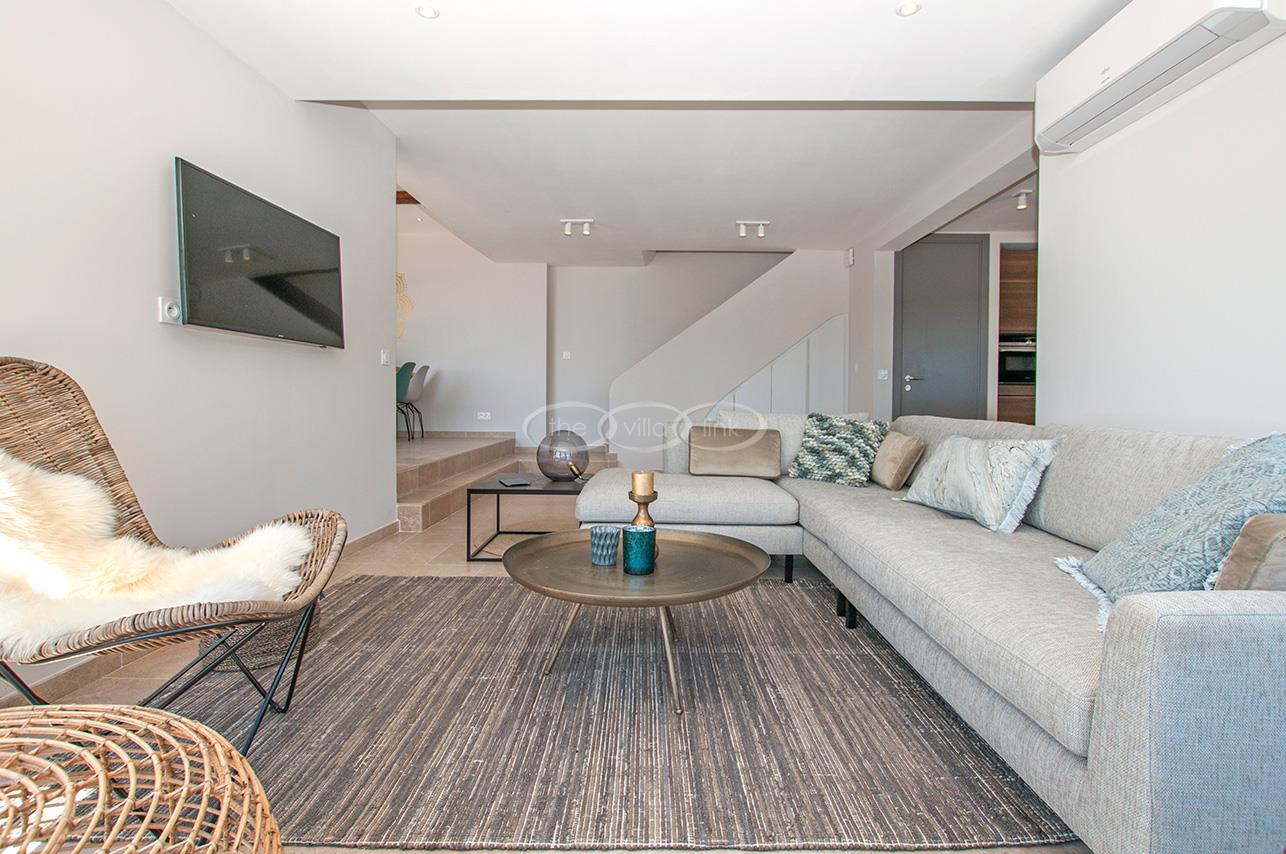 In open plan with the dining area and kitchen. You have direct access to the terrace and pool from here.