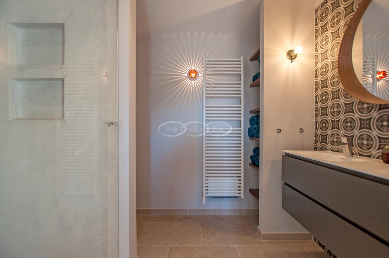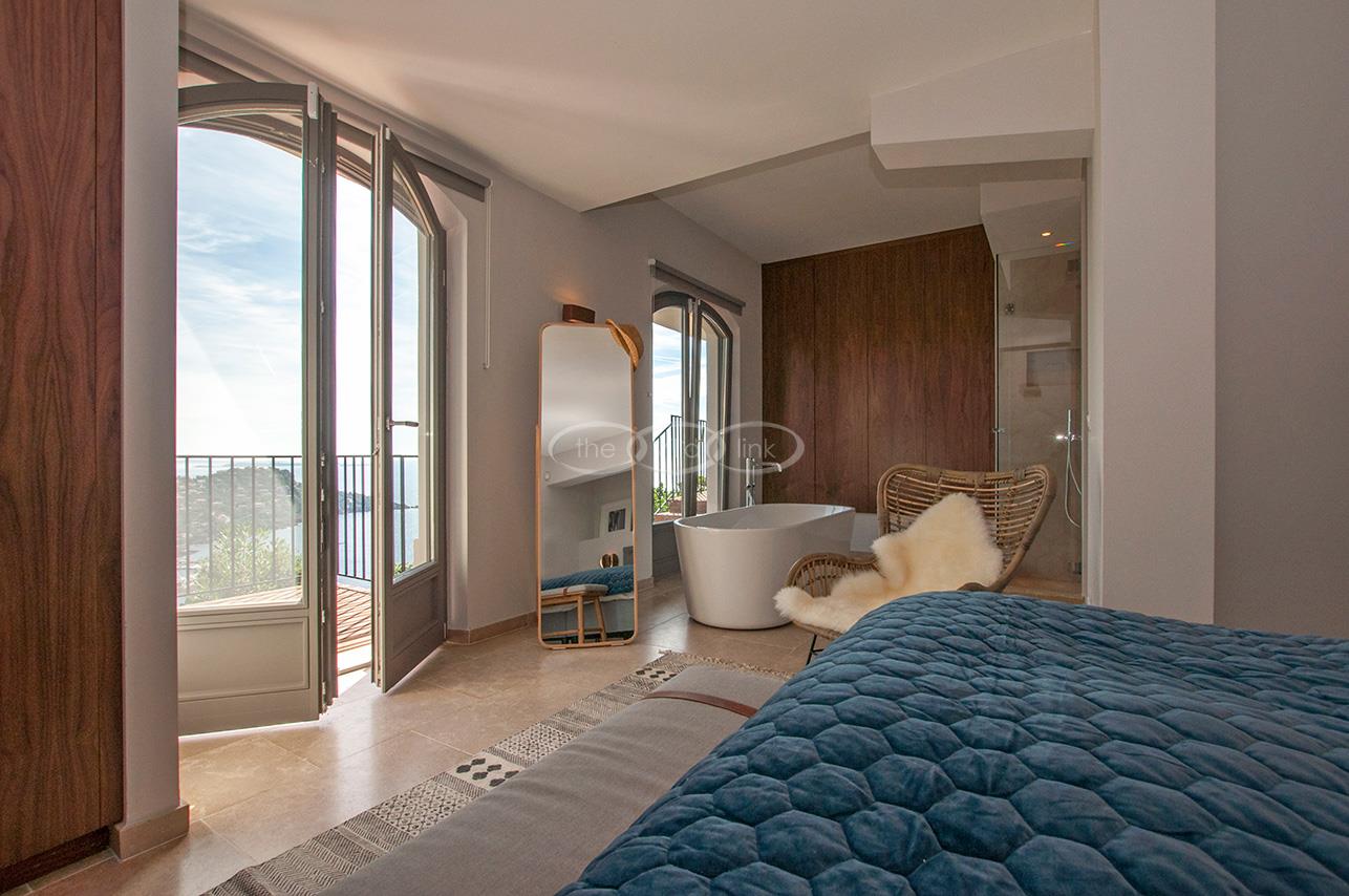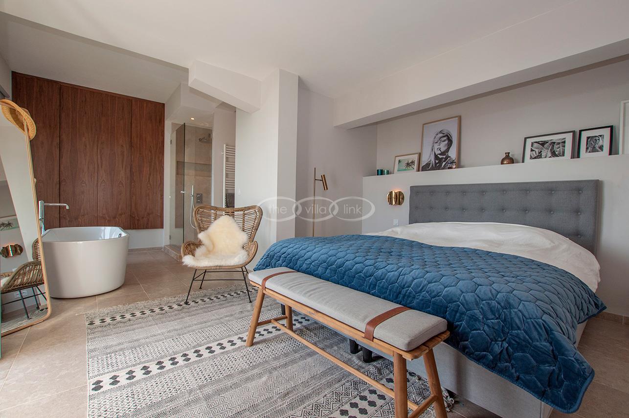 4 double bedrooms and one twin bedroom. All with their individual style and some of them are connected via the outdoor terraces.