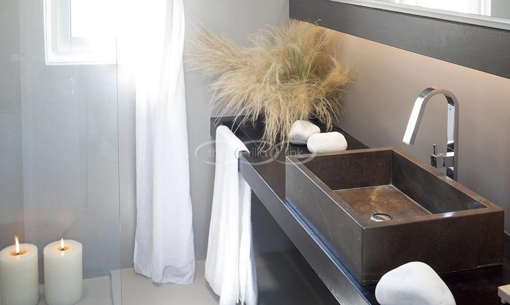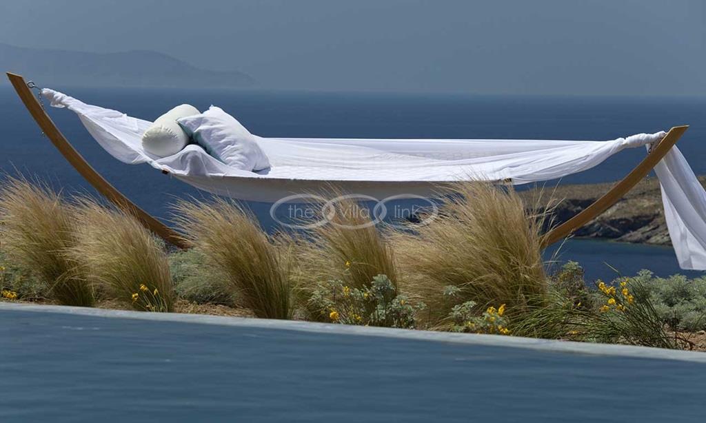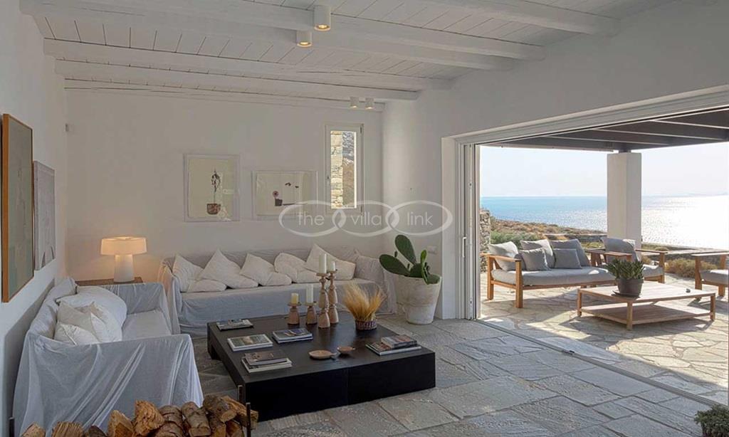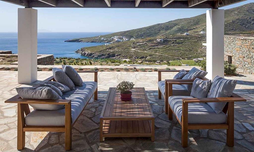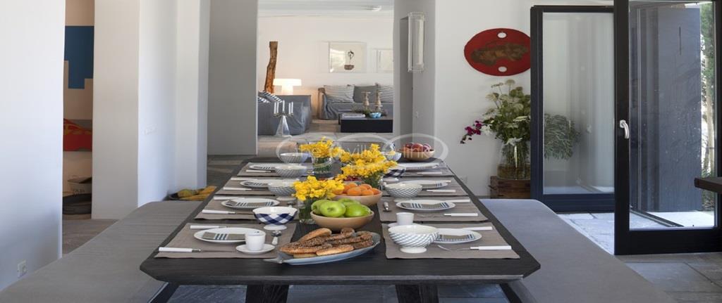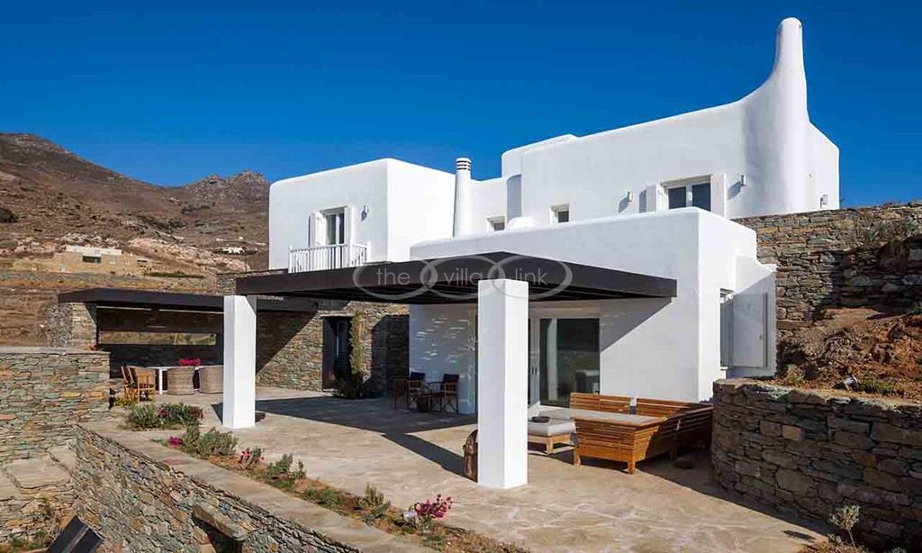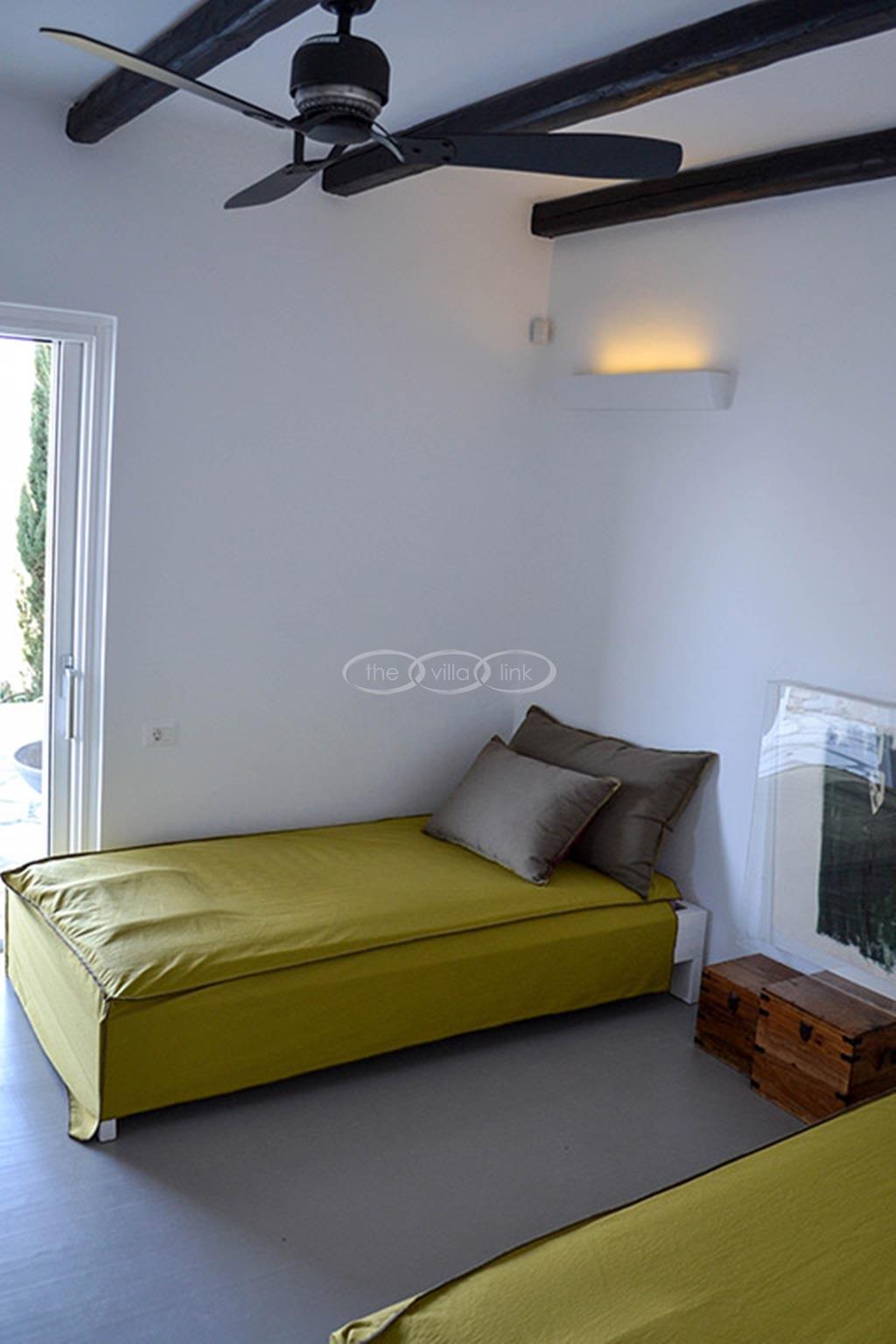 On the Southern cost of the island of Tinos, in a private domain with beach within walking distance, this seafront with swimming pool welcomes comfortably up to 11 guests. With a contemporary interior style, it is composed of a main villa with, on the main level, a living room with saloon and dining area and a fully equipped modern kitchen, and, on the upper level, the master suite with private terrace and bathroom and one twin bedroom and one bedroom with 2 bunk beds and a single bed sharing one bathroom. The guests house comprise one double and one twin bedroom sharing a bathroom ; Ceiling fans in the bedrooms; Luxury service level and personnel on demand; Rental all year long;
