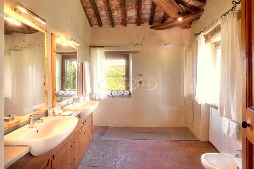 With a commanding panoramic view over the tranquil rolling countryside, this villa has a truly special quality about it. Only a stone's throw from the Tuscan border, it peers down over the famous Tuscan landscape from its perch on the top of a hill, offering luxury in an exceptional setting. It comprises a large stone farmhouse (main villa) and its annex (guest house) just 40 metres away. Each house has its own driveway and parking area.