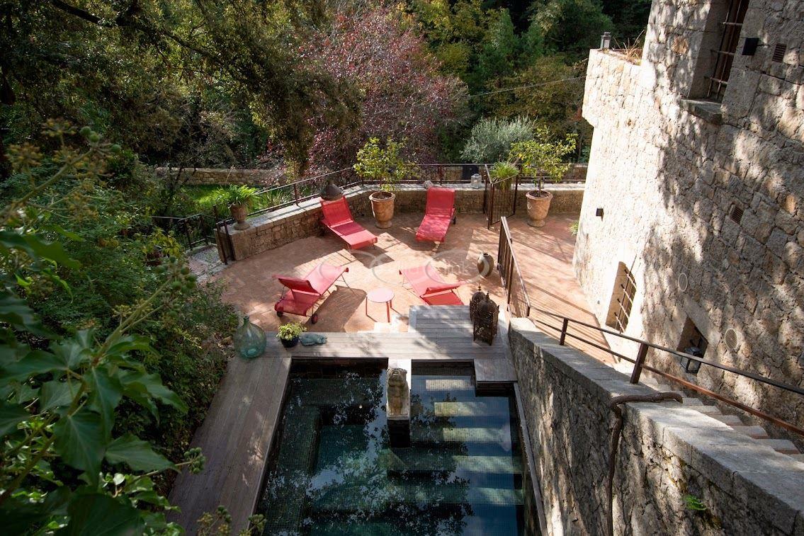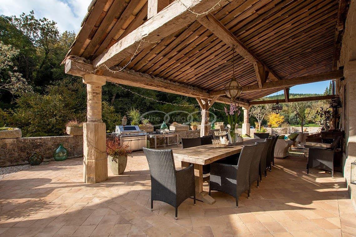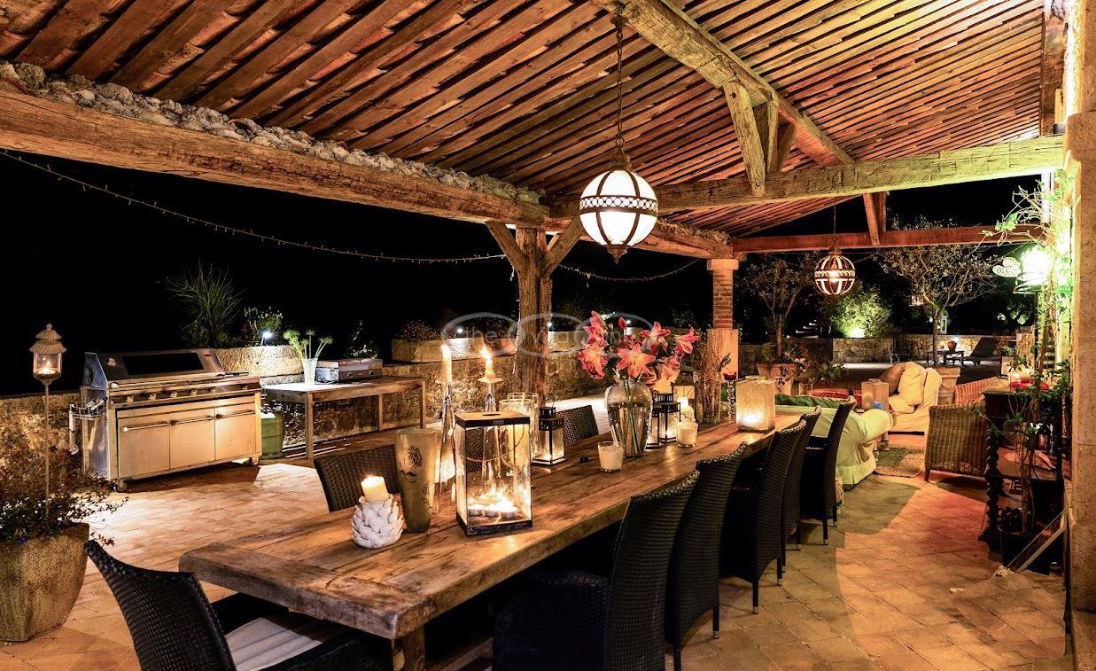 A plunge pool with jet streams, a petanque court, BBQ, kayak and a herb garden. Outdoor kitchen