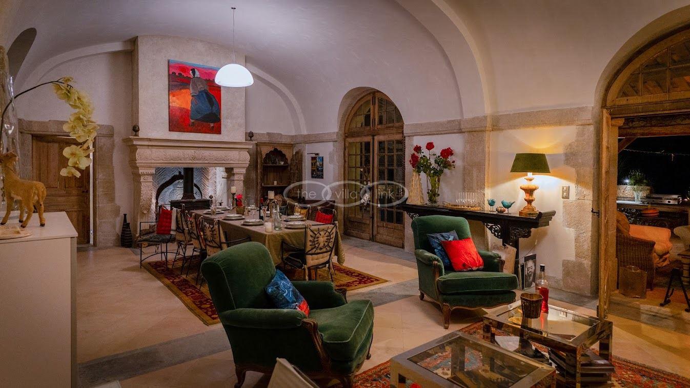 5 bedrooms in the main villa plus one "Narnia" room with two beds for children. Another 3 bedrooms in the independant apartment.