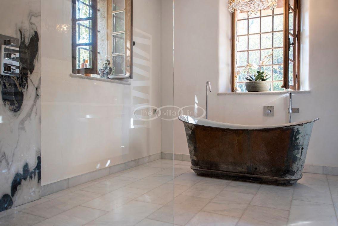 All bathrooms in the main villa are en-suit. There are two bathrooms in the independant apartment.