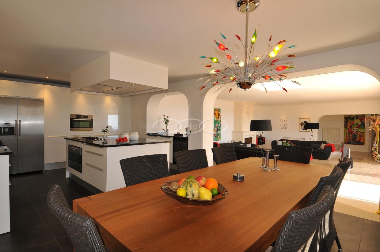 The living, dining and kitchen area are in open plan and offers direct access to the terrace and pool area (the pool is only a few steps down from the main terrace).