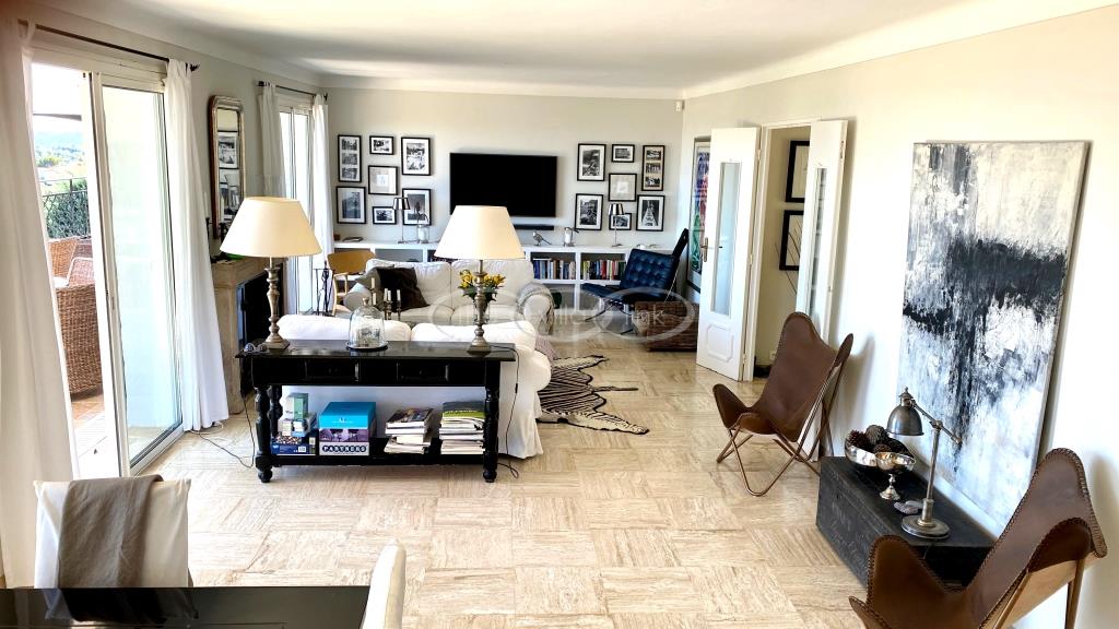 Open plan with the dining area. It is very bright and offers beautiful views over the old town of Vence as well as the Mediterranean