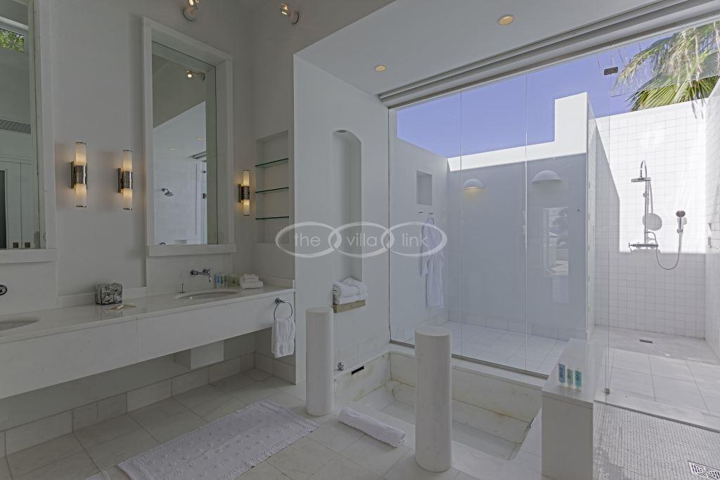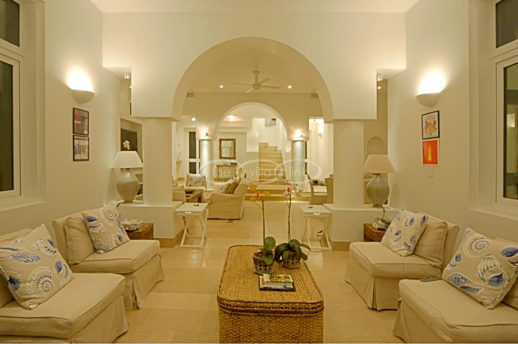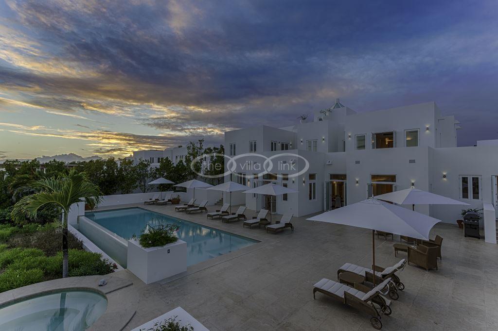 Situated on the western end of the sparkling white sands and aquamarine waters of Rendezvous Bay, Anguilla, this Villa brings private luxury to this stunning natural paradise. You’ll enjoy pampering and seclusion with the five-star amenities of Cusinart Resort at your service. And for golf lovers, Anguilla’s 18-hole Gregg Norman golf course is just steps away in this gated villa community. The Villa, pristine white against Anguilla’s cerulean blue skies, offers five elegantly appointed master suites with marble bathrooms and air conditioning throughout. Modern Caribbean luxury coupled with indoor/outdoor living areas are perfect for seclusion and relaxation. All butler and concierge services are included in one simple rate.
