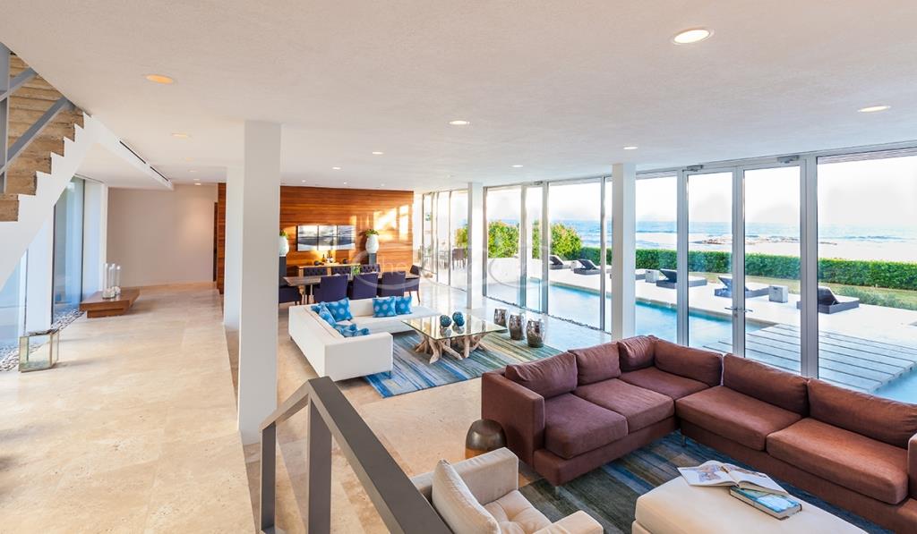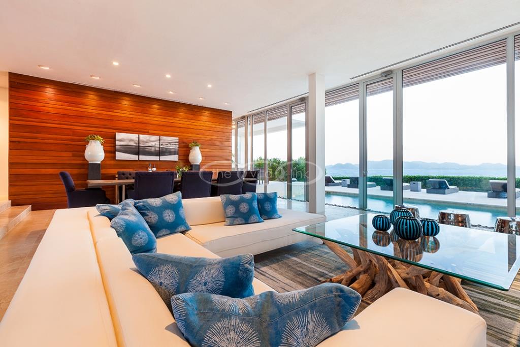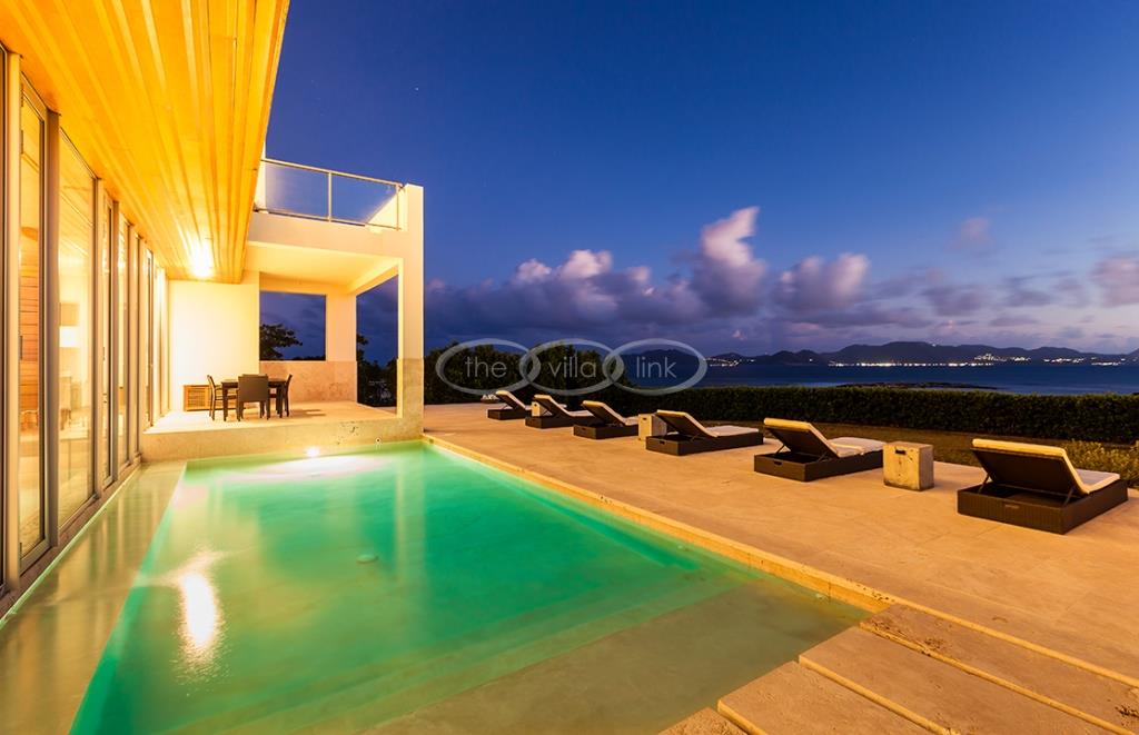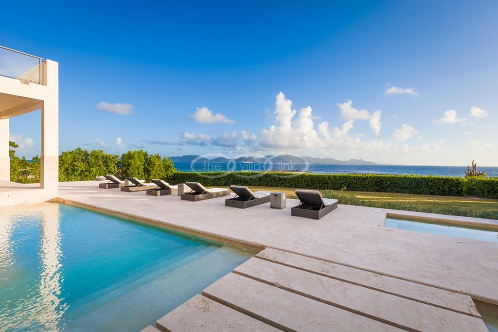 This is a private oceanfront estate exquisitely designed to embrace the captivating island surroundings. With expansive windows and stunning views of the Caribbean and mountains of St. Martin, guests experience exhilarating indoor/outdoor living. The two-story villa offers 5 bedrooms, a private pool, and a deck overlooking the shimmering Caribbean sea.