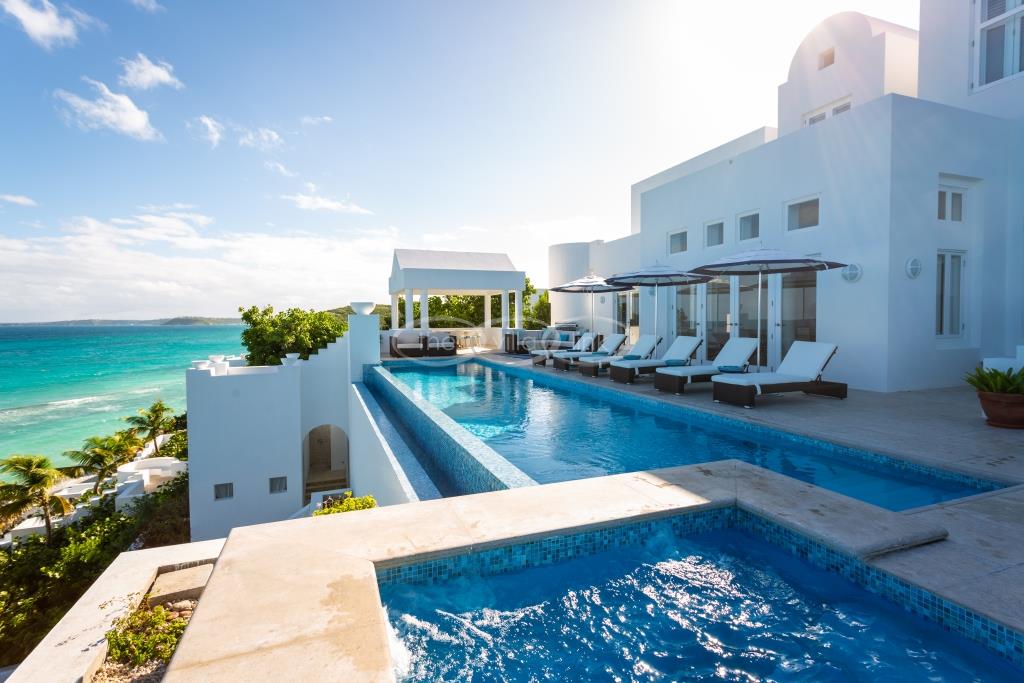 Just steps from the sparkling white sands of Long Bay, Anguilla, villas VLAEH08, VLAEH09 and VLAEH10 offer spectacular Caribbean vistas and gentle island breezes. Ensconced in cool elegance, guests will savor indoor/outdoor living with exceptional private service and upscale amenities. Each beachfront villa offers its own private infinity pool, jacuzzi and outdoor dining area overlooking the sea. All three villas have 5 bedrooms making a total of 15 if you rent the entire complex.