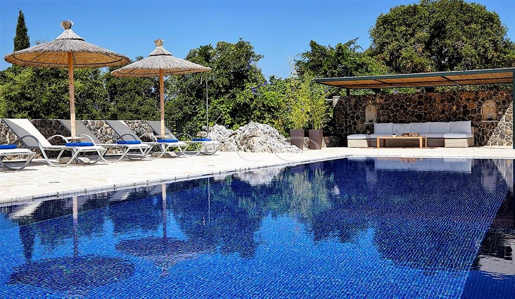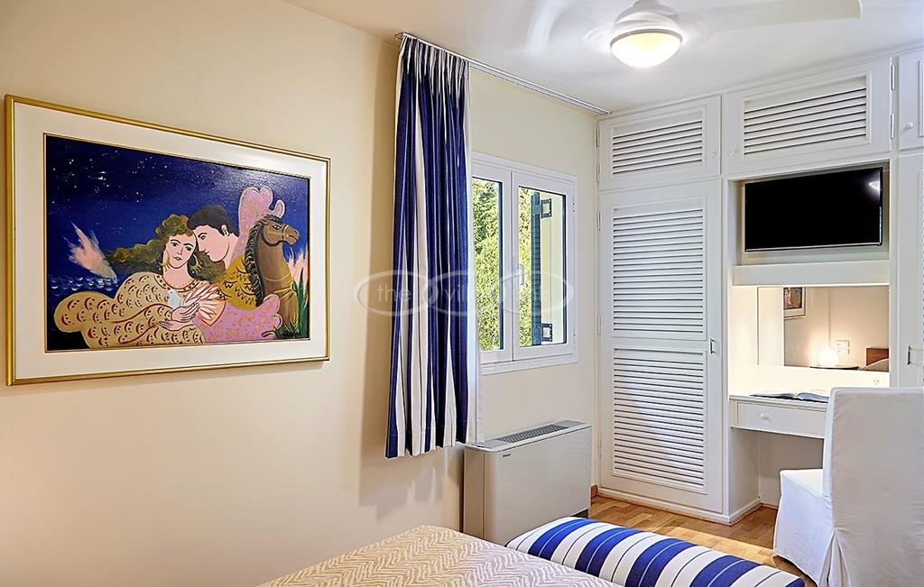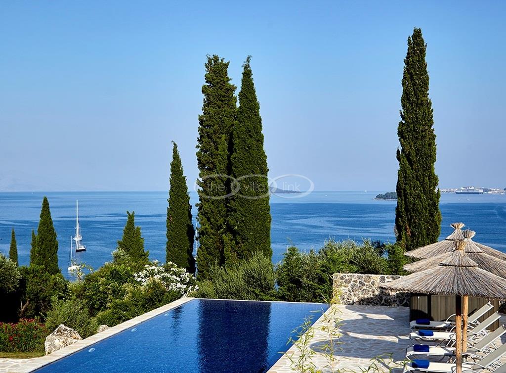 In the area of Kommeno, within walking distance to the beach and few minutes’ drive to the village and marina of Gouvio, this contemporary villa with panoramic sea views and infinity swimming pool welcomes comfortably up to 12 guests. On 3 levels, it is composed, on the main level, of a saloon opening onto the pool, a large independent fully equipped kitchen, the master bedroom with en-suite bathroom, and two double or twin bedrooms each with en-suite bathroom. A double or twin bedroom with bathroom is set on the upper level while 2 other double or twin bedrooms with en-suite bathroom are set on the garden level as well as a spa area with gym, and hammam. Air-conditioning throughout and TV in the bedrooms; Jacuzzi next to the pool.
